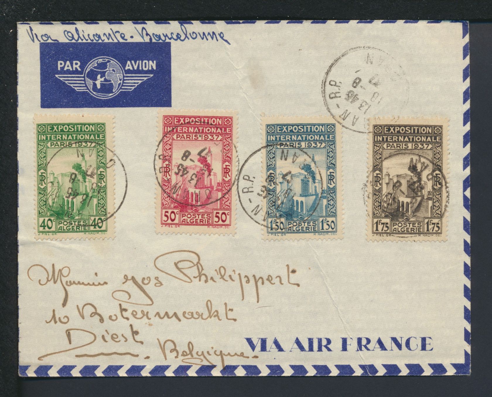 Algerien Afrika Brief 130-133 Weltausstellung Paris Frankreich Diest Belgien
