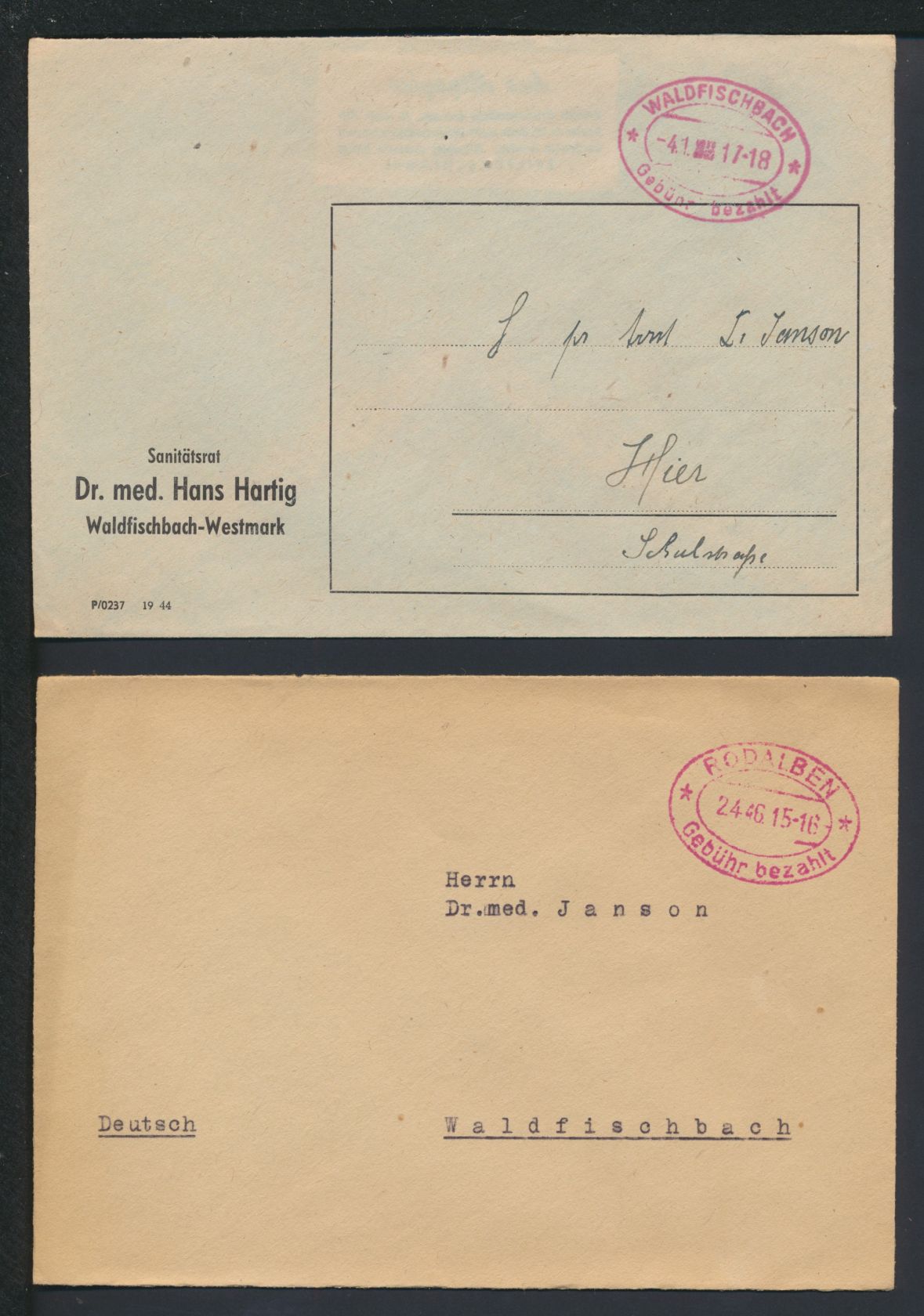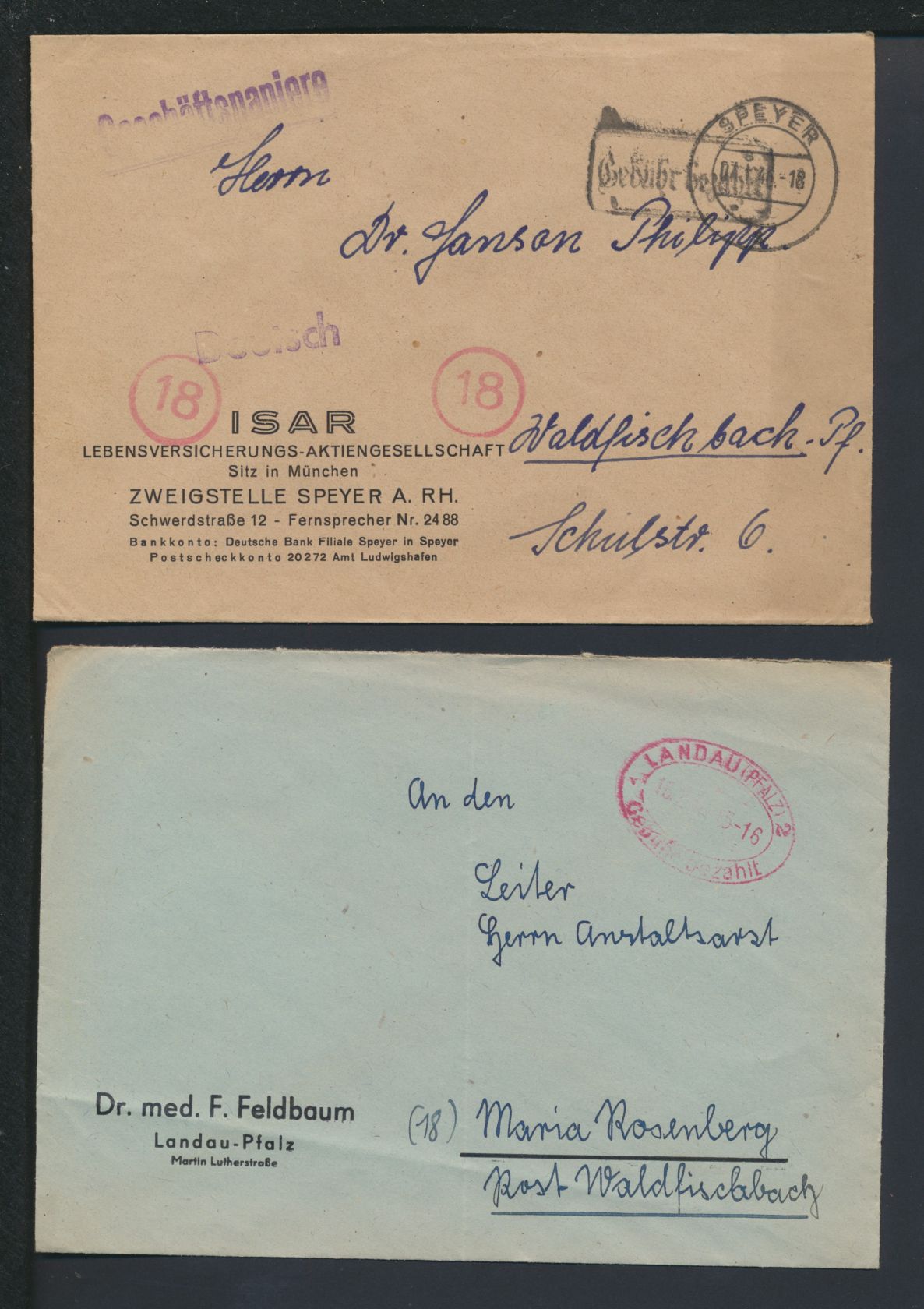 Rodalben, Waldfischbach, Landau, Neustadt Weinstr., Marktheidenfeld, also meist Bayern.1945-1948.