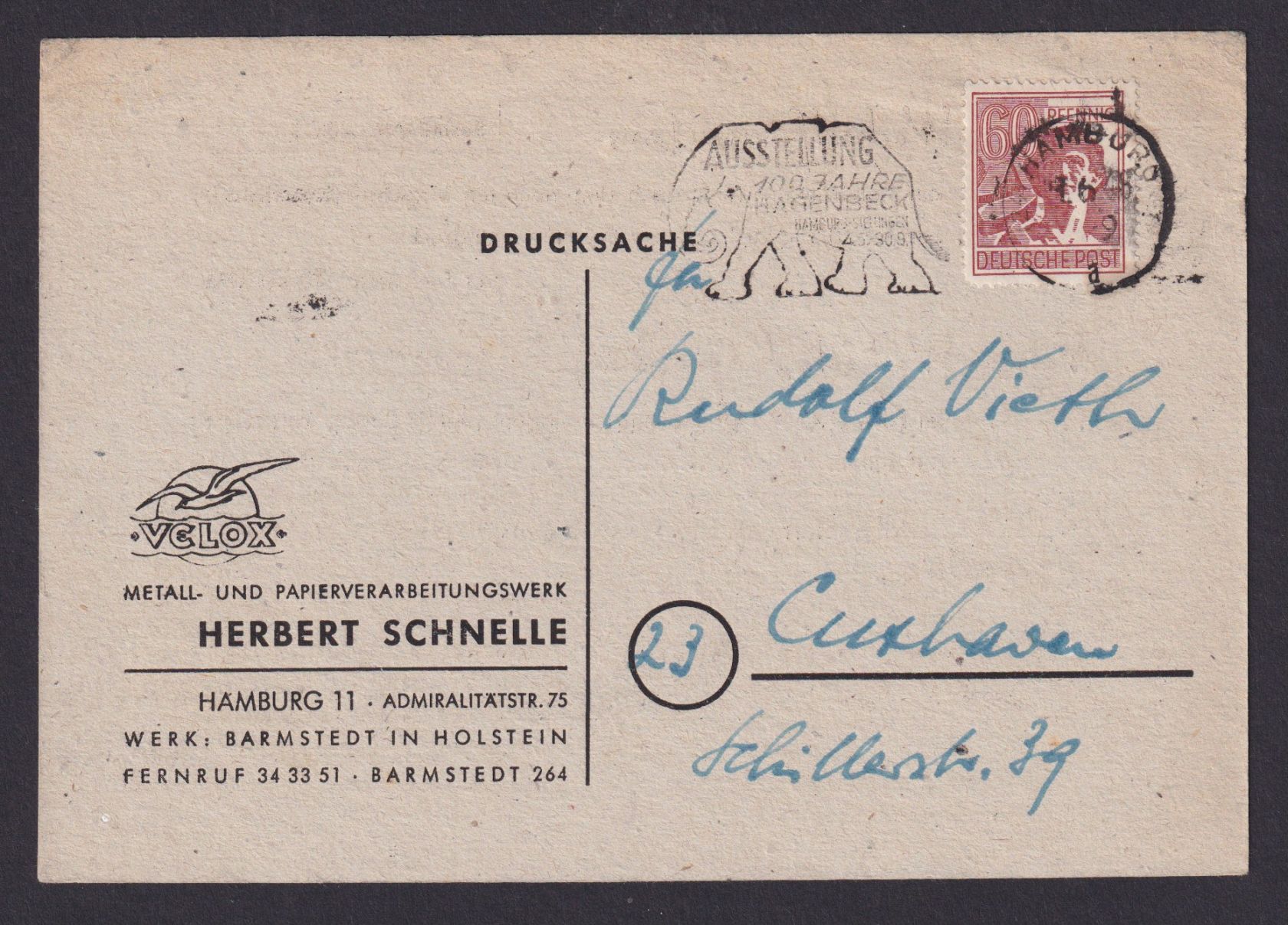 mit Reklame Maschinenstempel Ausstellung 100 Jahre Hegenbeck Zoo Tierpark Tiere Wildtiere Elefant