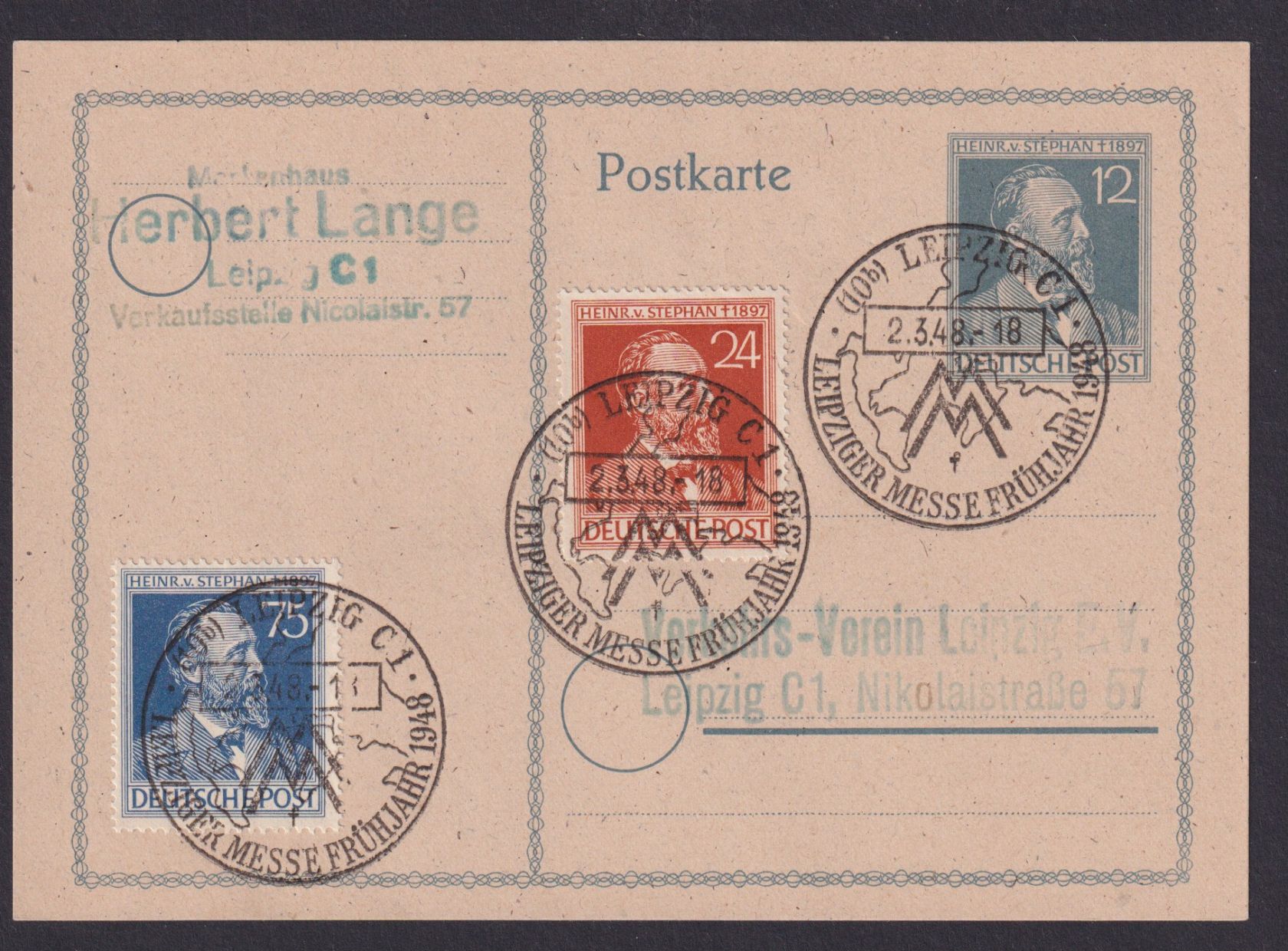 All. Besetzung Ganzsache UPU Stephan + gleiche ZuF Leipzig SST Leipziger Messe