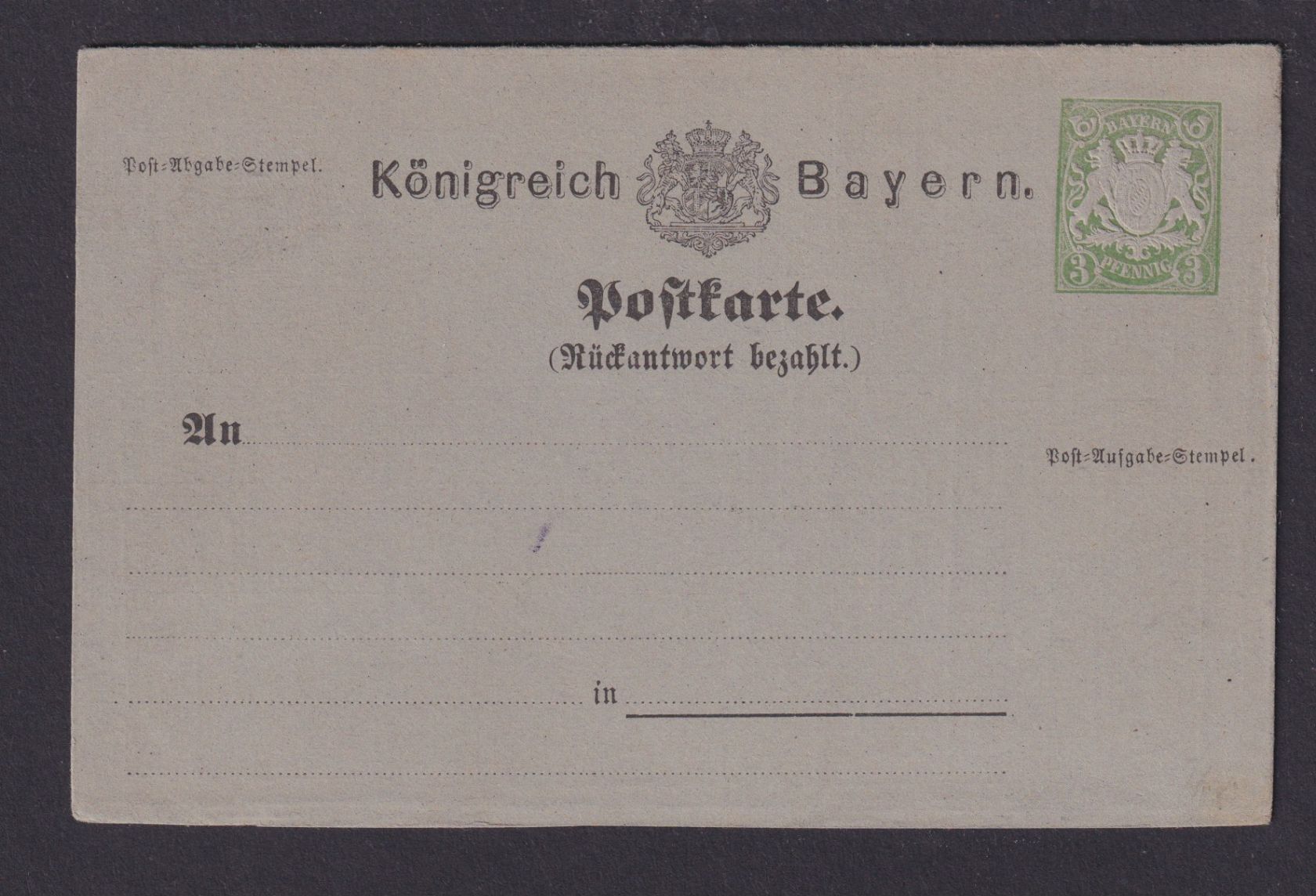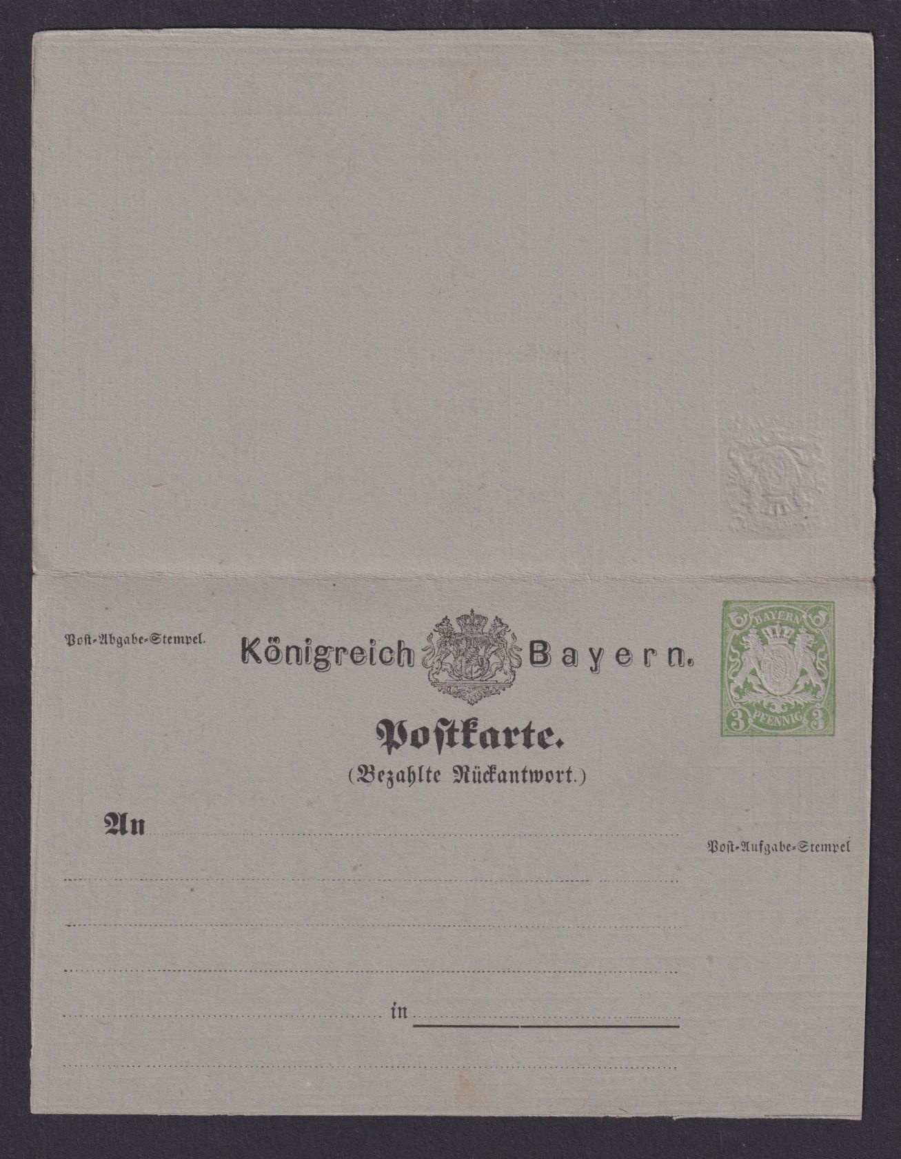 Altdeutschland Bayern Ganzsache P 19 Frage & Antwort WST 3 Pfg. Wappen