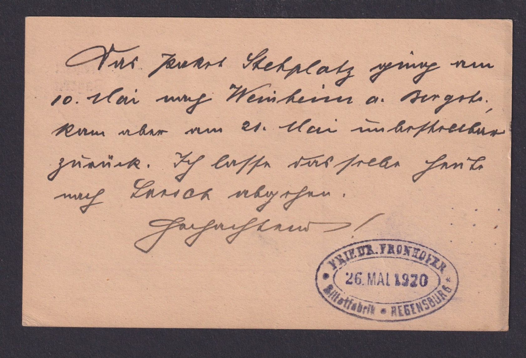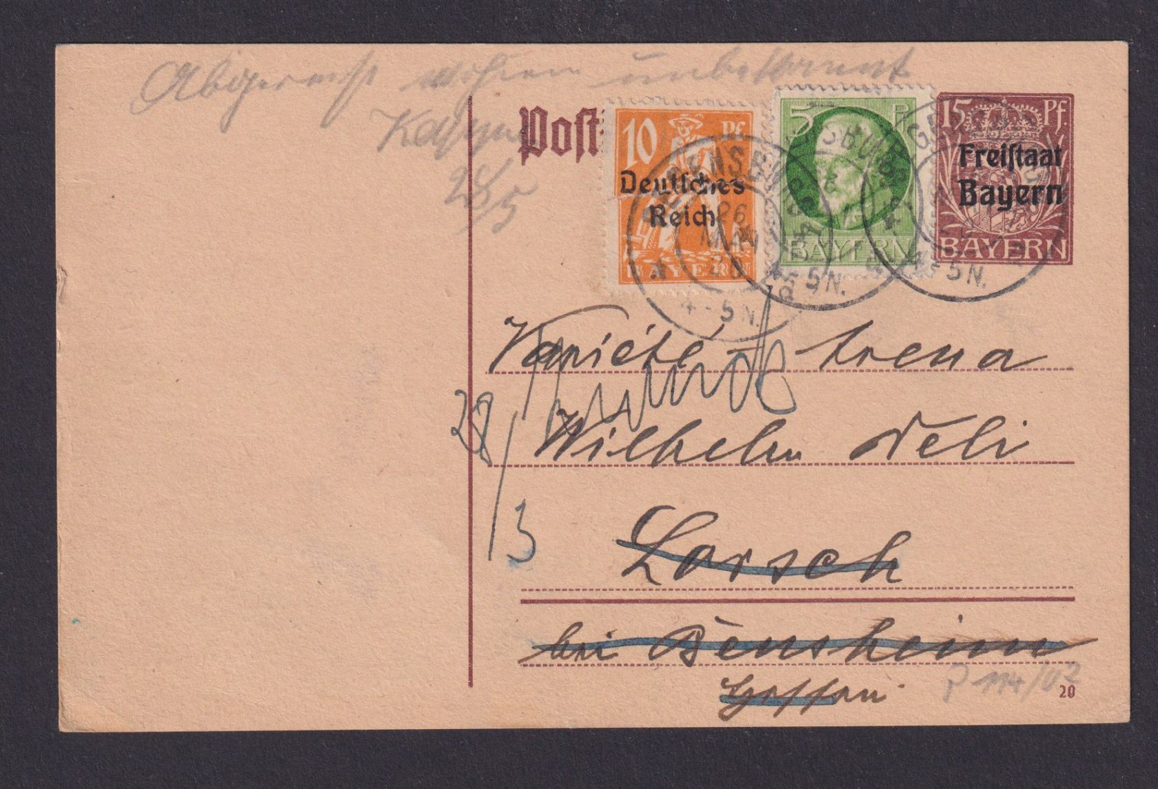 Altdeutschland Bayern Ganzsache plus ZUF Regensburg n. Lorsch und zurück
