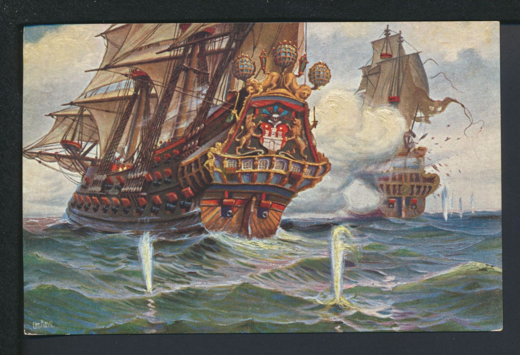 Marine Galerie "Das Wappen von Hamburg" Segelschiff. Sehr schöne original alte Künstler Ansichtskarte sign. Chr. Rave.