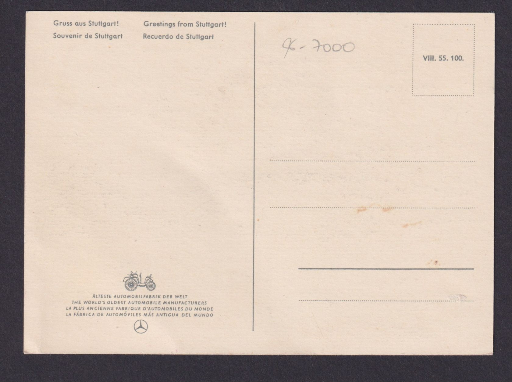 Werbung 1952, ungebraucht.Willkommen in Stuttgart der Stadt der ältesten Automobilfabrik der Welt Baden Württemberg! Sehr schön gestaltete Künstler Anischtskarte Motivkarte Verkehr und Transport ! Selten!