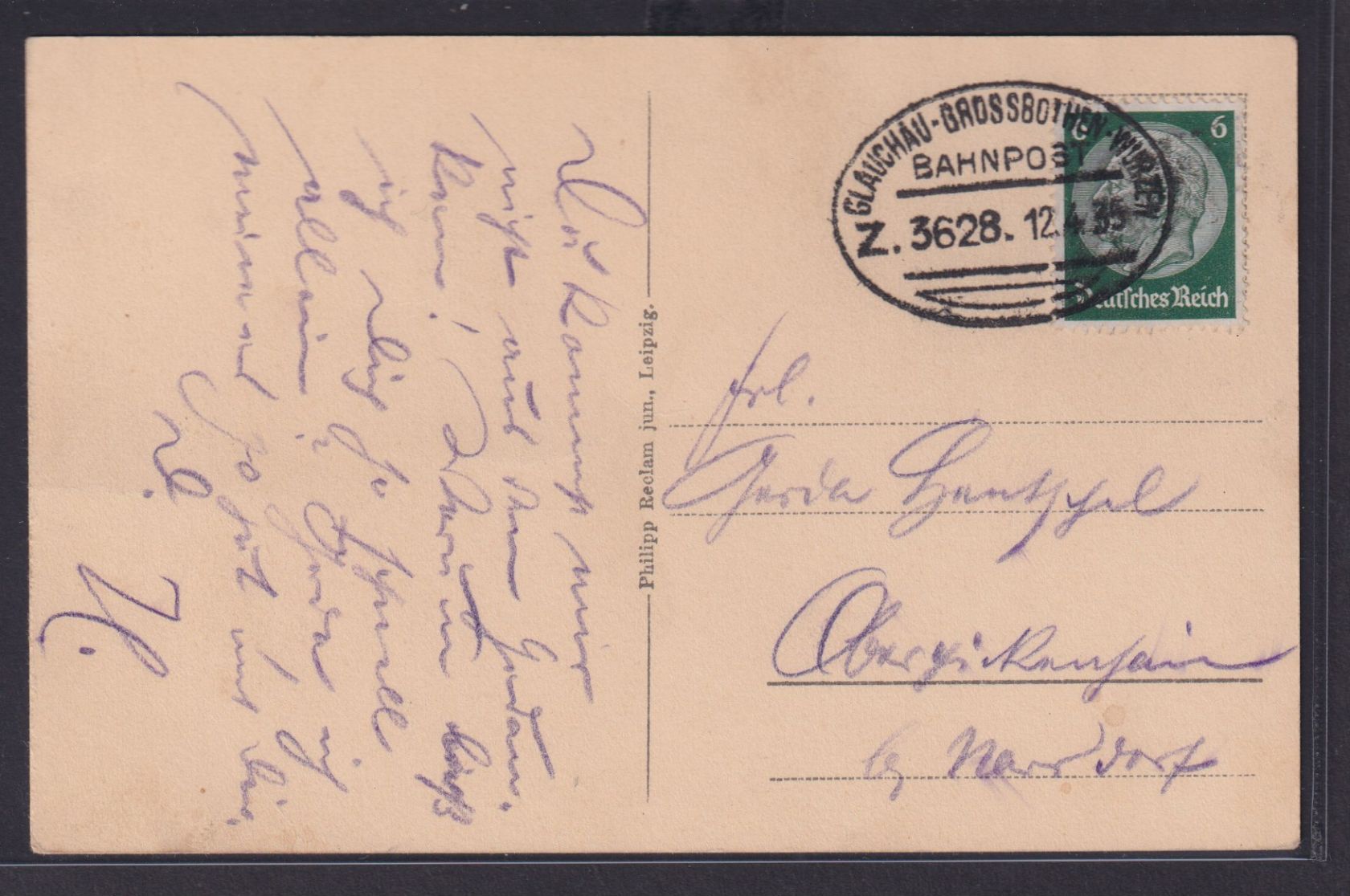 Ansichtskarte Bahnpost Zug 3628 Glauchau Grossbothen Würzen Sachsen nach