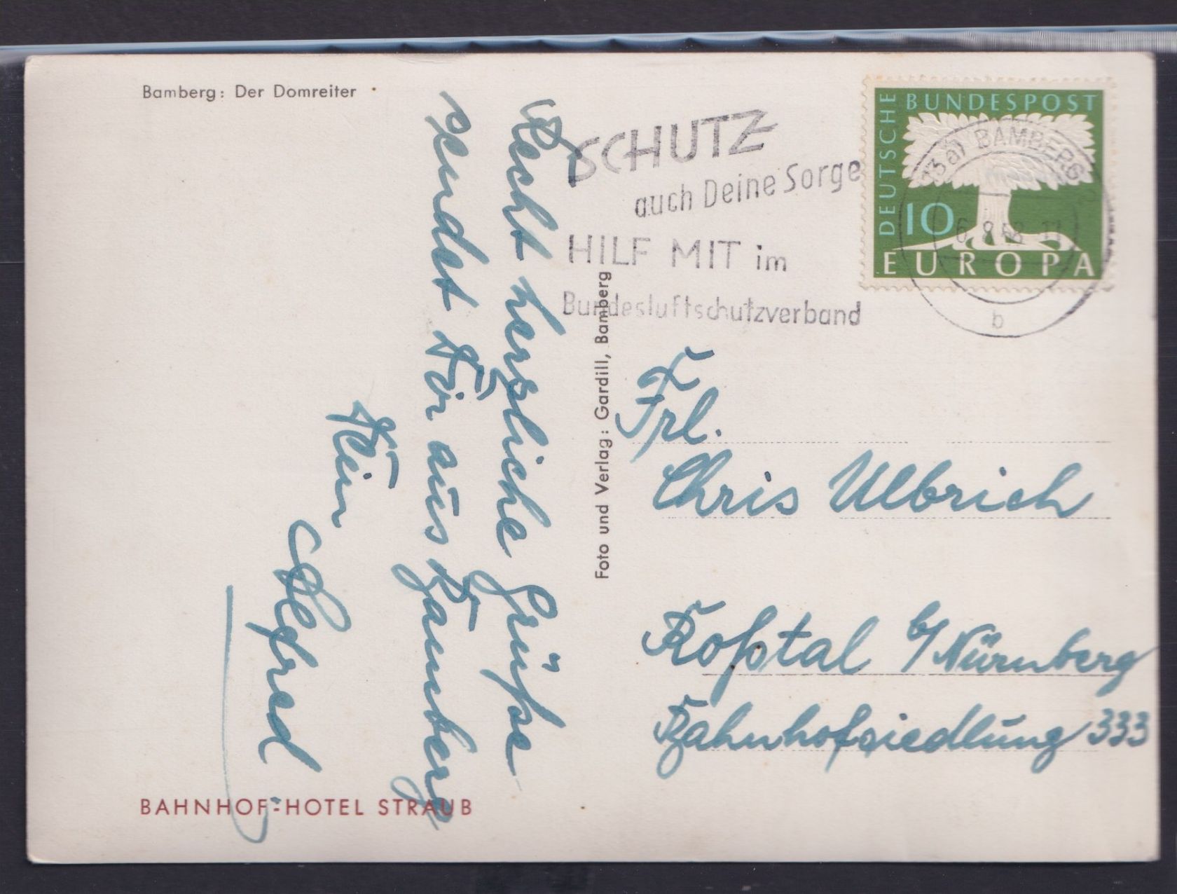 Ansichtskarte Bamberg Domreiter Bayern nach Roßtal 06.08.1958