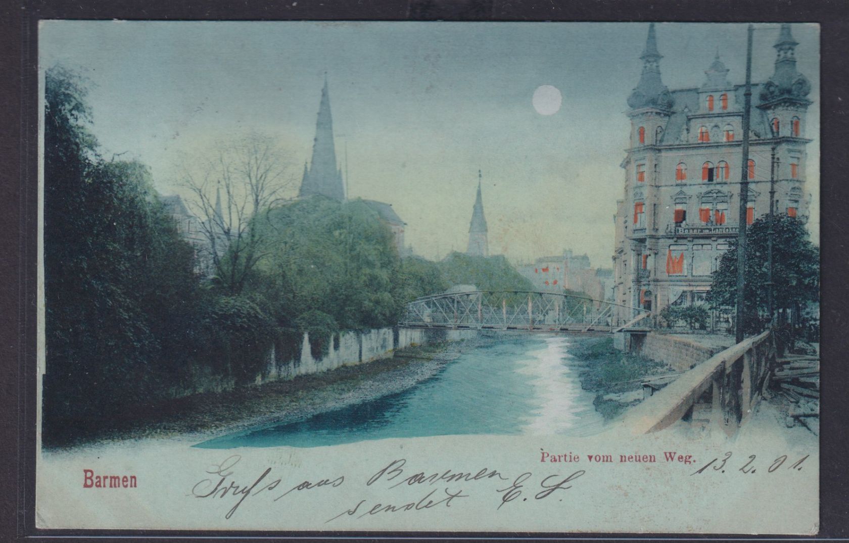 Ansichtskarte Barmen Wuppertal Mondscheinlitho Wupper Fluß Brücke Kirche Neuer