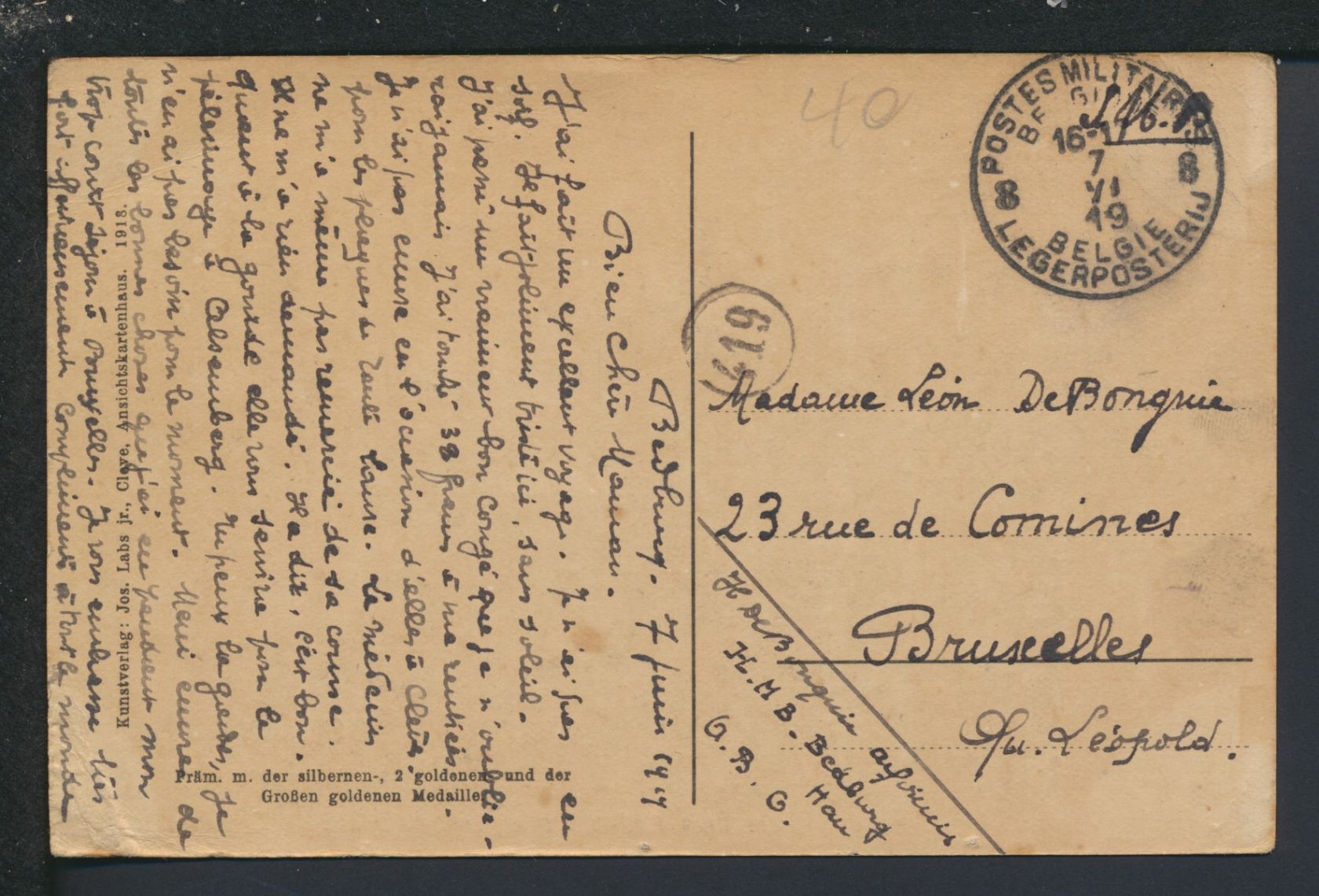 Ansichtskarte Bedburg NRW Verwaltung Heil und Pflegeanstalt Brüssel Belgien 1917