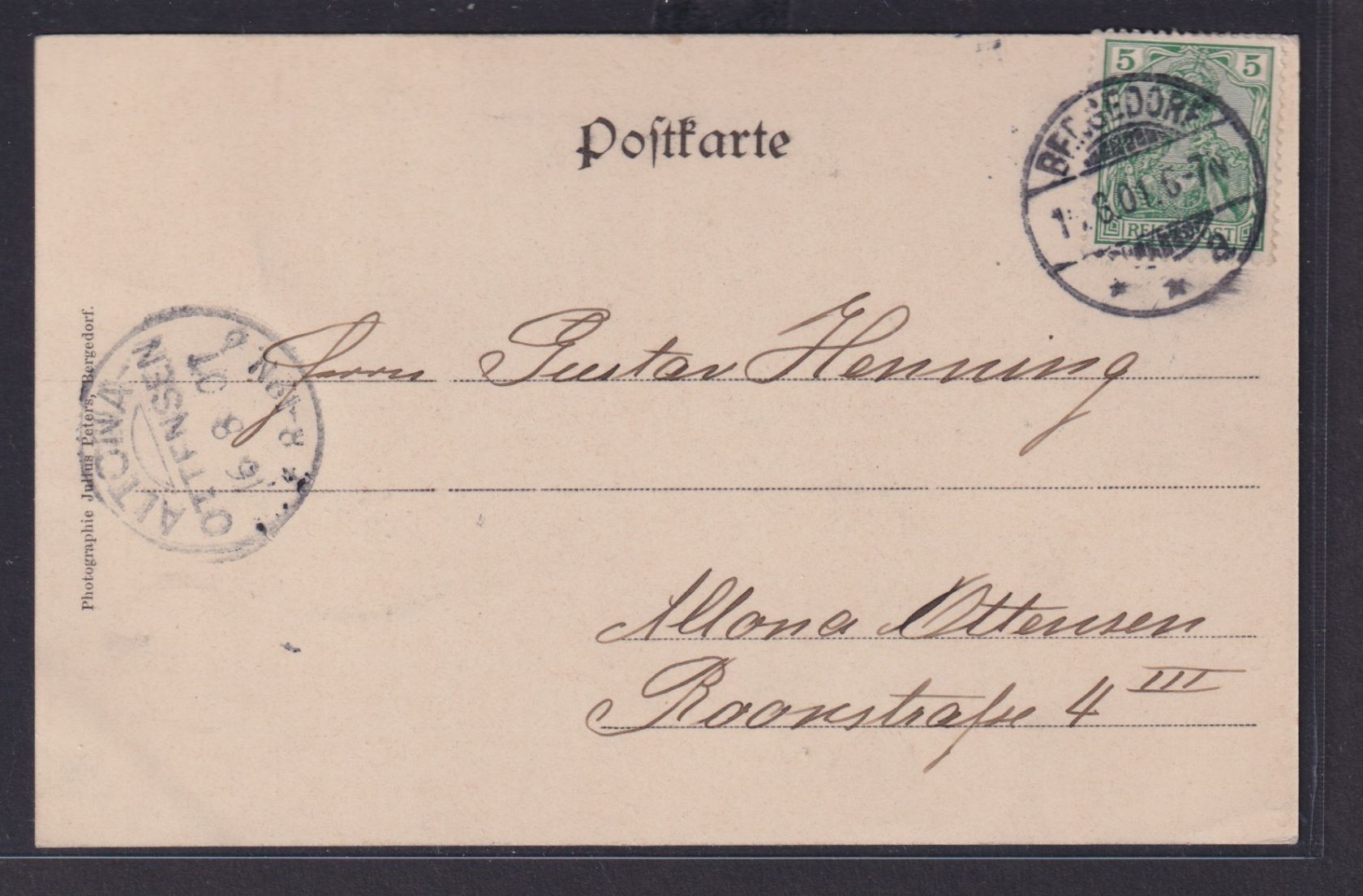 Ansichtskarte Bergedorf Kirche Zierkarte Hamburg nach Altona 16.08.1901