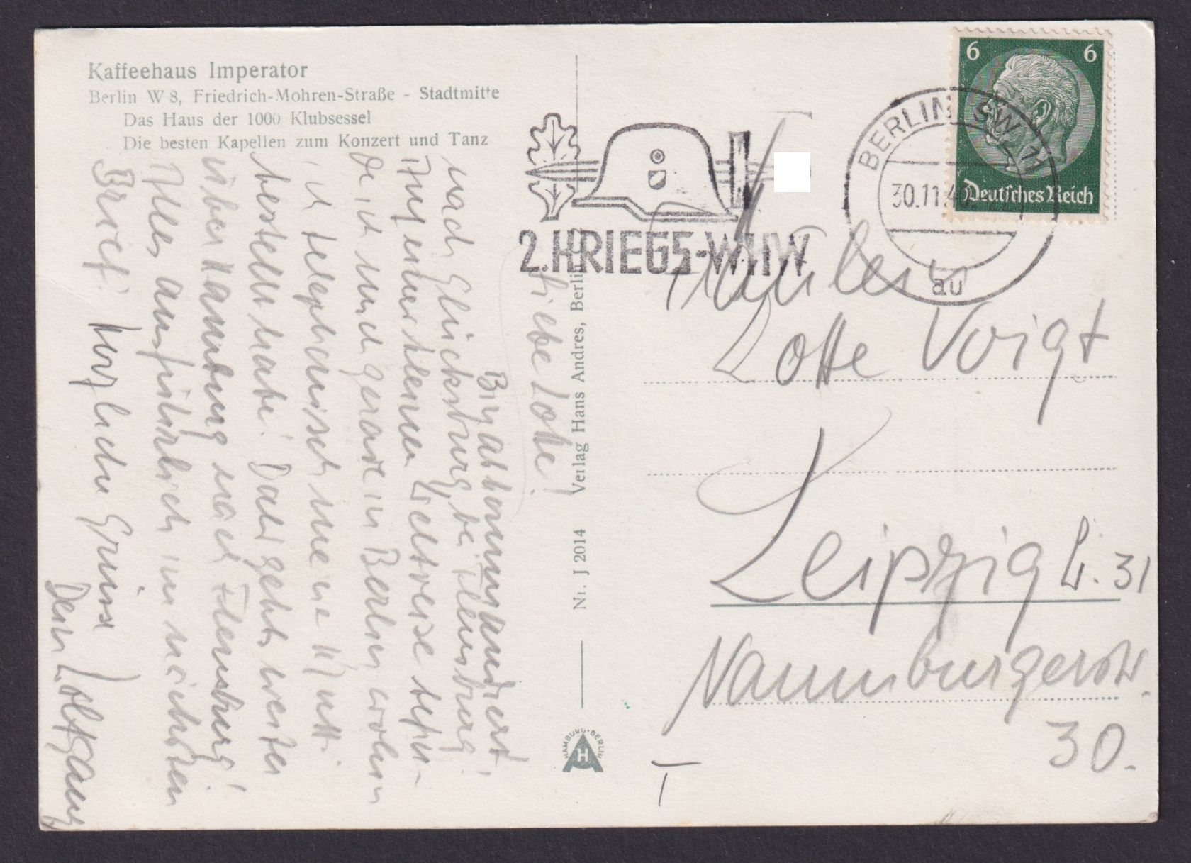 30.11.1940 Deutsches Reich SST 2. Kriegs WHW