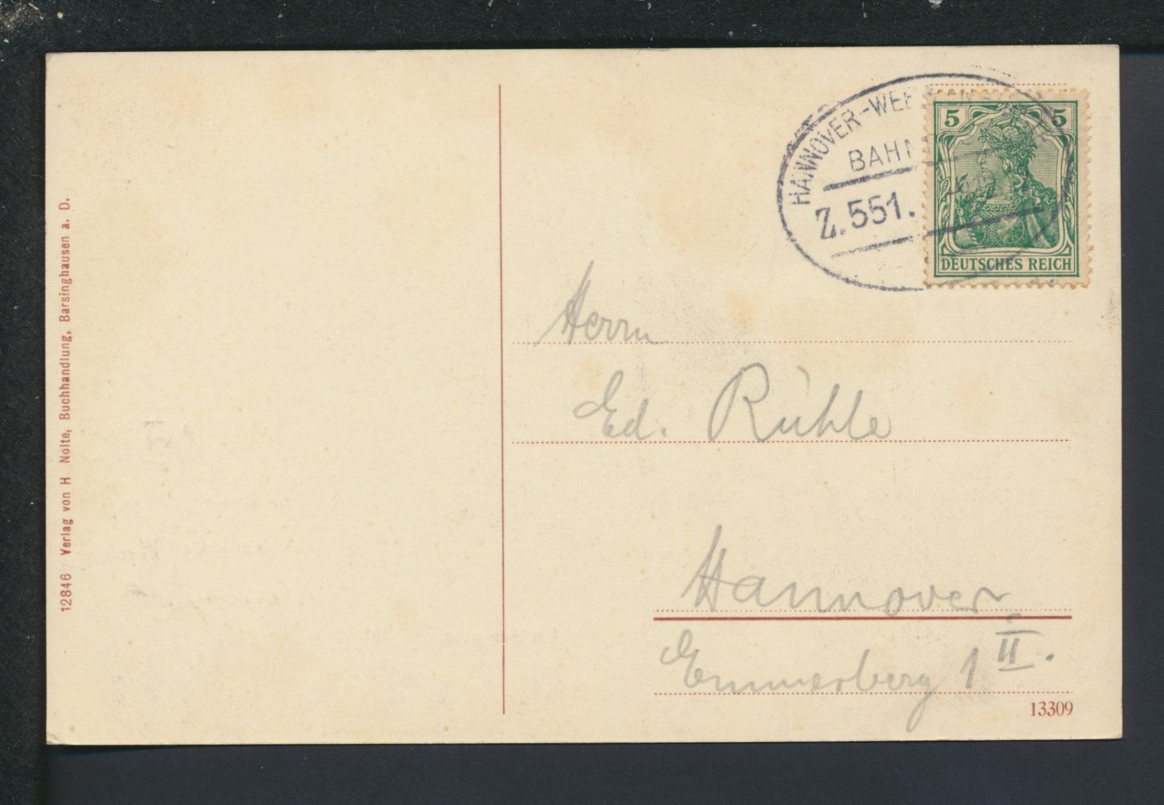 Ansichtskarte Deister Niedersachsen Bahnpost Zug 551 Hannover 1912