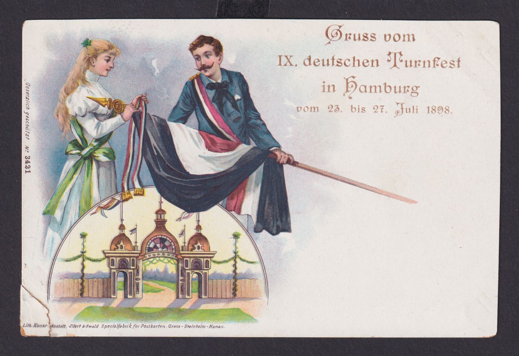 Ansichtskarte Deutsches Turnfest Anlass in Hamburg 23. b. 27. Juli 1898