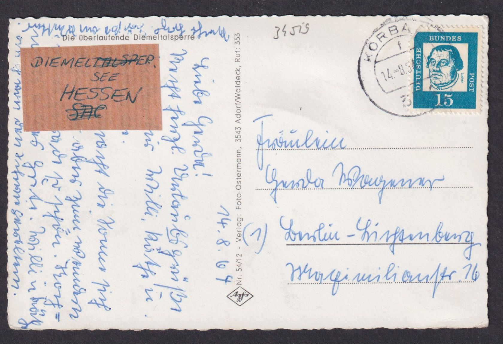 Ansichtskarte Diemeltalsperre NRW Hochsauerlandkreis n. Berlin Lichtenberg