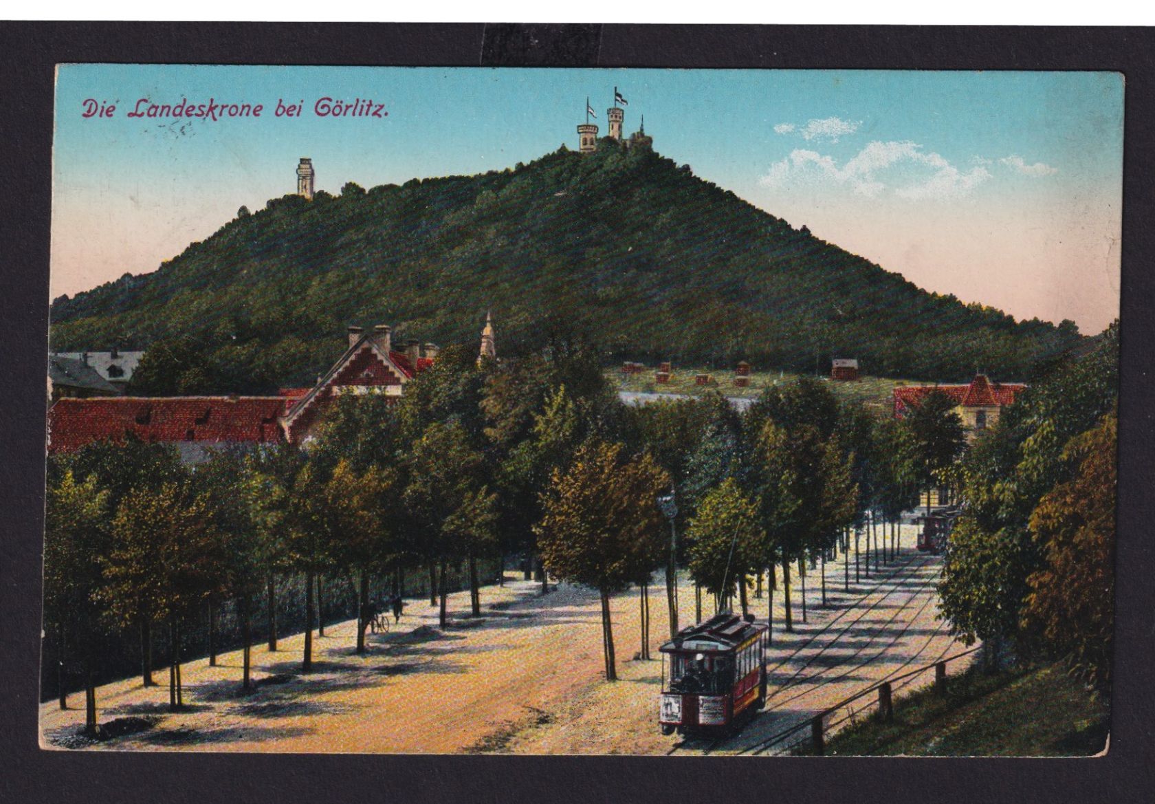 Ansichtskarte Görlitz Sachsen Landeskrone Berg Strassenbahn Feldpost nach