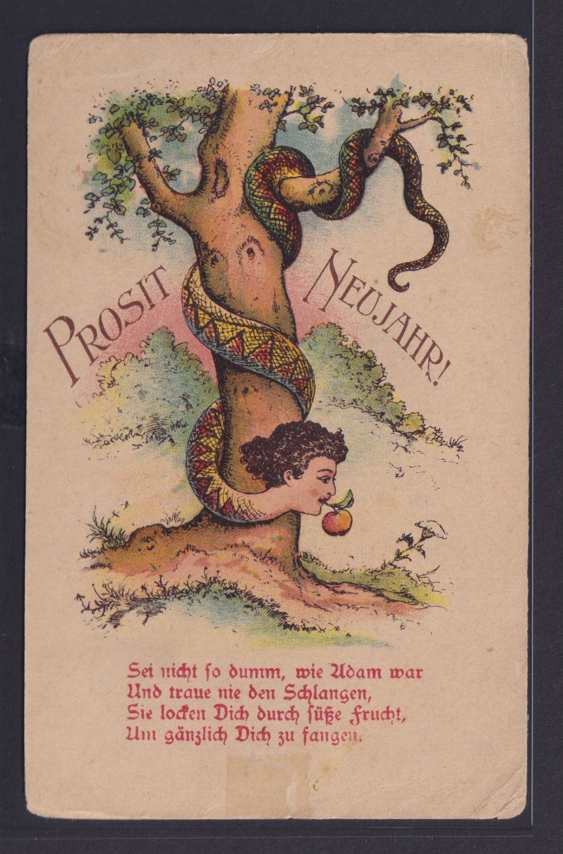 Ansichtskarte Grußkarte Neujahr Scherzkarte mit Spruch Adam im Paradies
