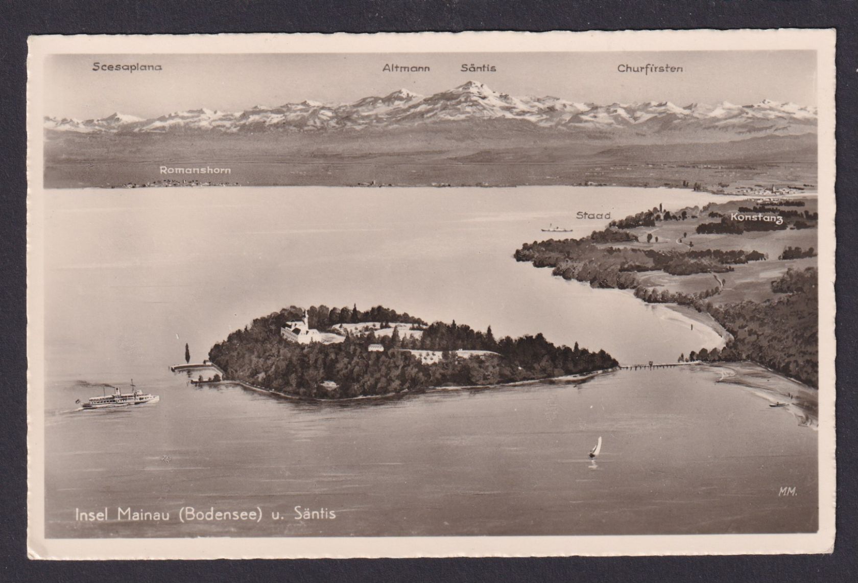 Ansichtskarte Insel Mainau Baden Württemberg Bodensee Luftbild Gebirge