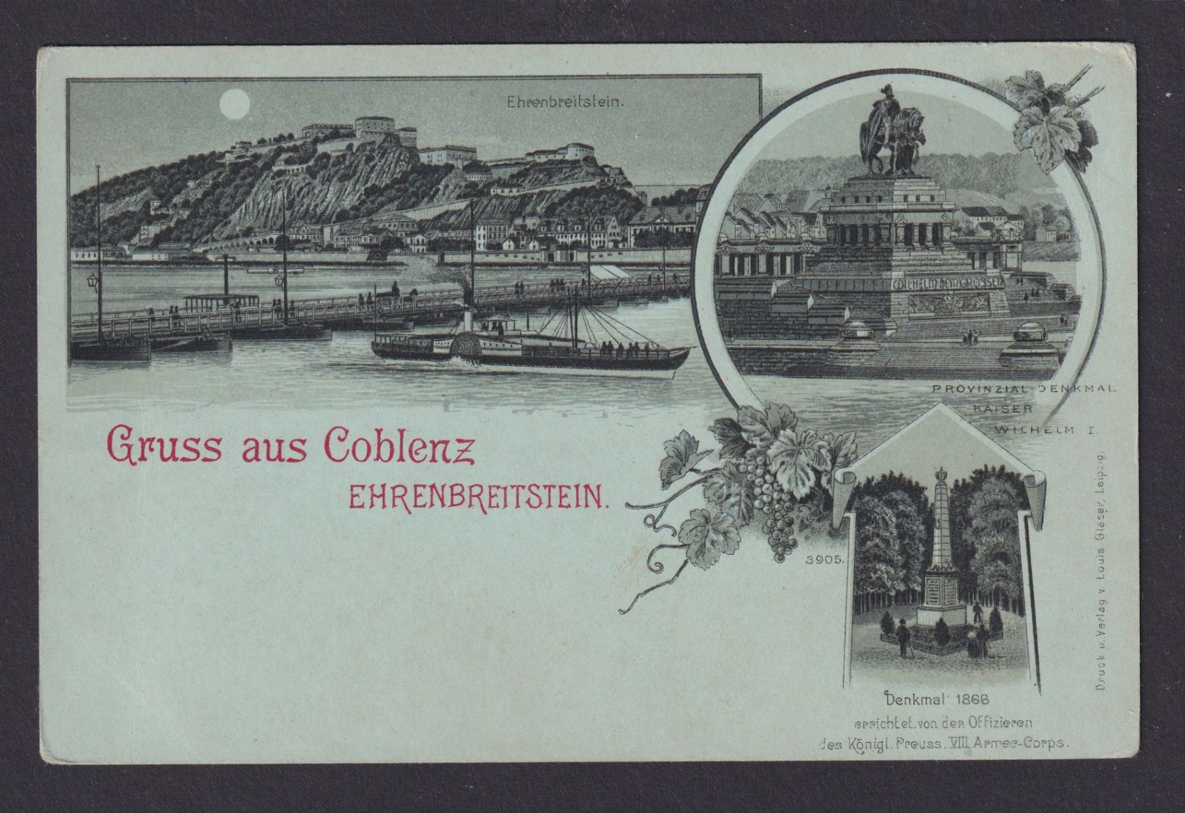 Ansichtskarte Koblenz Rheinland Pfalz Ehrenbreitstein Kaiser Wilhelm Denkmal