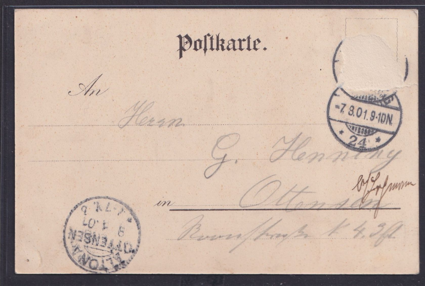 nach Altona. 07.08.!901 Deutsches Reich Marke entfernt