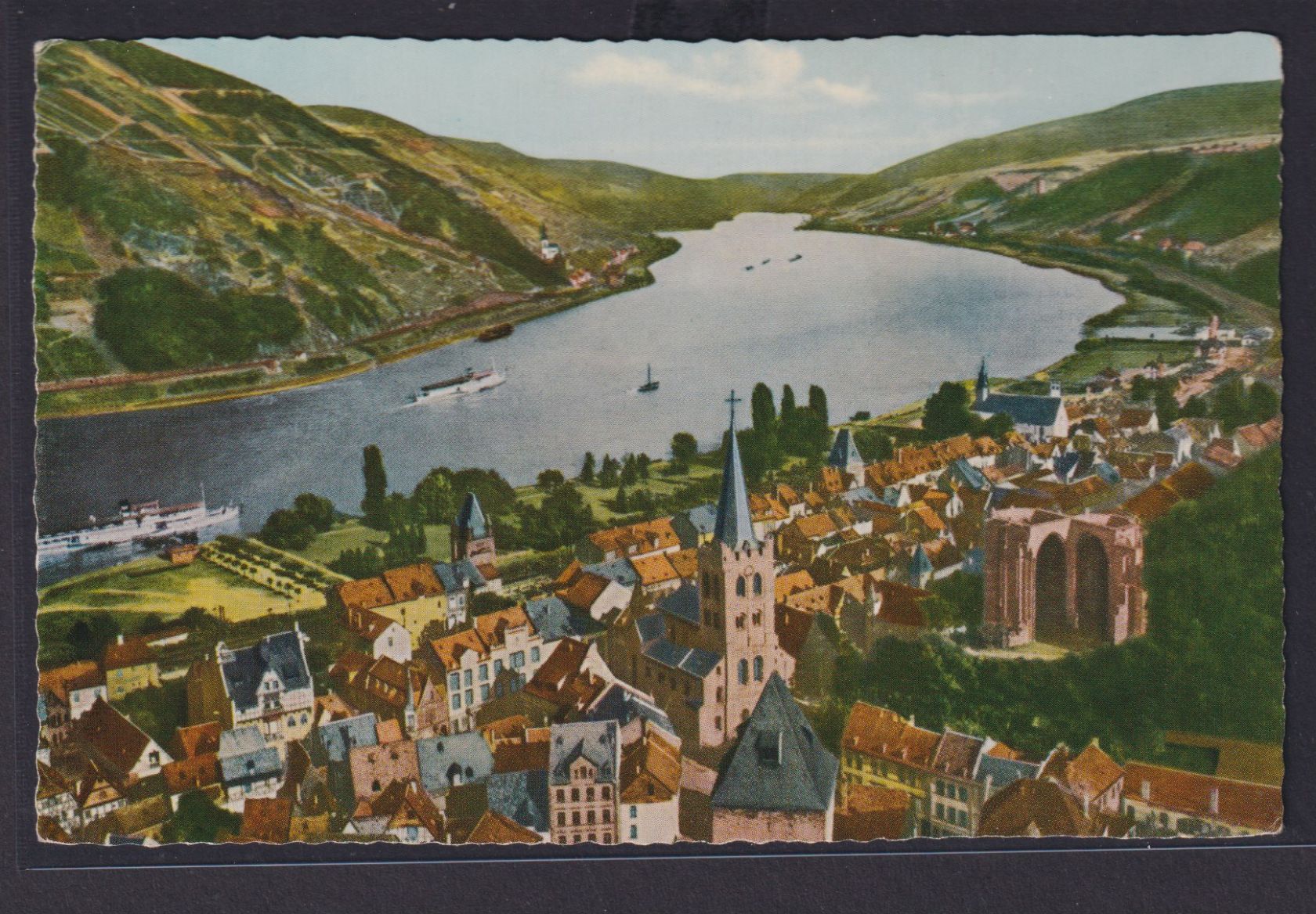 Ansichtskarte Künstlerkarte Bacharach Rhein Fluss Totalansicht Rheinland Pfalz