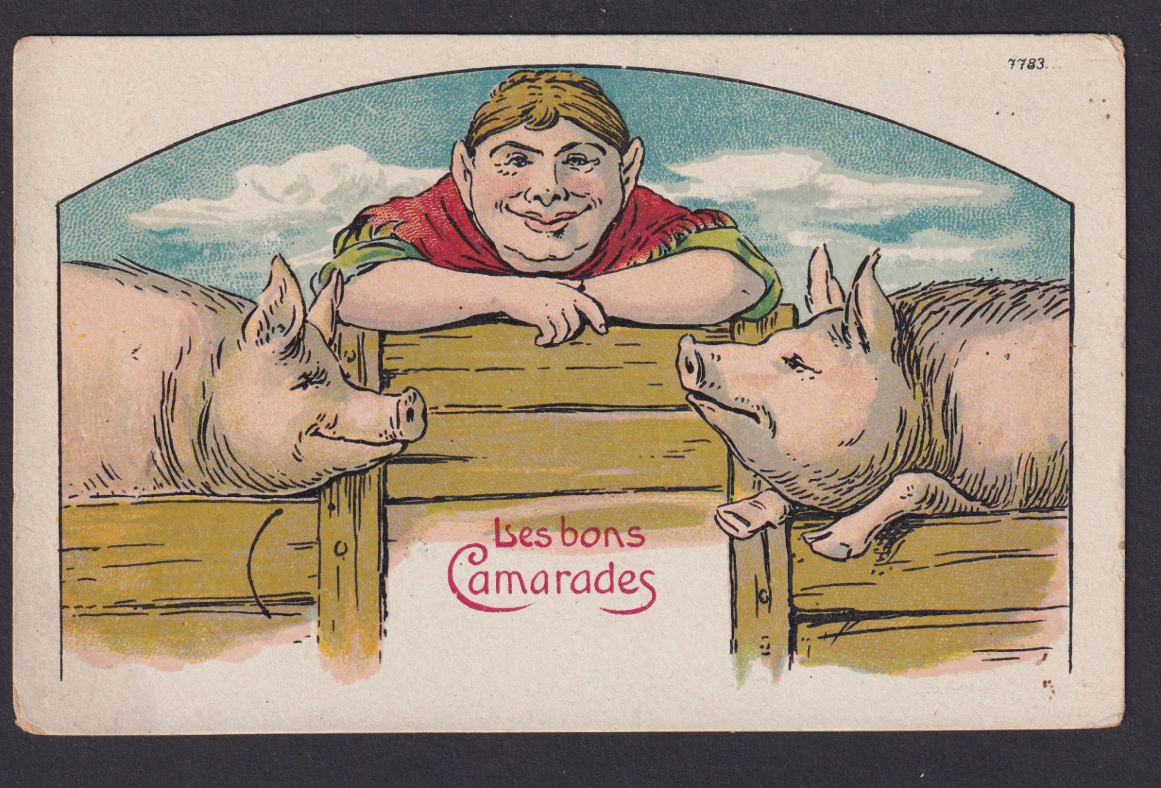 Ansichtskarte Künstlerkarte Scherzkarte Humor Bauer Schweine Gute Kameraden