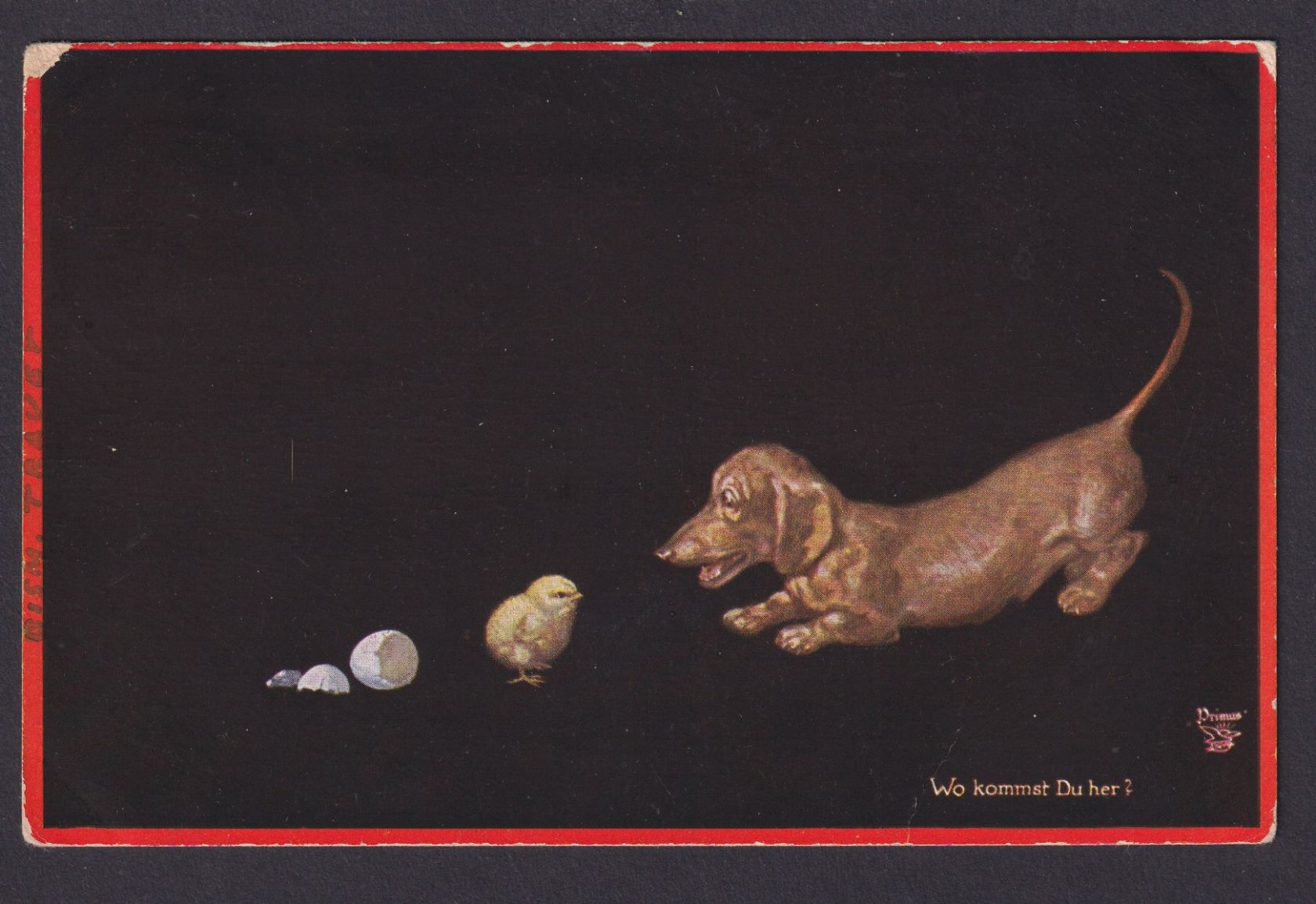 Ansichtskarte Künstlerkarte Scherzkarte Humor Hund Küken ab Breslau Polen n.