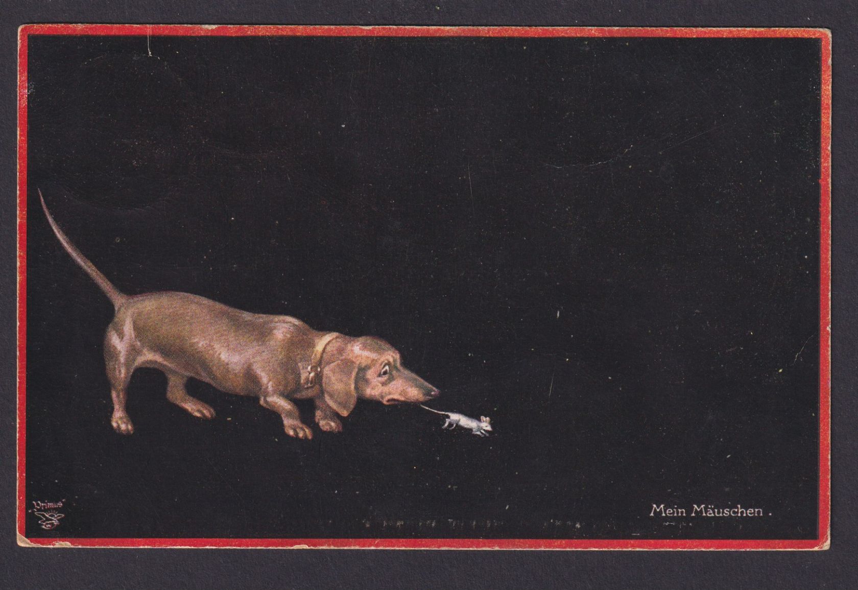 Ansichtskarte Künstlerkarte Scherzkarte Humor Hund Maus ab Bückeburg
