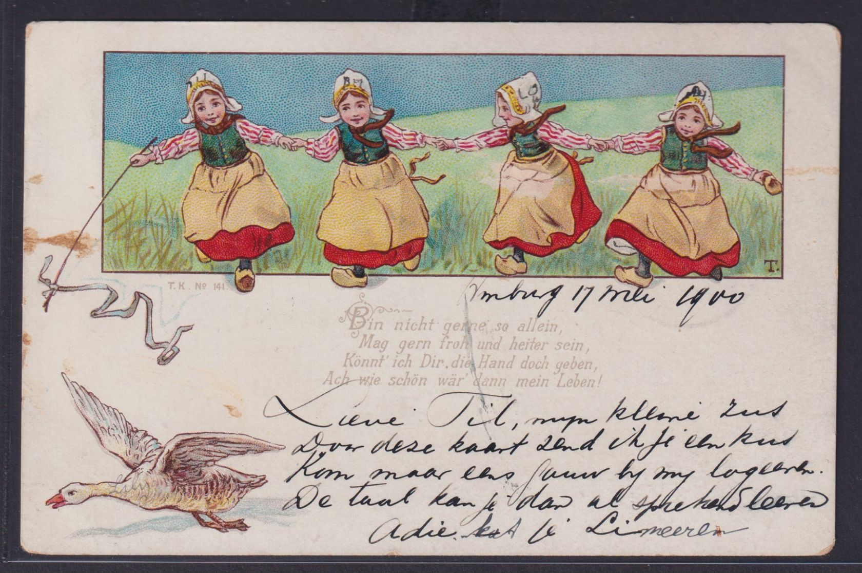 Ansichtskarte Künstlerkarte Sign. Mädchen Tanz Tracht Spruch ab Hamburg nach