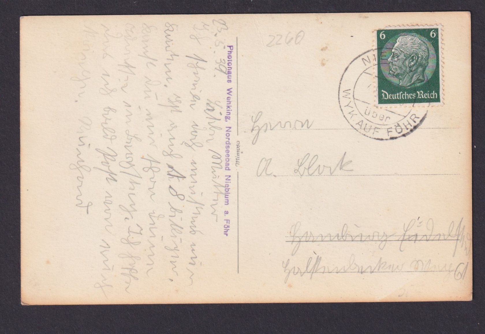 23.05.1939 Deutsches Reich Landpoststempel Nieblum über Wyk auf Föhr