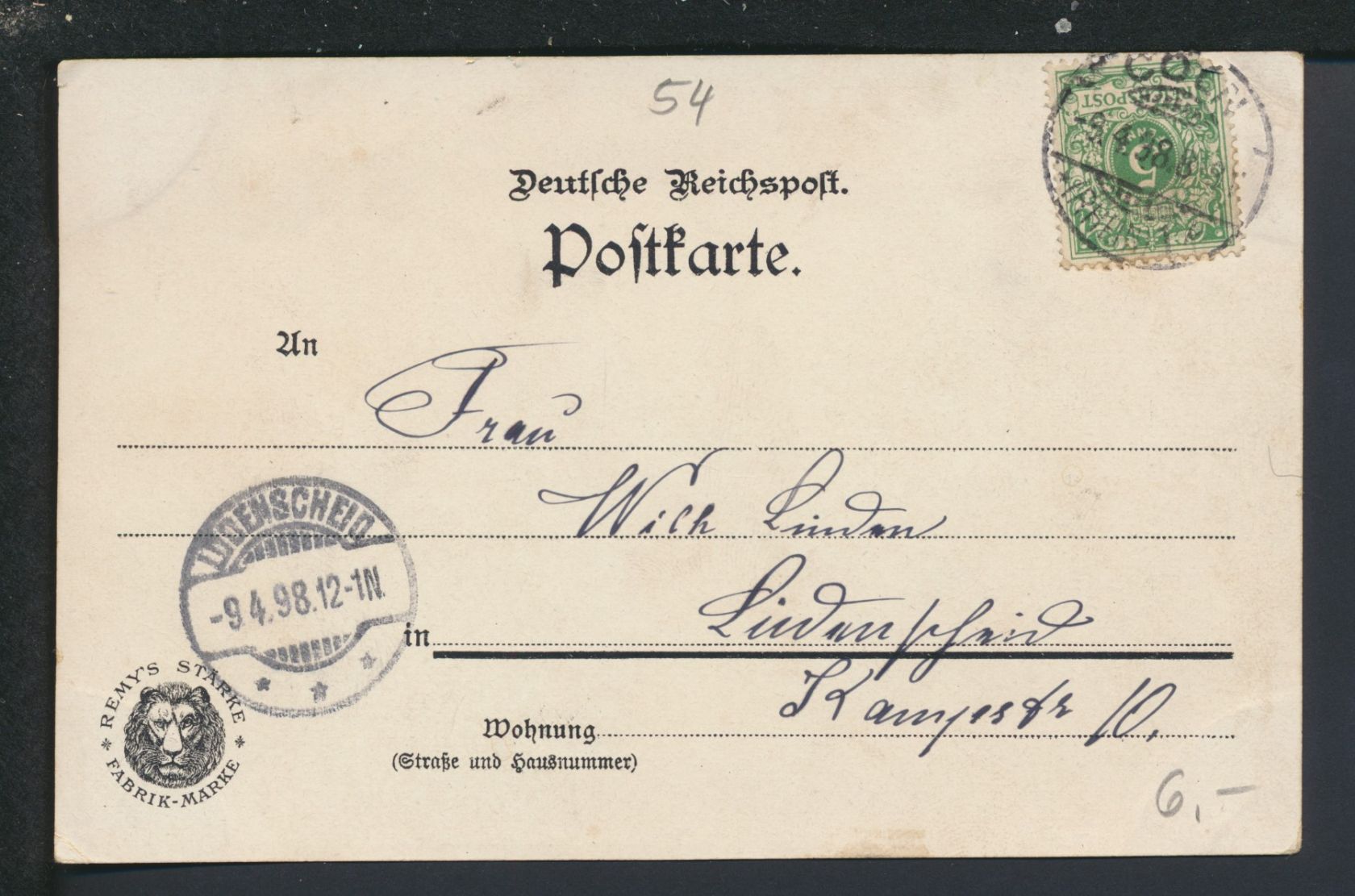 Ansichtskarte Remagen Rheinland-Pfalz Reklame Remy Stärke Lüdenscheid NRW 1898