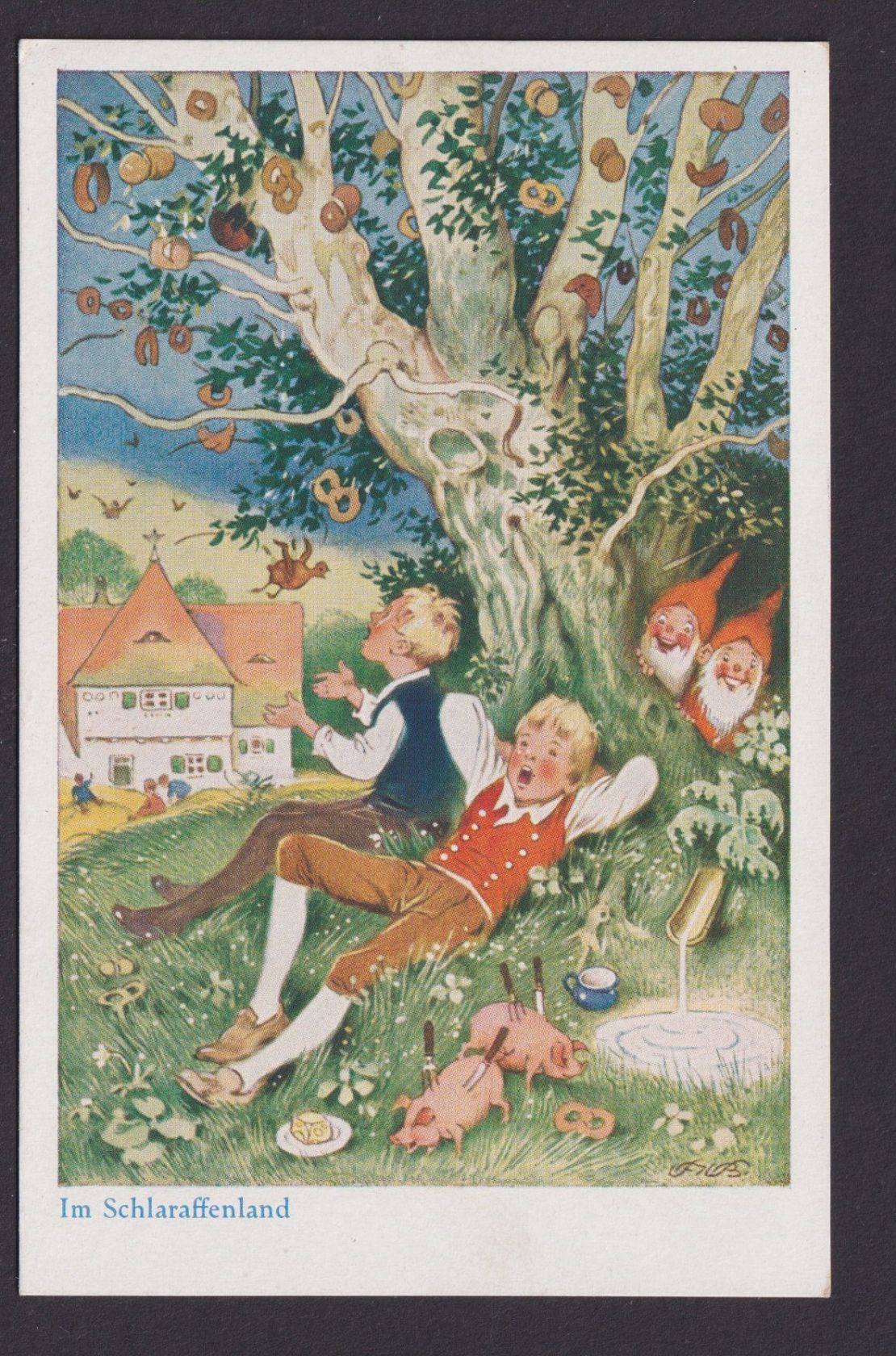 Ansichtskarte Scherzkarte Humor Künstlerkarte Sign. Im Schlaraffenland