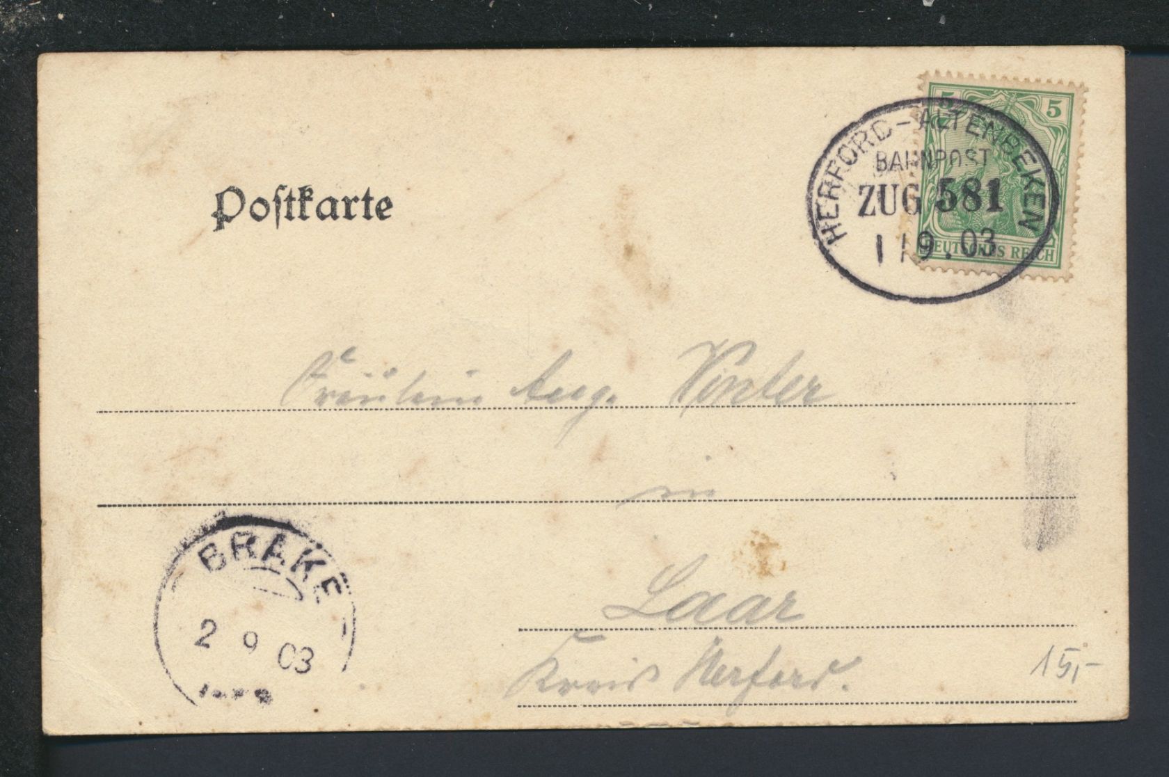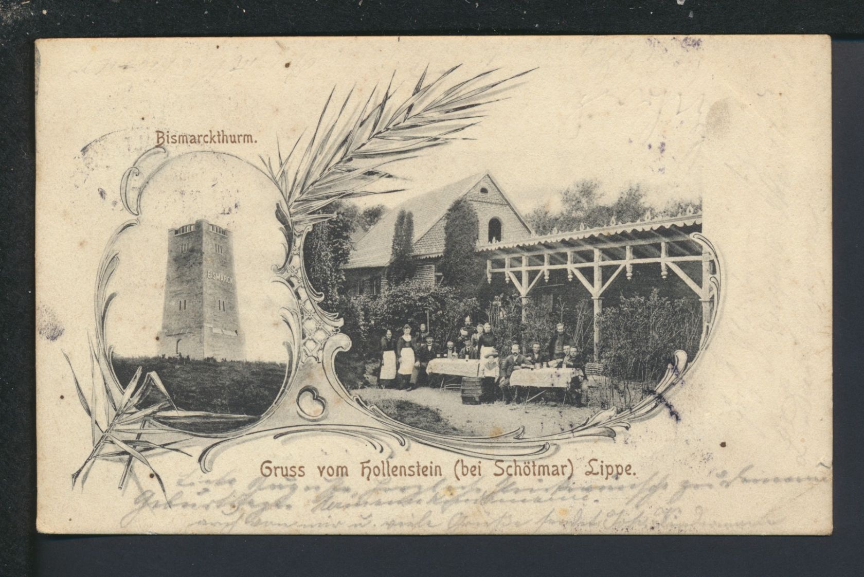 Ansichtskarte Schötmar Lippe Hollenstein Bismarck Turm Bahnpost Zug 581 Laar 1903