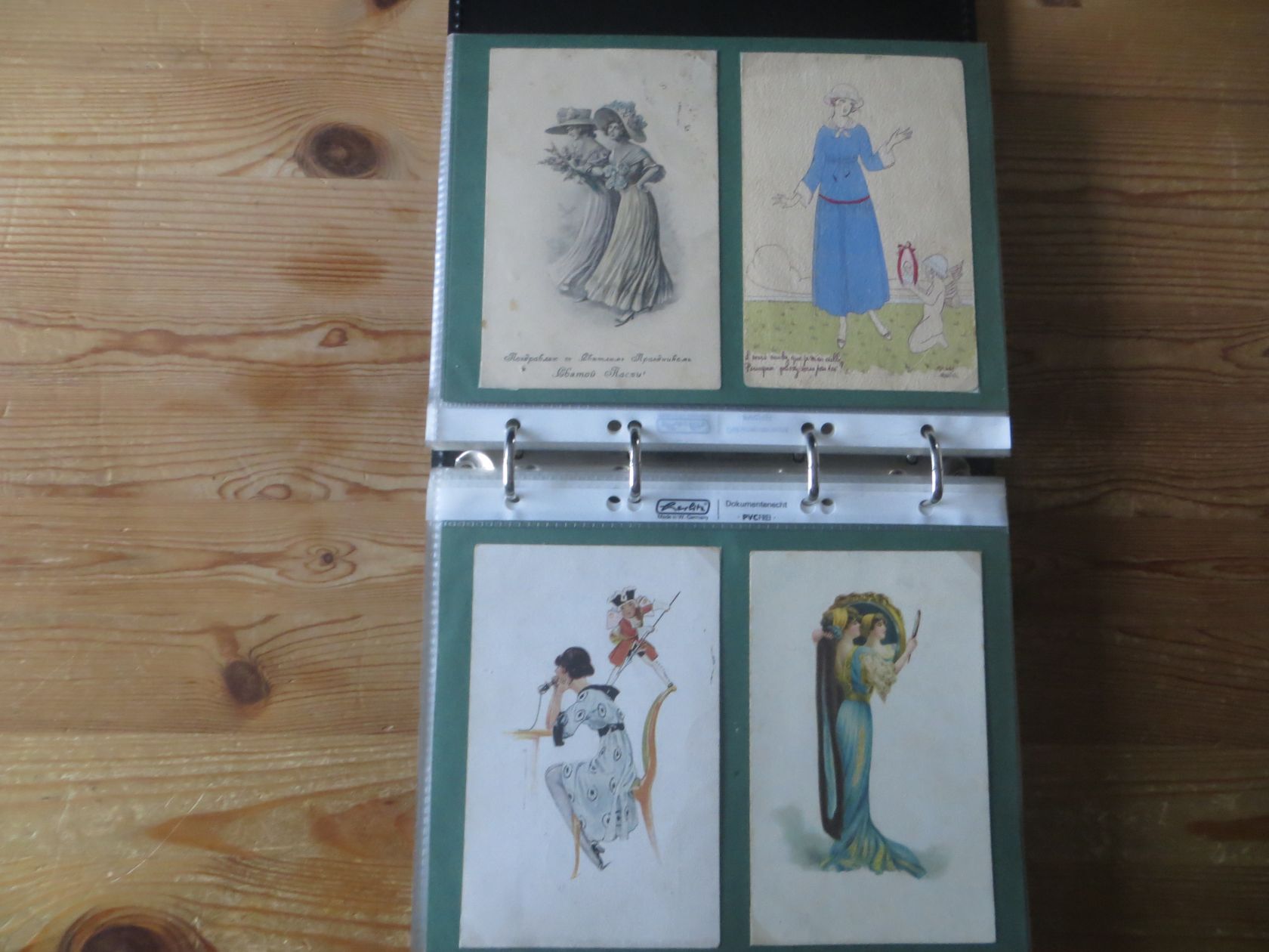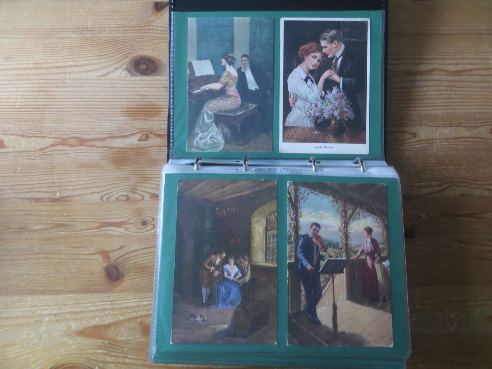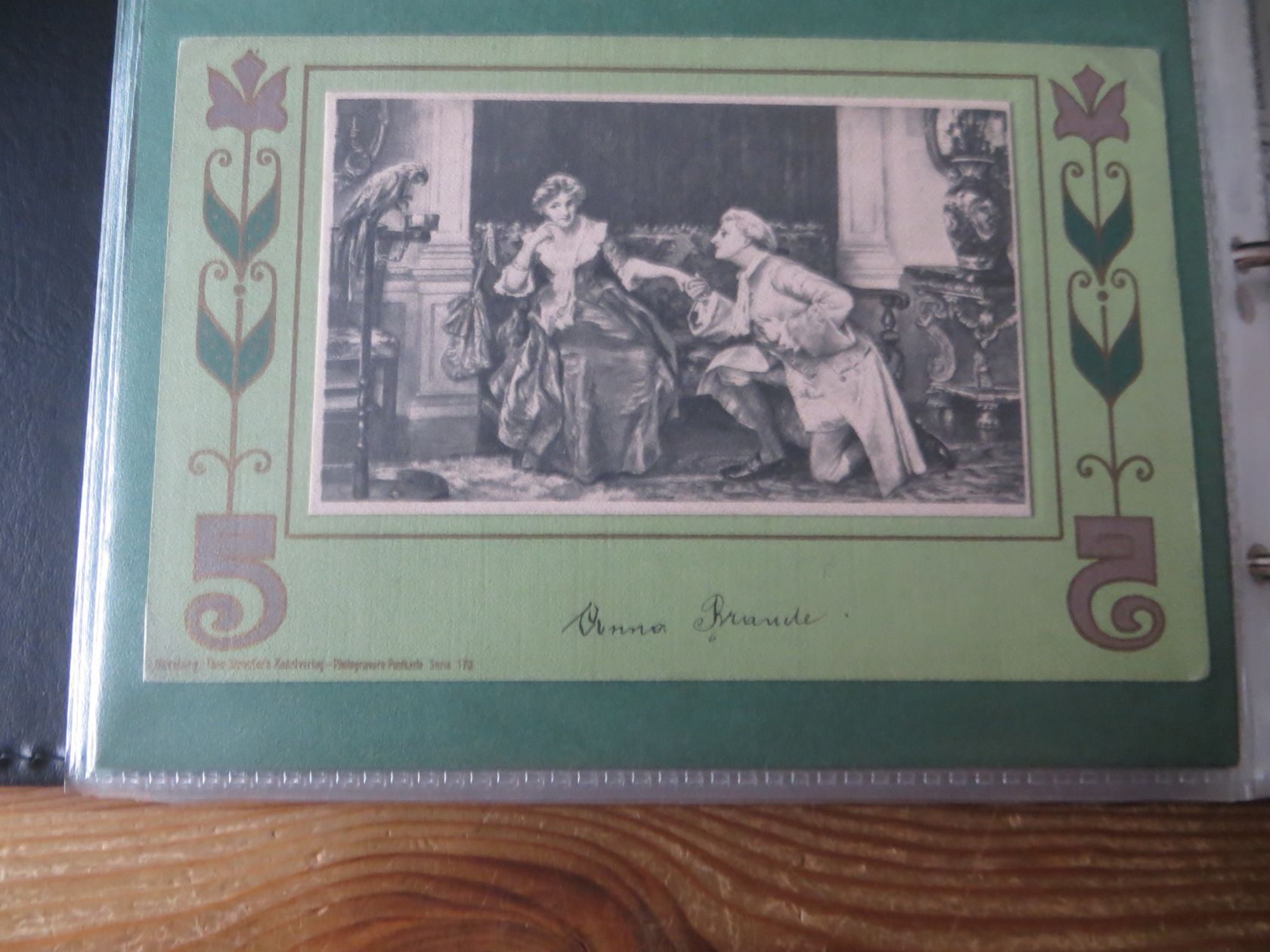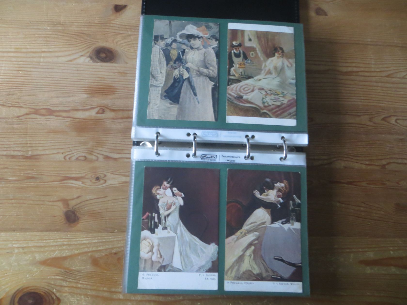 dabei inter. Künstler AK, viel zur Jugendstil - Zeit, tolle Prägekarten. Ein Los der besonderen Art, abseits von dem Massenkarten die man sonst zum Thema meist findet. Alles gute Gesamterhaltung und der Sammler hat die Karten sehr sauber mit Fotoecken auf farbigen Karton angelegt. Ein wirklich tolles Objekt! Zum Thema Liebe ist längst noch nicht alles gesagt! Und wie meist bei uns ohne Entnahmen angeboten!