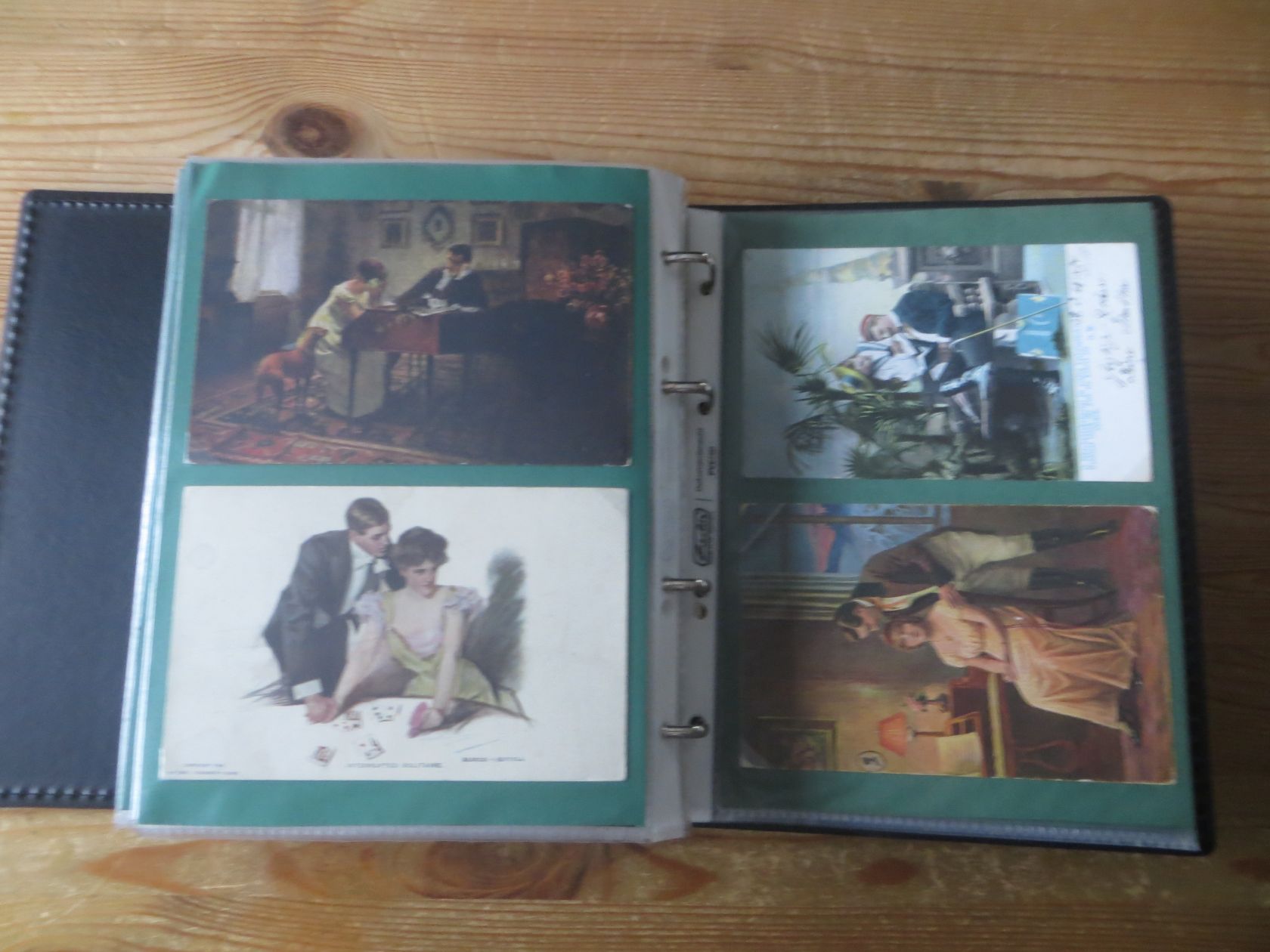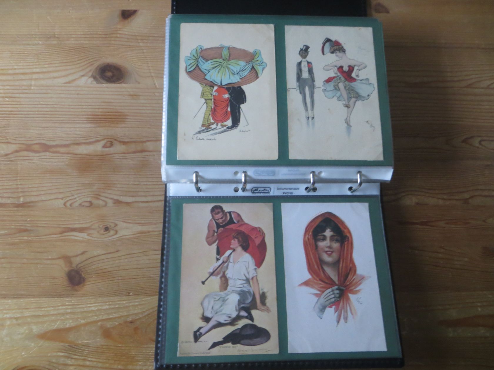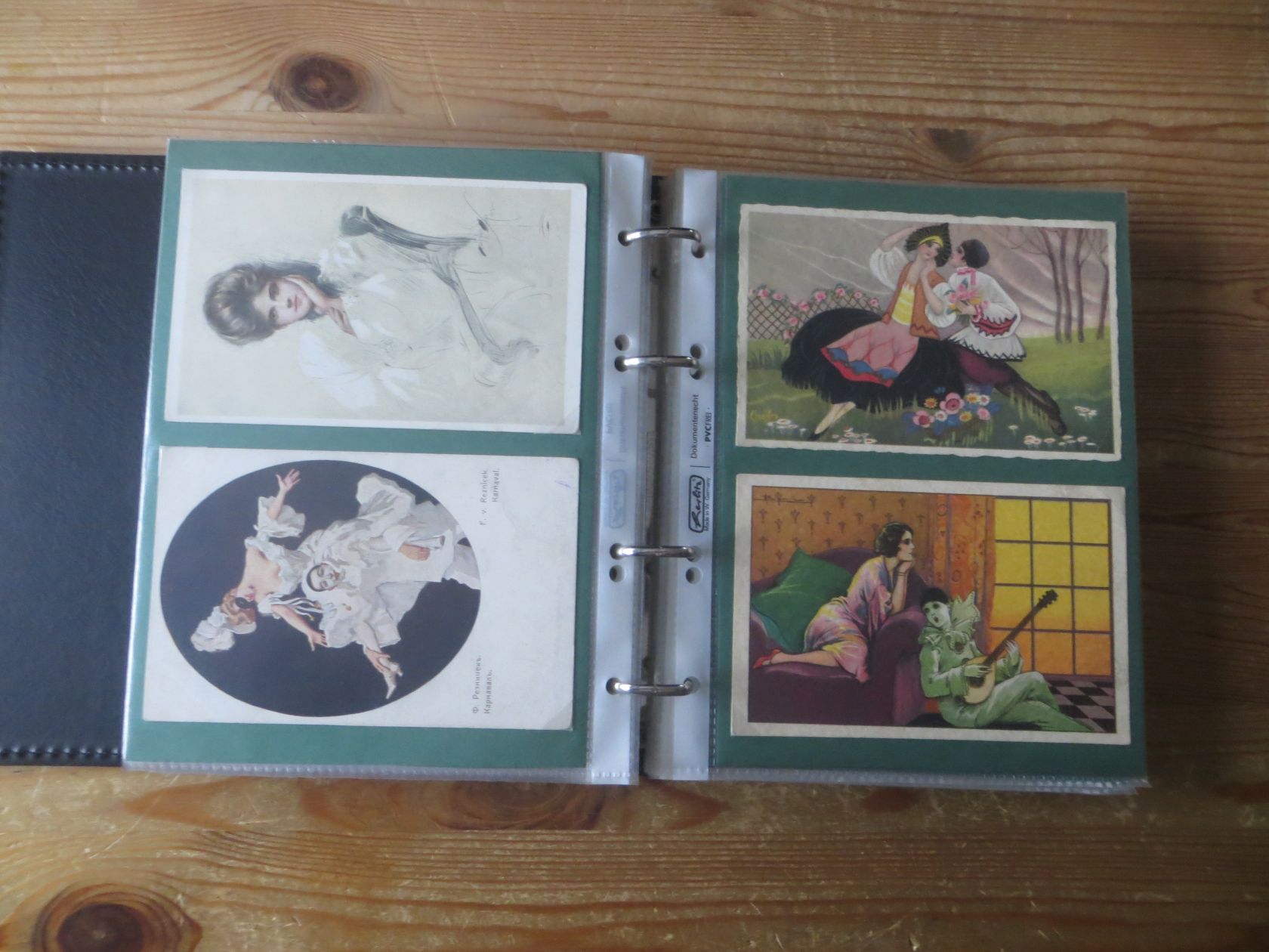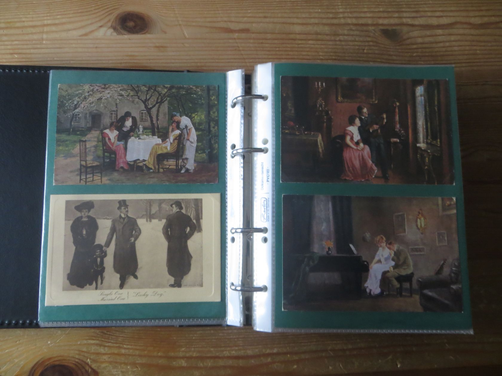 dabei inter. Künstler AK, viel zur Jugendstil - Zeit, tolle Prägekarten. Ein Los der besonderen Art, abseits von dem Massenkarten die man sonst zum Thema meist findet. Alles gute Gesamterhaltung und der Sammler hat die Karten sehr sauber mit Fotoecken auf farbigen Karton angelegt. Ein wirklich tolles Objekt! Zum Thema Liebe ist längst noch nicht alles gesagt! Und wie meist bei uns ohne Entnahmen angeboten!