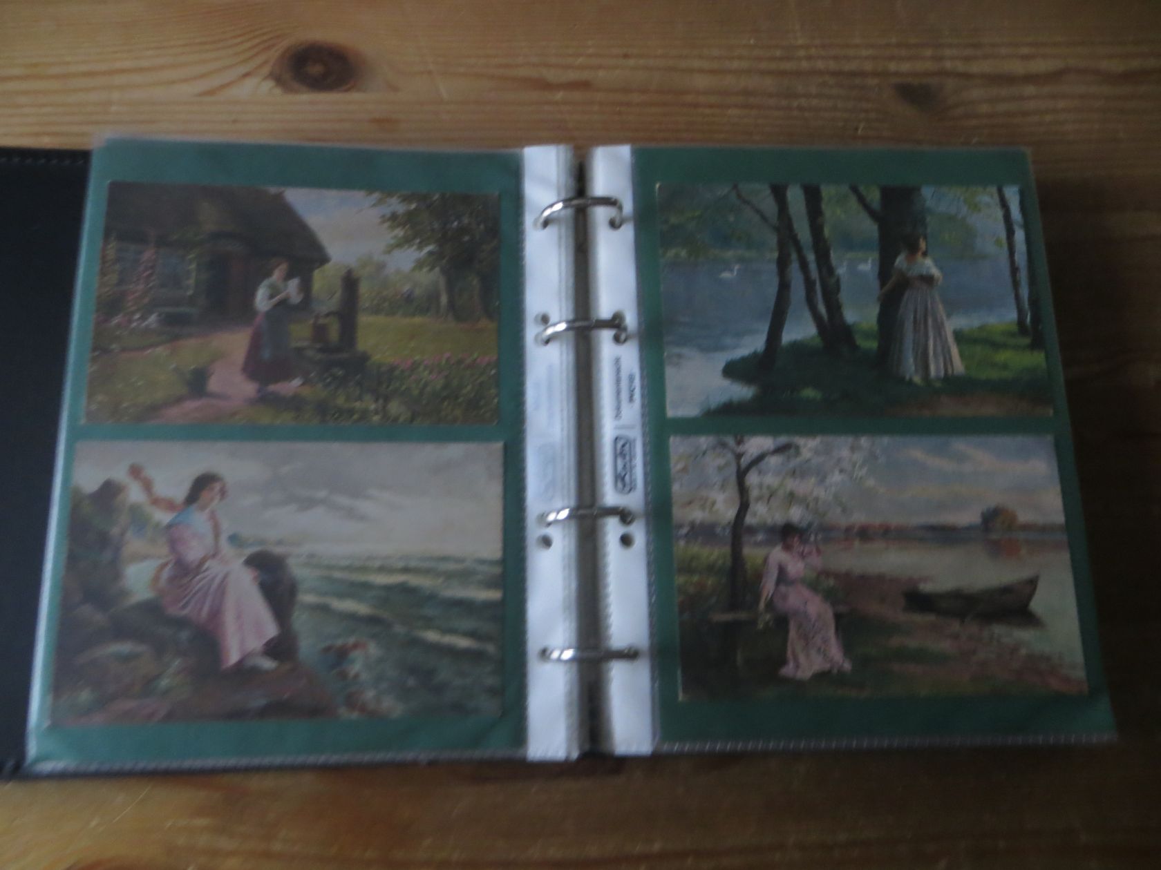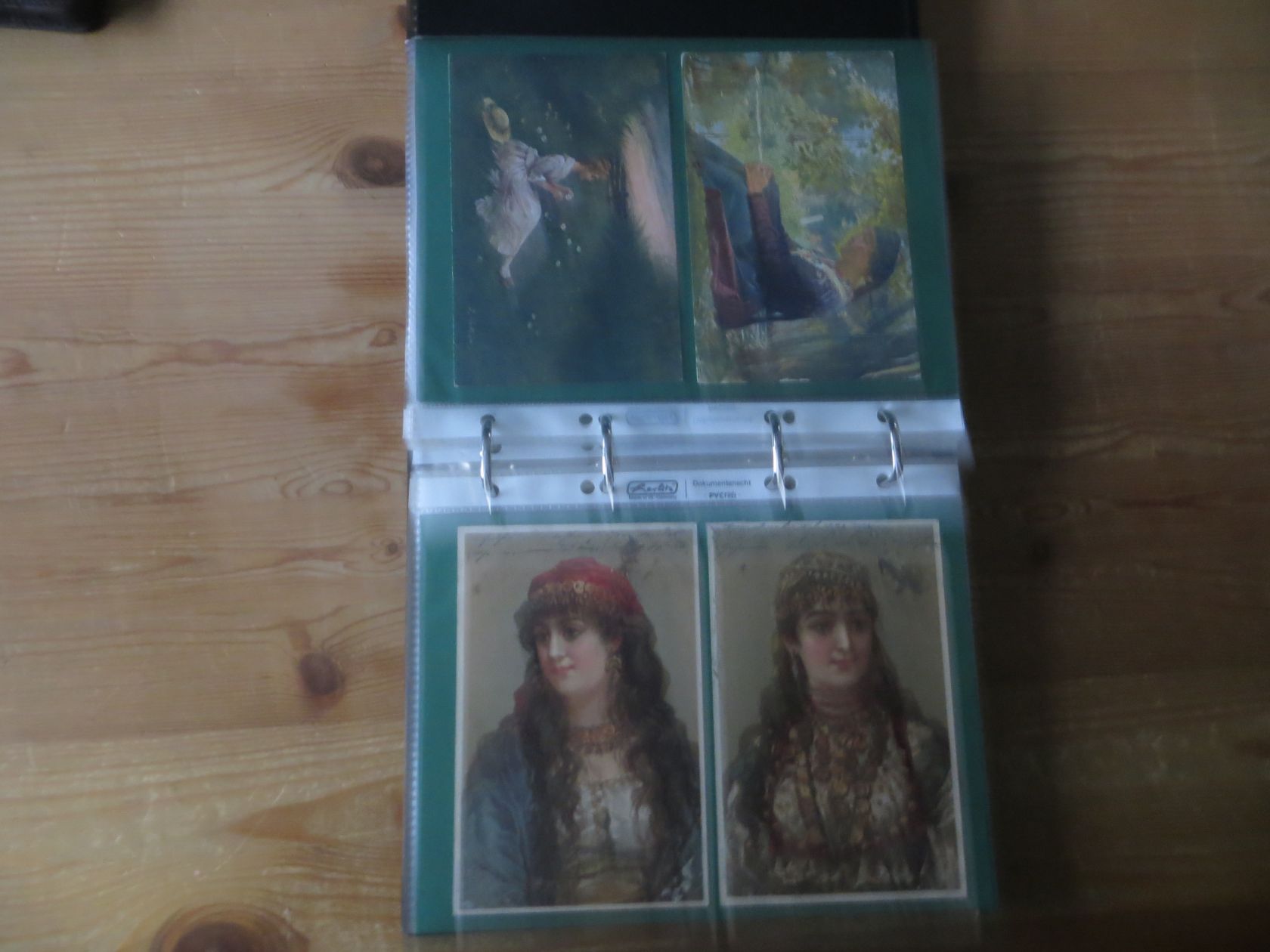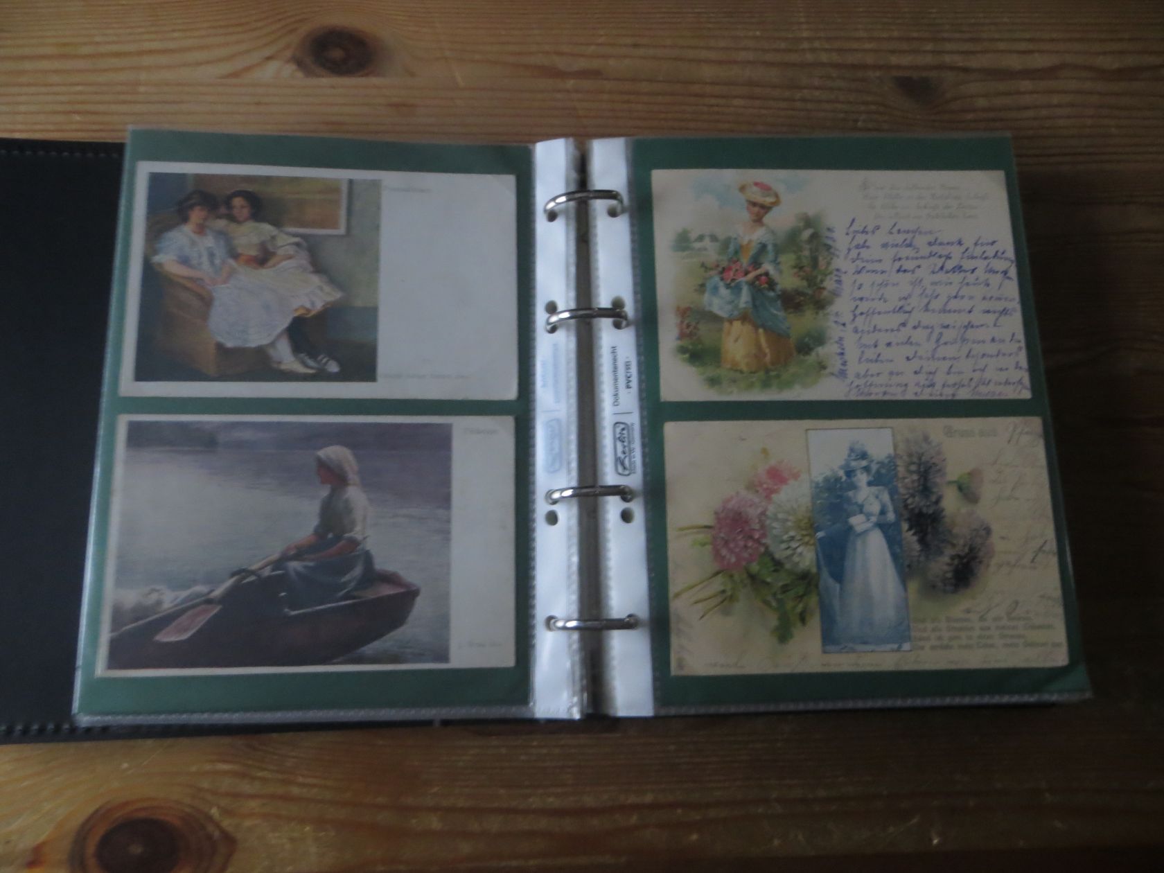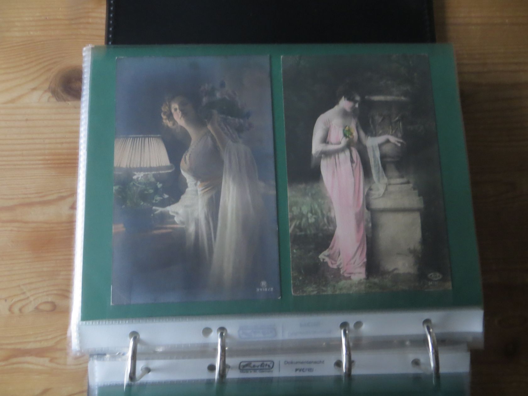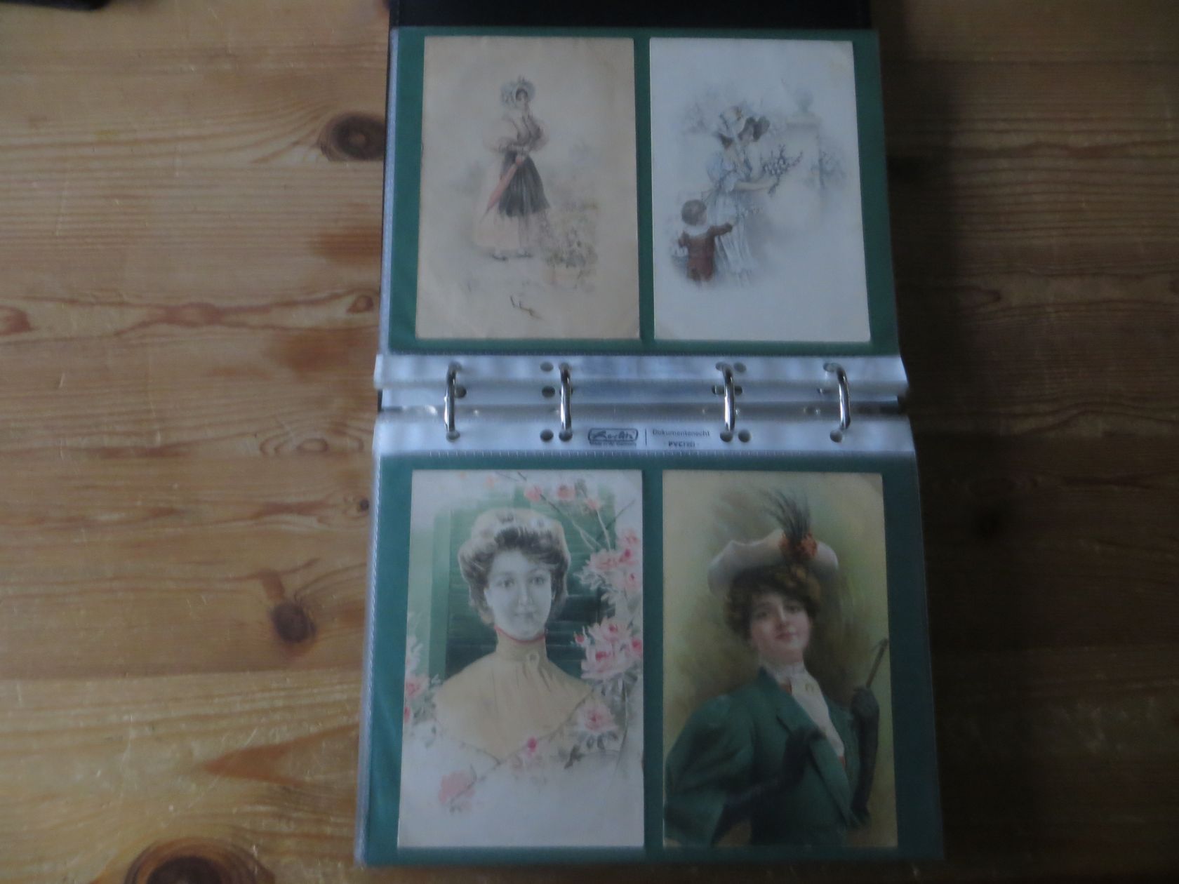 dabei inter. Künstler AK, viel zur Jugendstil - Zeit. Ein Los der besonderen Art, abseits von dem Massenkarten die man sonst zum Thema meist findet. Alles gute Gesamterhaltung und der Sammler hat die Karten sehr sauber mit Fotoecken auf farbigen Karton angelegt. Ein wirklich tolles Objekt! Und wie meist bei uns ohne Entnahmen angeboten!