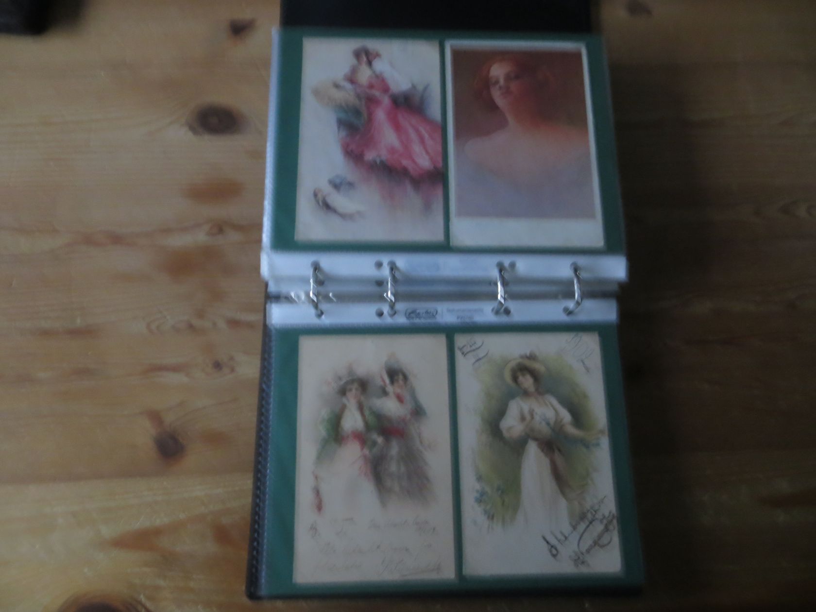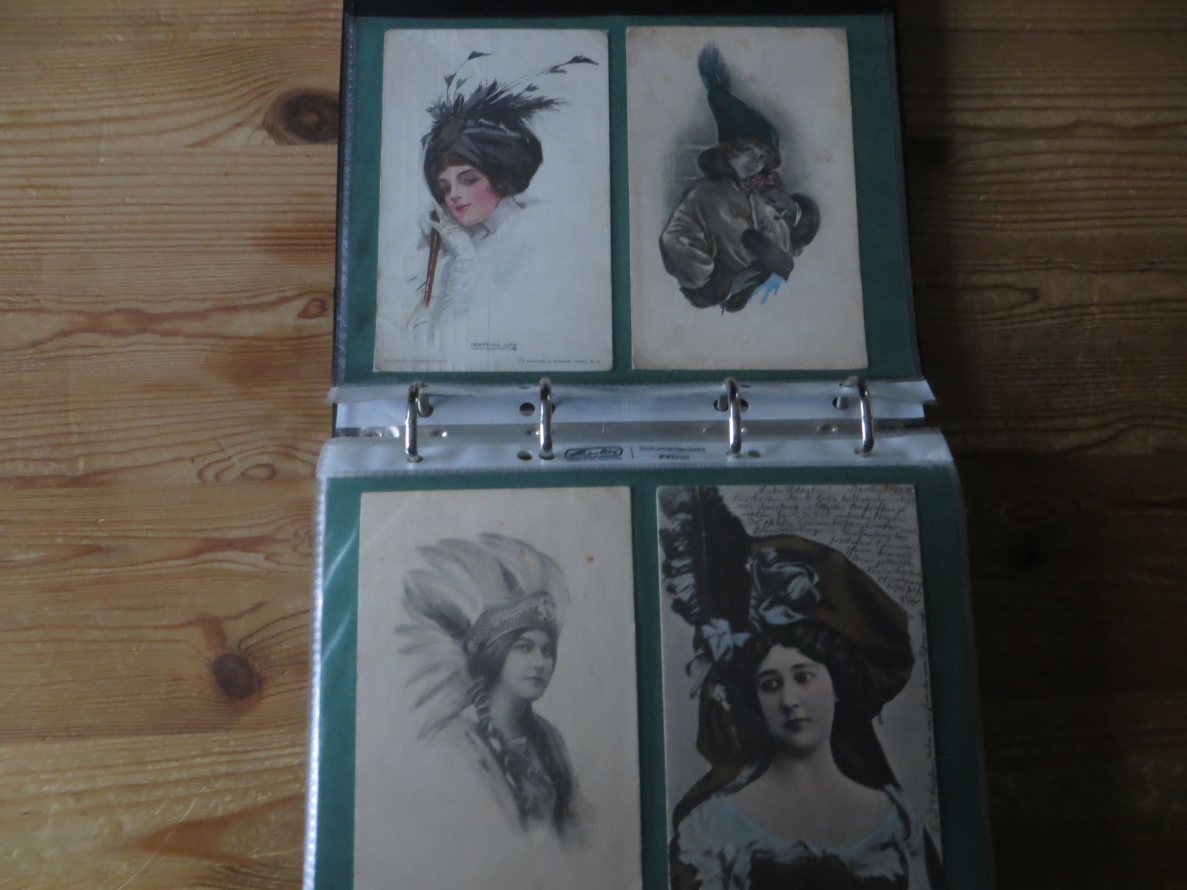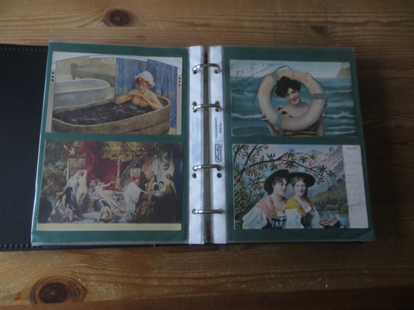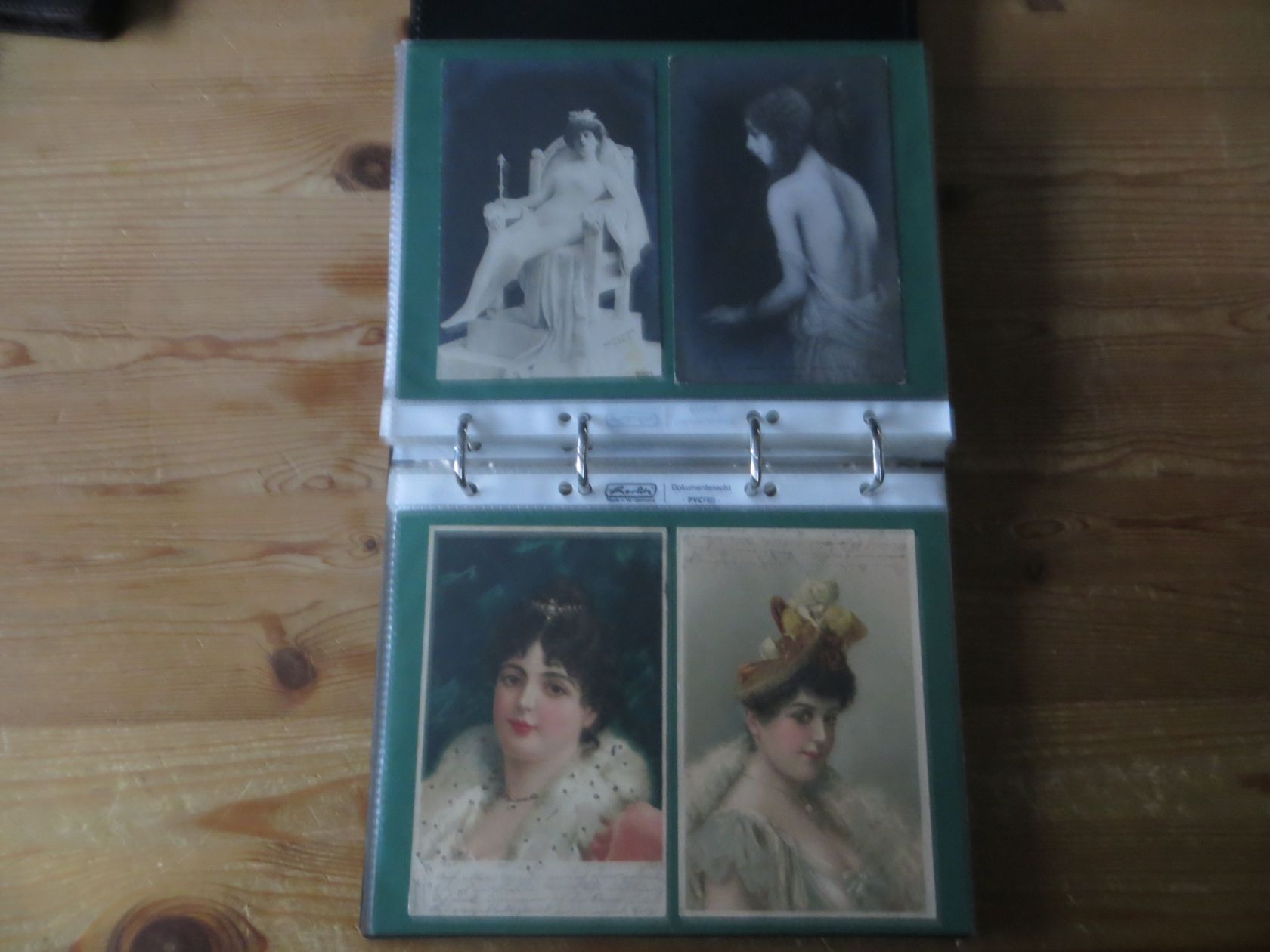 dabei inter. Künstler AK, viel zur Jugendstil - Zeit. Ein Los der besonderen Art, abseits von dem Massenkarten die man sonst zum Thema meist findet. Alles gute Gesamterhaltung und der Sammler hat die Karten sehr sauber mit Fotoecken auf farbigen Karton angelegt. Ein wirklich tolles Objekt! Und wie meist bei uns ohne Entnahmen angeboten!