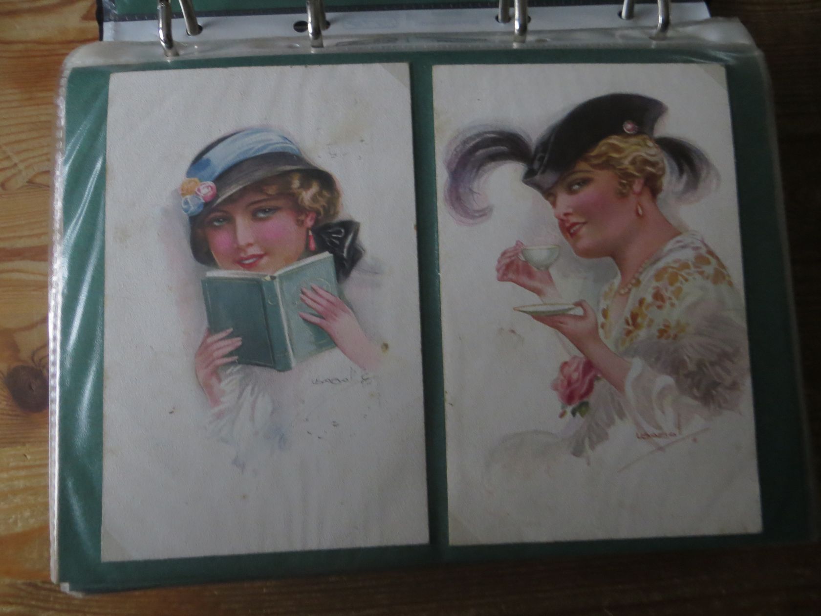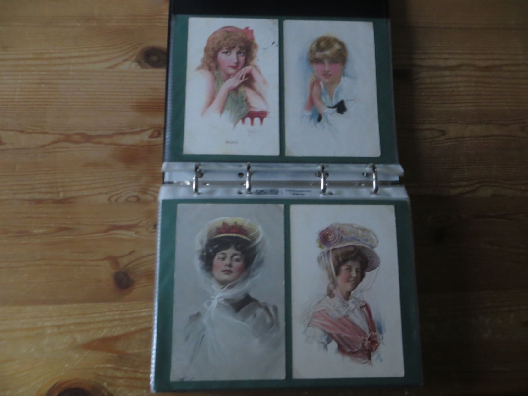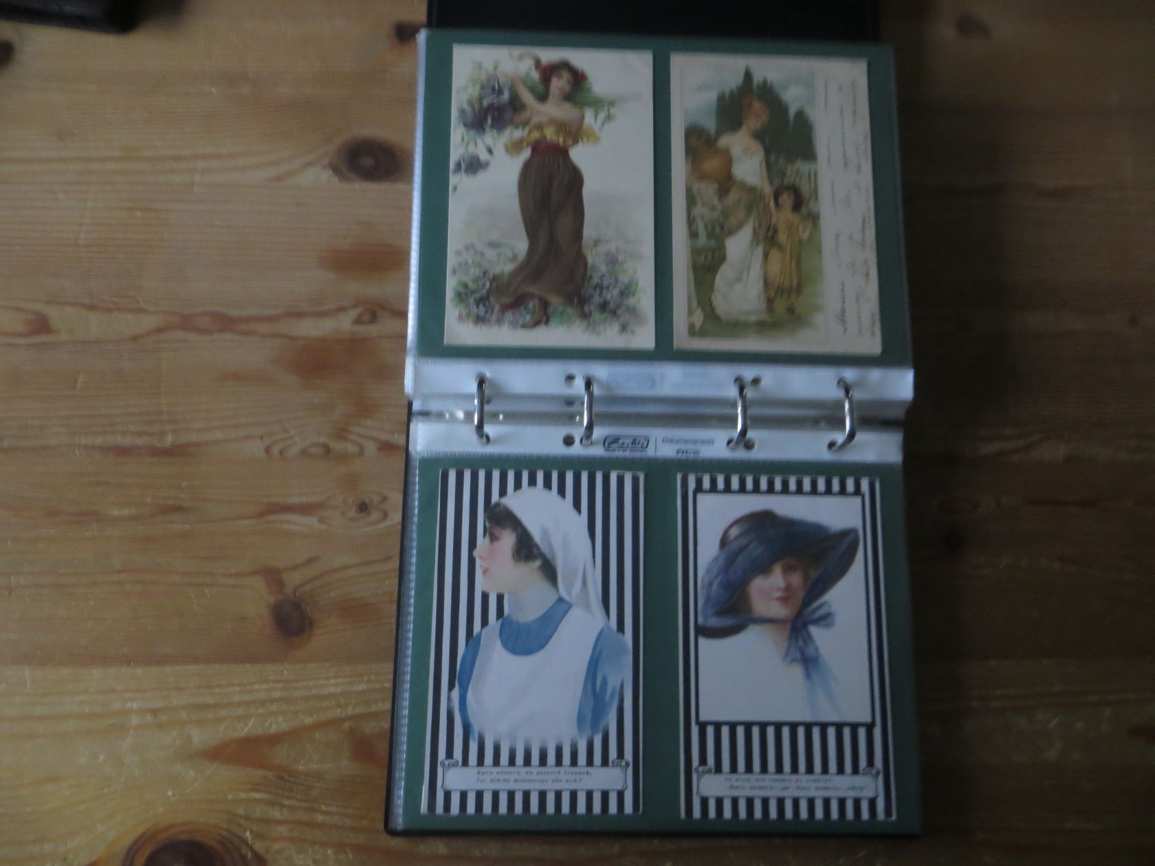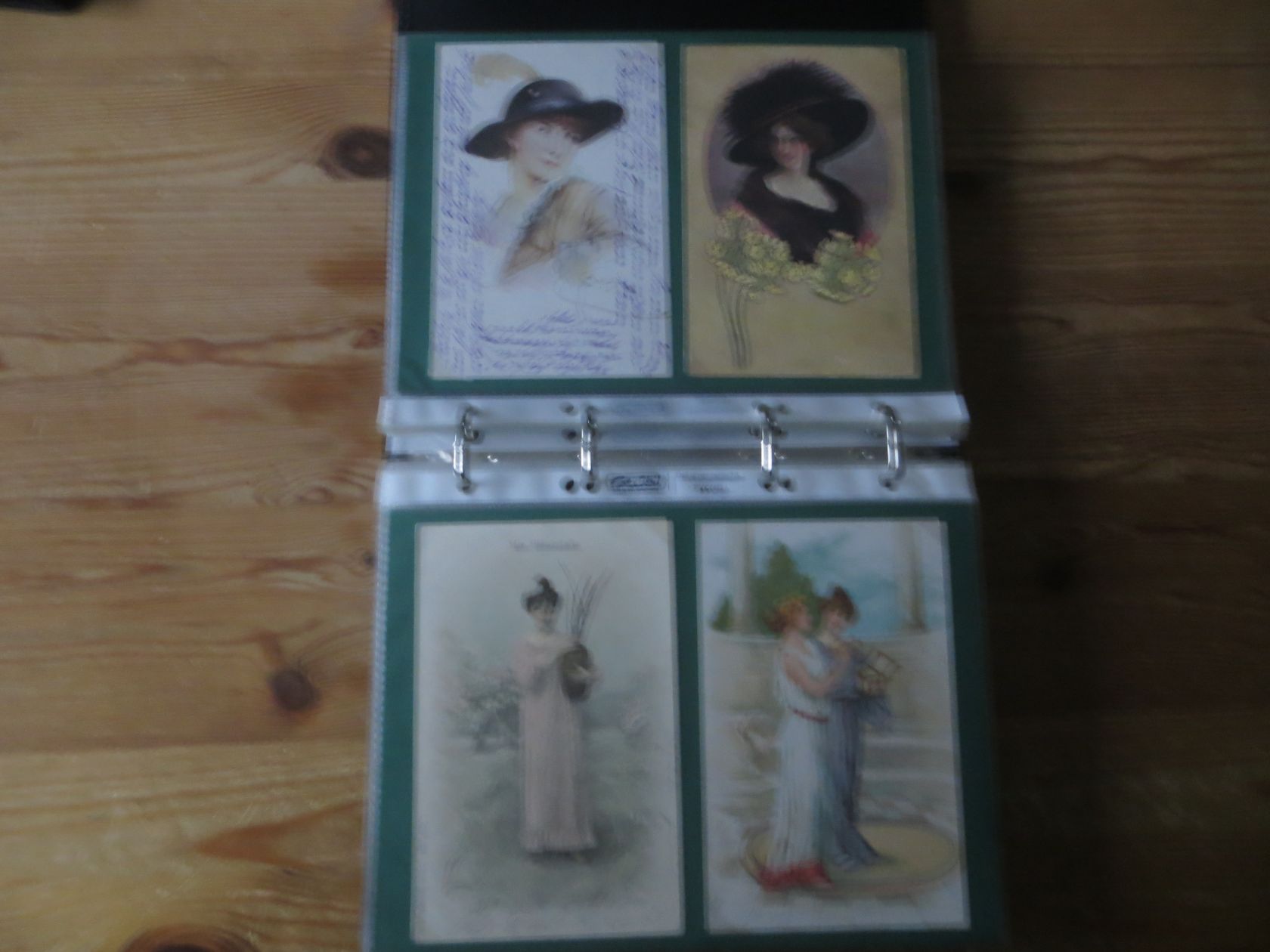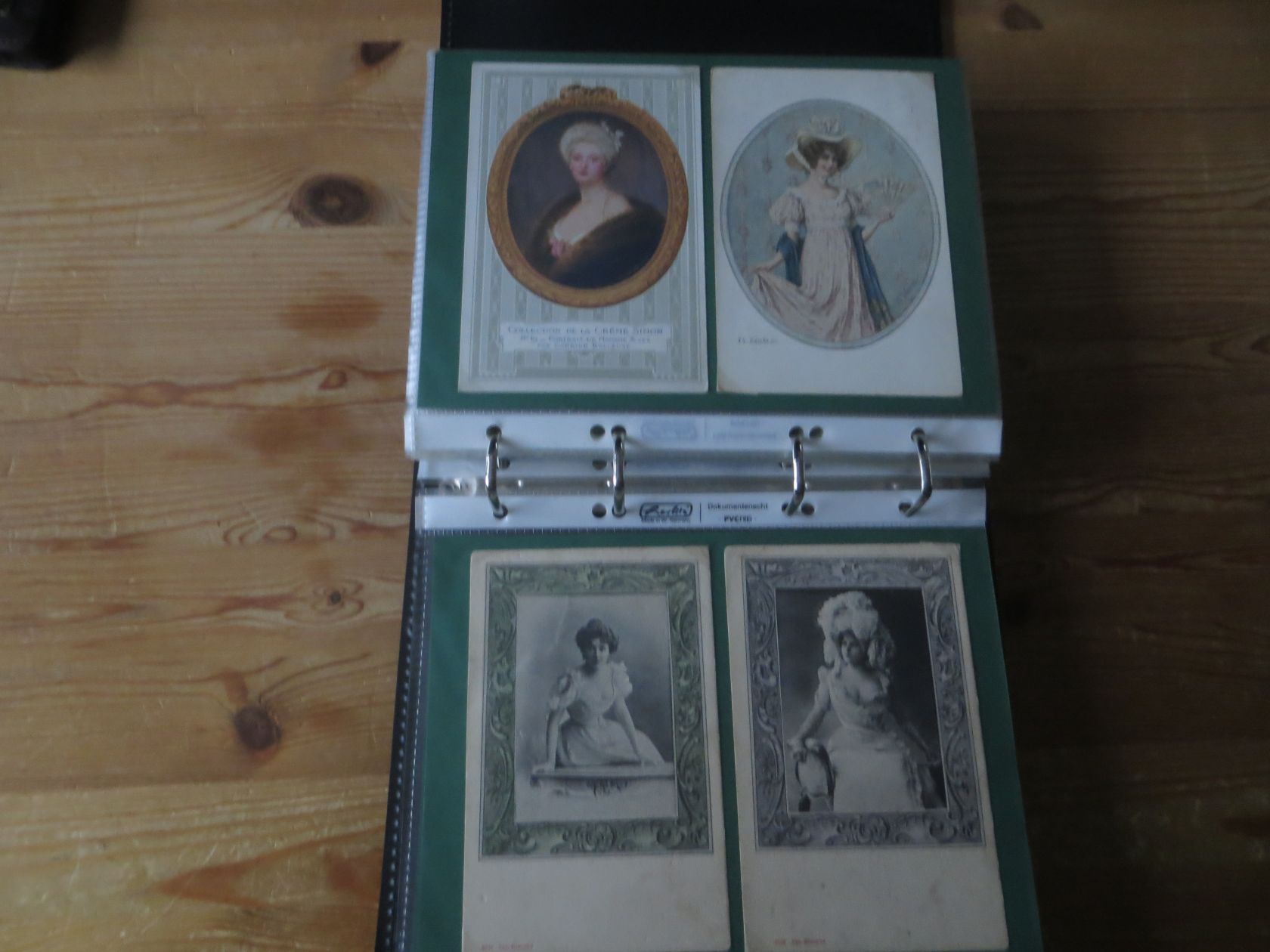 dabei inter. Künstler AK, viel zur Jugendstil - Zeit. Ein Los der besonderen Art, abseits von dem Massenkarten die man sonst zum Thema meist findet. Alles gute Gesamterhaltung und der Sammler hat die Karten sehr sauber mit Fotoecken auf farbigen Karton angelegt. Ein wirklich tolles Objekt! Und wie meist bei uns ohne Entnahmen angeboten!