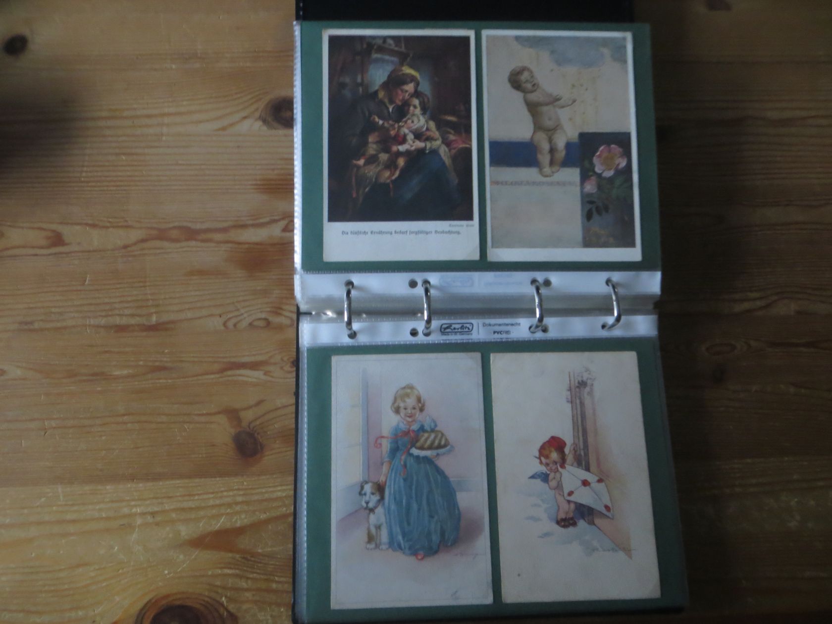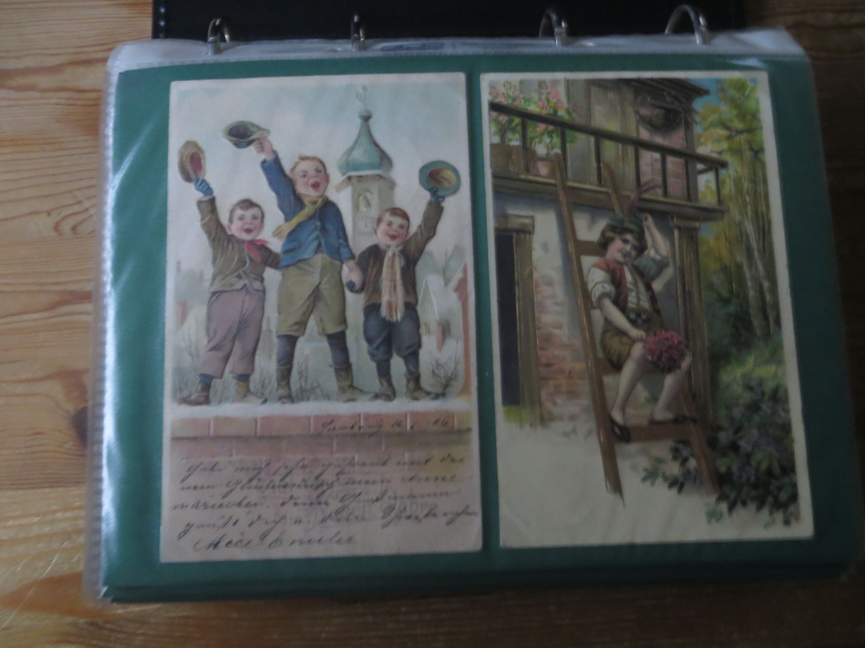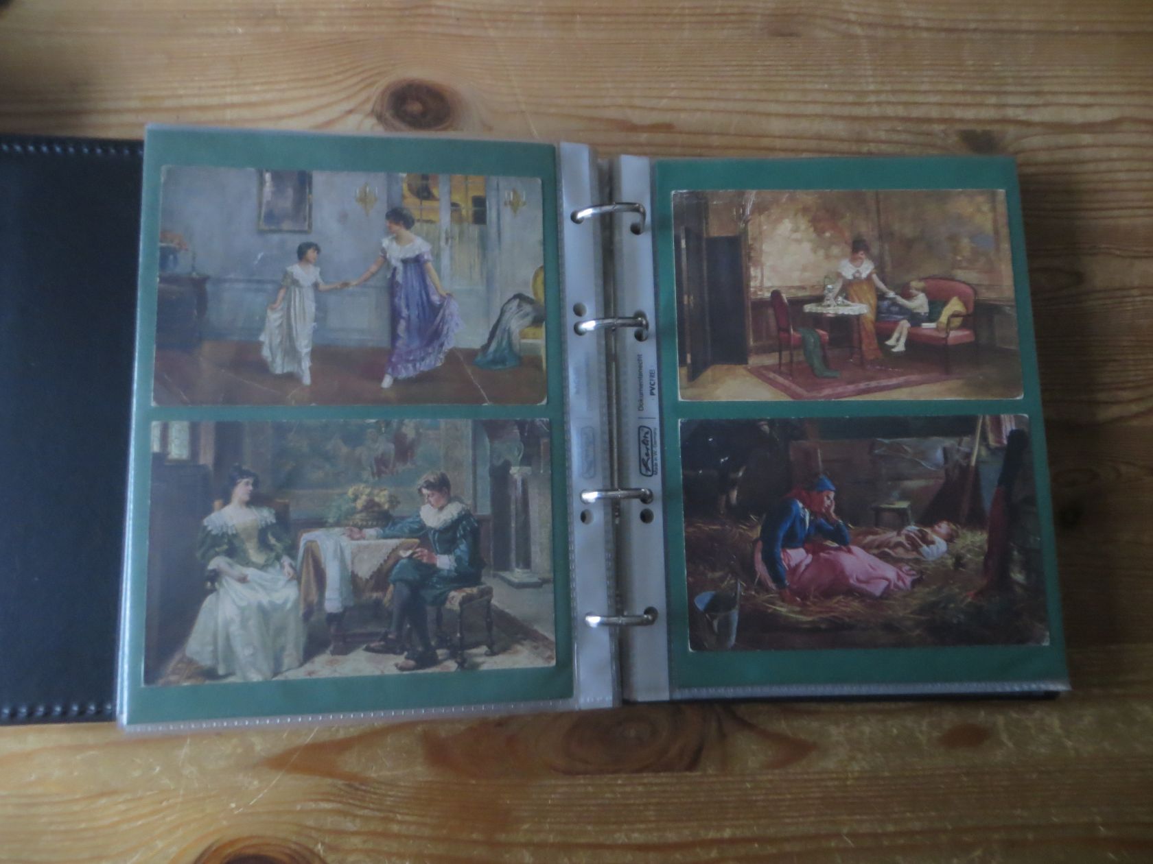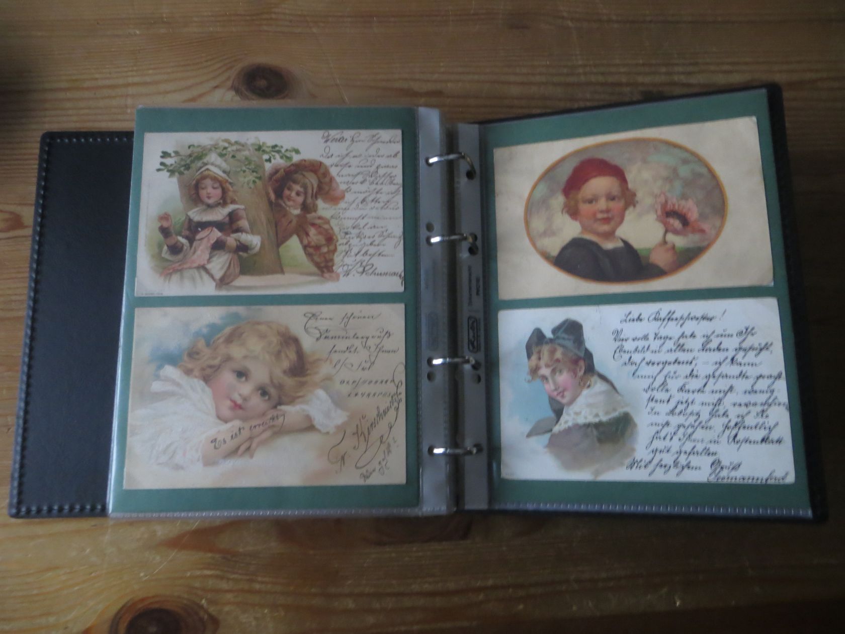 dabei inter. Künstler AK, viel zur Jugendstil - Zeit. Ein Los der besonderen Art, abseits von dem Massenkarten die man sonst zum Thema meist findet. Alles gute Gesamterhaltung und der Sammler hat die Karten sehr sauber mit Fotoecken auf farbigen Karton angelegt. Ein wirklich tolles Objekt! Und wie meist bei uns ohne Entnahmen angeboten!