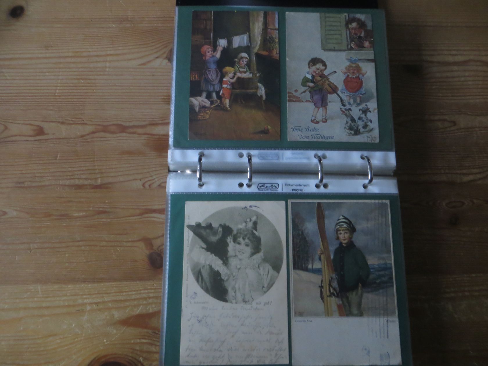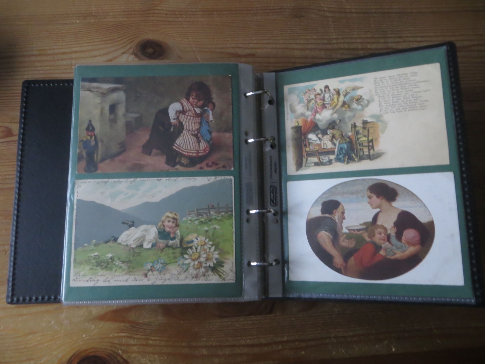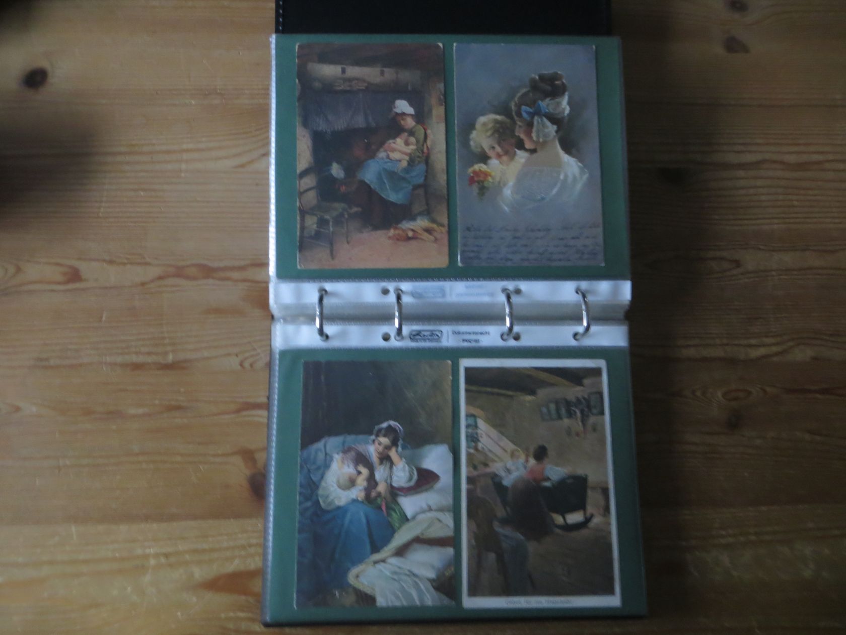 dabei inter. Künstler AK, viel zur Jugendstil - Zeit. Ein Los der besonderen Art, abseits von dem Massenkarten die man sonst zum Thema meist findet. Alles gute Gesamterhaltung und der Sammler hat die Karten sehr sauber mit Fotoecken auf farbigen Karton angelegt. Ein wirklich tolles Objekt! Und wie meist bei uns ohne Entnahmen angeboten!
