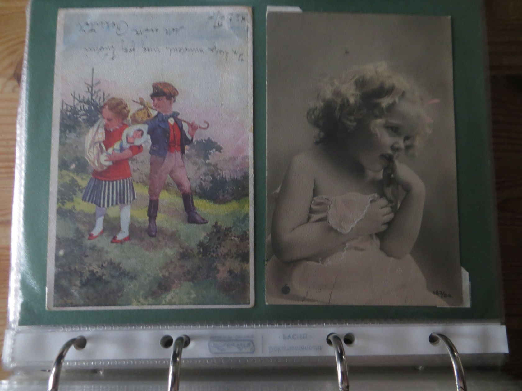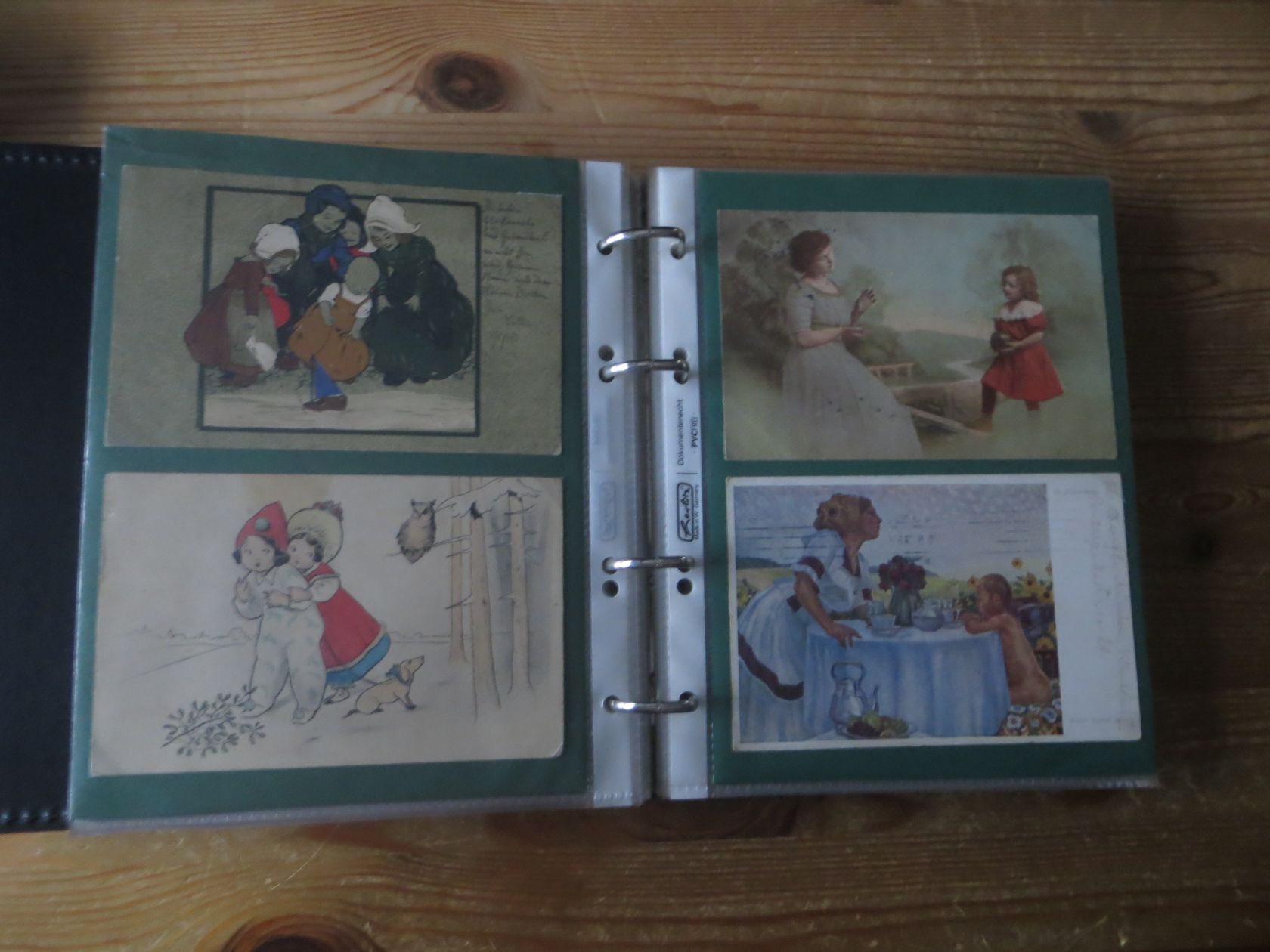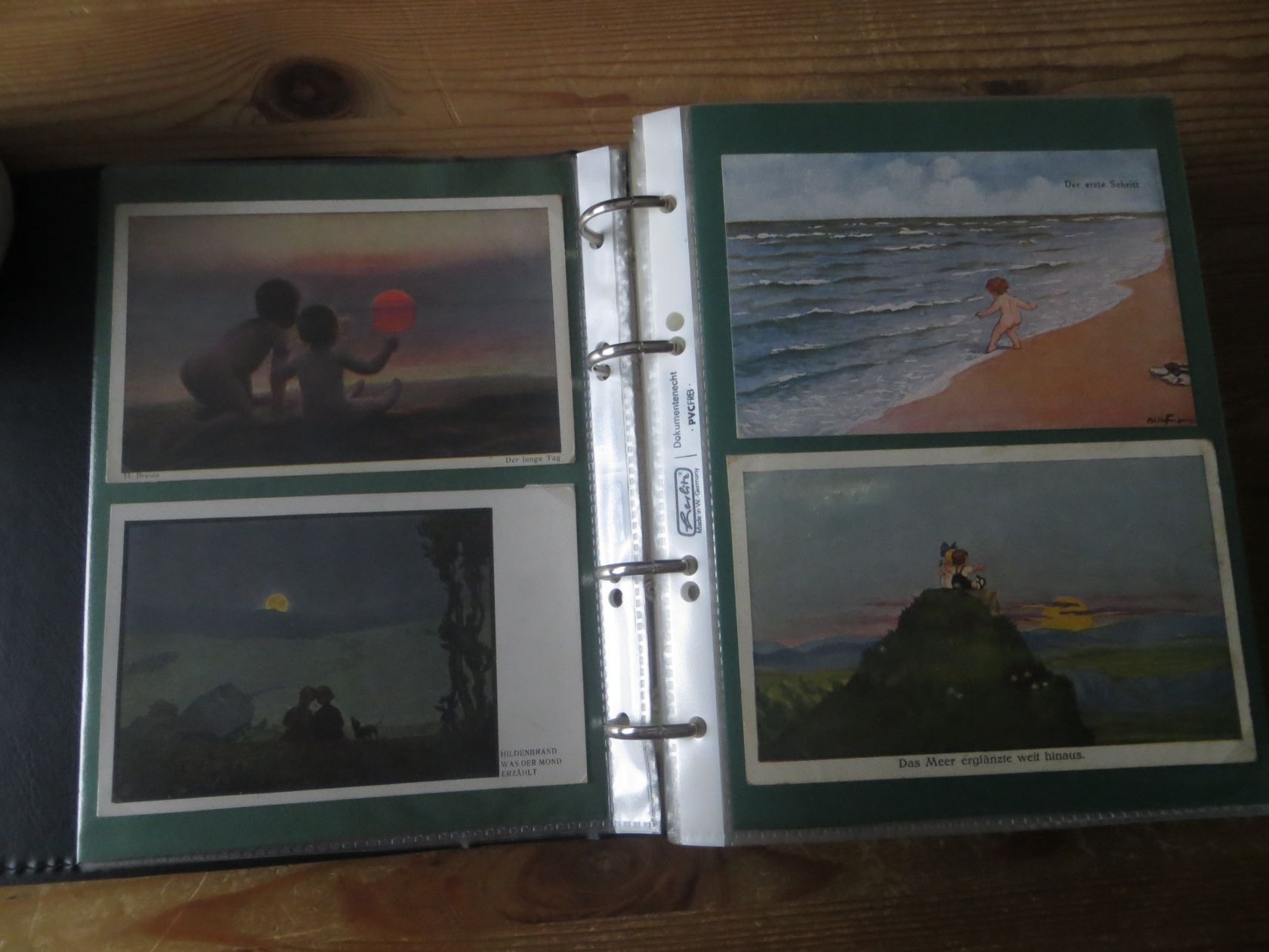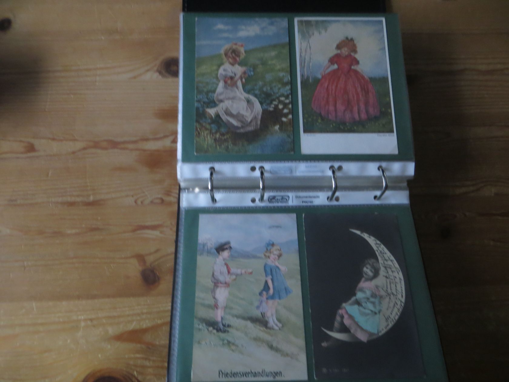 dabei inter. Künstler AK, viel zur Jugendstil - Zeit. Ein Los der besonderen Art, abseits von dem Massenkarten die man sonst zum Thema meist findet. Alles gute Gesamterhaltung und der Sammler hat die Karten sehr sauber mit Fotoecken auf farbigen Karton angelegt. Ein wirklich tolles Objekt! Und wie meist bei uns ohne Entnahmen angeboten!