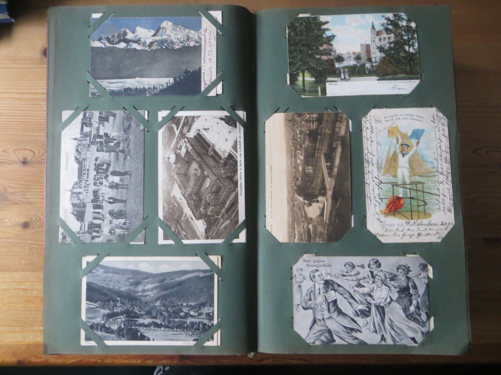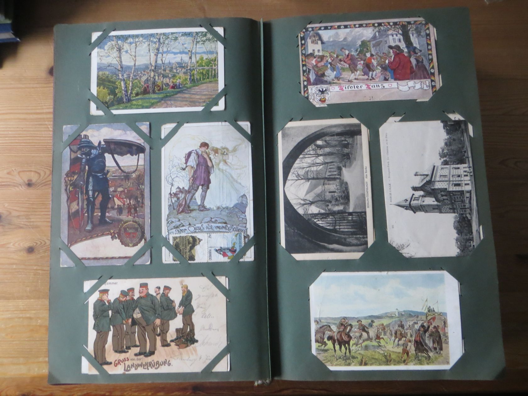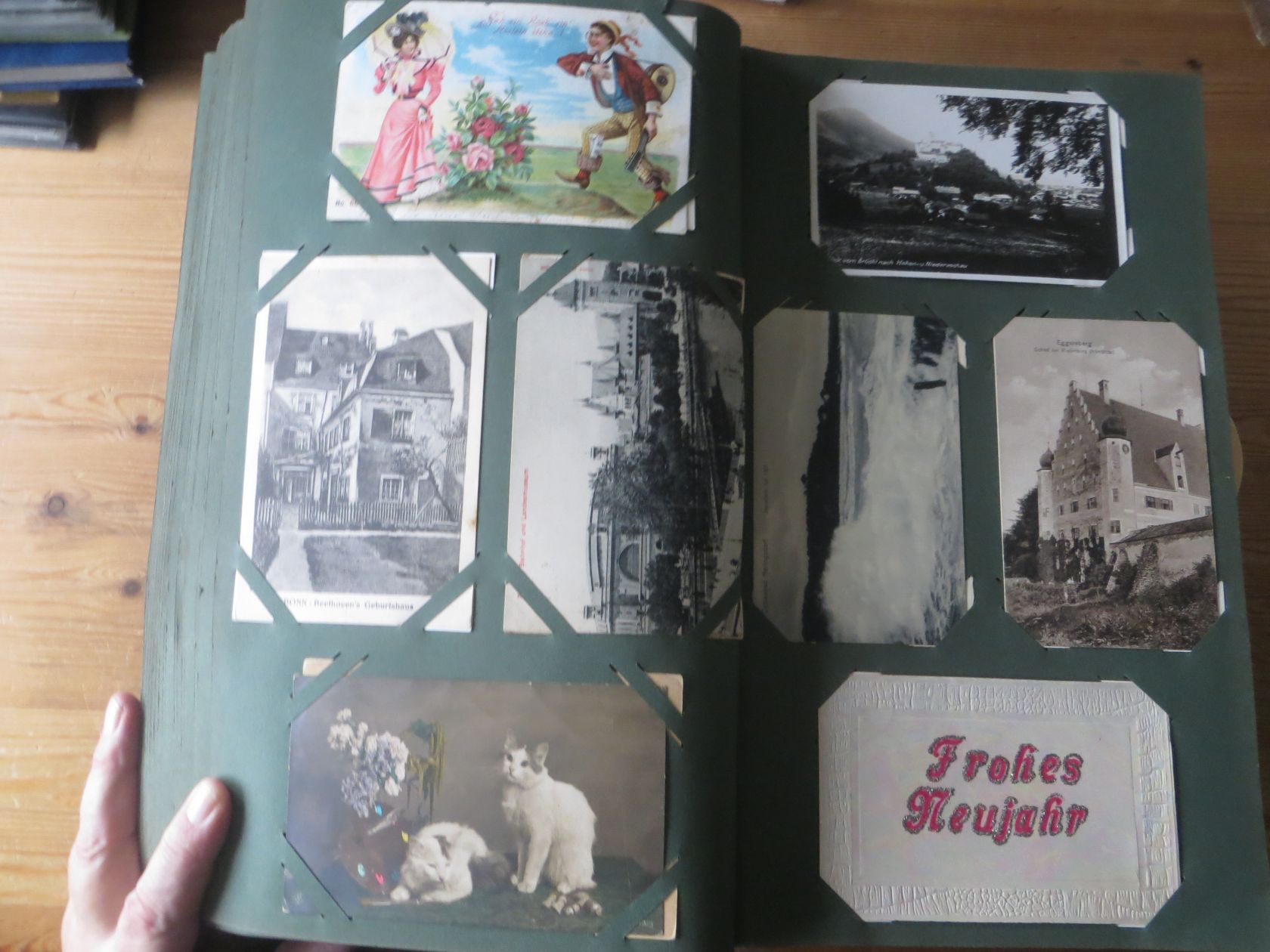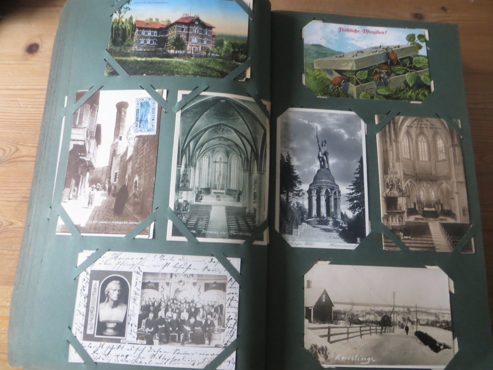 Ein sehr toller Querschnitt, meist aus den ersten 30 Jahren des vorrigen Jahrhunderts. Nur alte Karten aus großem Nachlass! Sehr gute Gesamterhaltung. Das alte Jugendstil - Album ist auch sehr gut erhalten. Das ist bei Alben dieser Schwere sehr ungewöhnlich. Sogar die uralten Laschen und die Bindung sind sehr gut! Hat wohl sein ganzes Leben im geschlossenen Bücherschrank verbracht. Ein sehr seltenes Album! Dünnere Alben aus dieser Zeit haben ja meist diverse Mängel. Ein tolles Ausnahmeobjekt, ideal auch als außergewöhliches Geschenk! Dabei eine ungeheure Vielfalt, mit sehr vielen Künstlerkarten, auch eine schöne Serie, Topographie wohl meist Deutschland. Ein Querschnitt durch Deutschland, und etwas Ausland, wie z.B. einige sehr gute Österreich - Patriotik - Karten, oder winzige Orte in Frankreich ! Einige Karten Weltkrieg Kriege, etc. Ein Album das man eigentlich nicht beschreiben kann, dass muß man sehen. Und so wir haben versucht, für Sie alles abzubilden. Ein klasse Album und in dieser Art sehr seltenes Objekt aus großer Nachlassauflösung! Das können wir in dieser tollen Ausführung in dieser Art nur sehr selten anbieten können. Wann hat man einmal so ein starkes Album, mit so vielen - 1008 - tollen Karten? Wenn man sich die Karten genau betrachtet, dann haben ein großer Teil davon etwas besonderes. Ein tolles Ausnahmeobjekt, pünktlich als Ostergeschenk! Die Karten sind in außergewöhnlich guter Gesamterhaltung! Wohl ohne Ausfall!