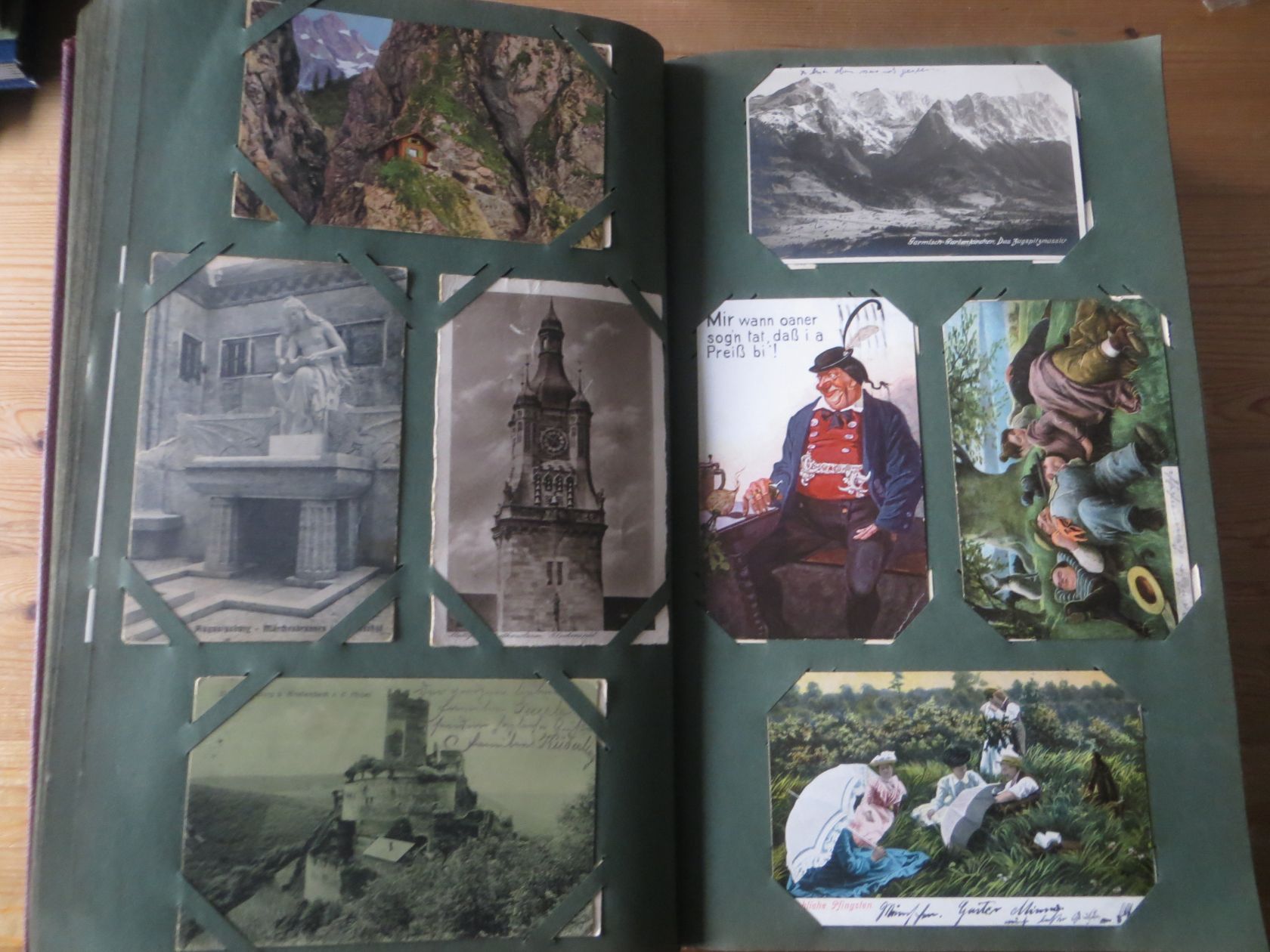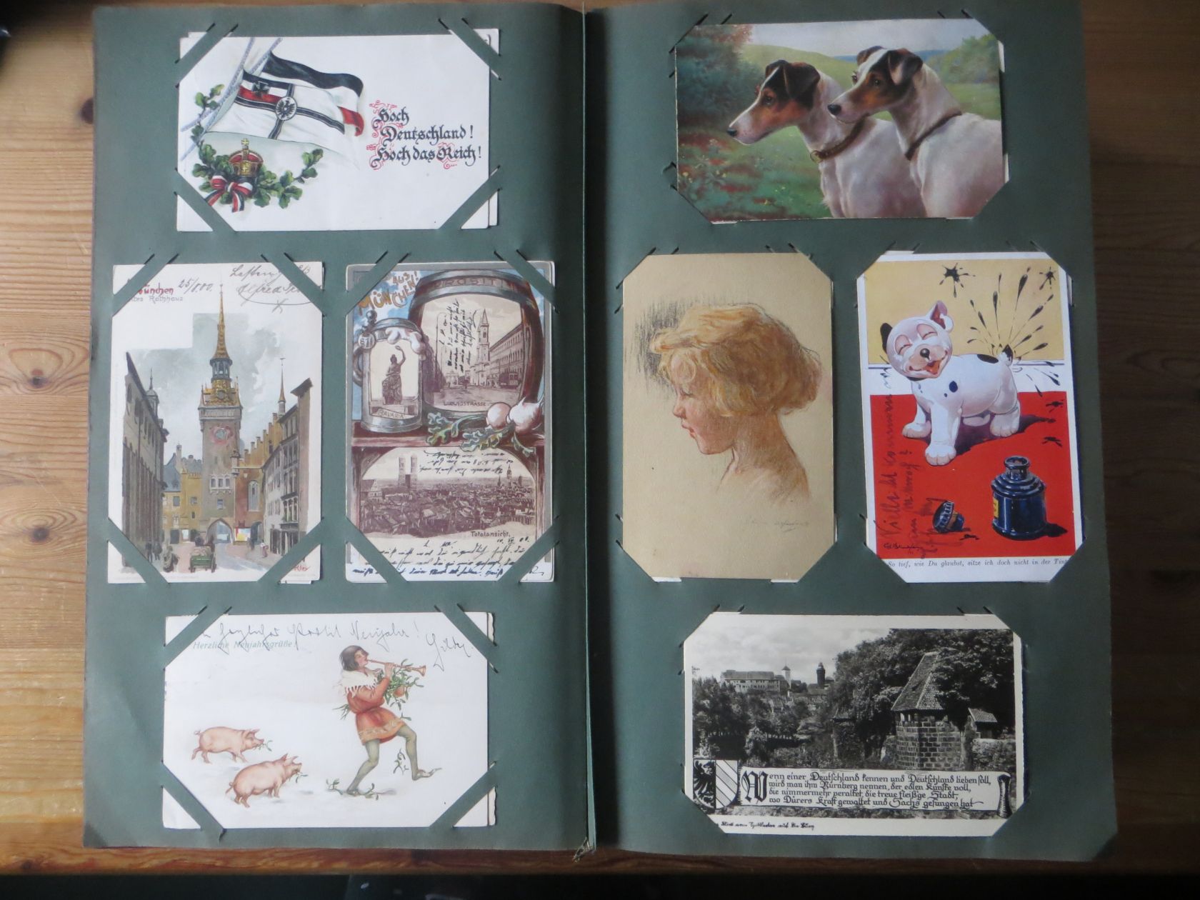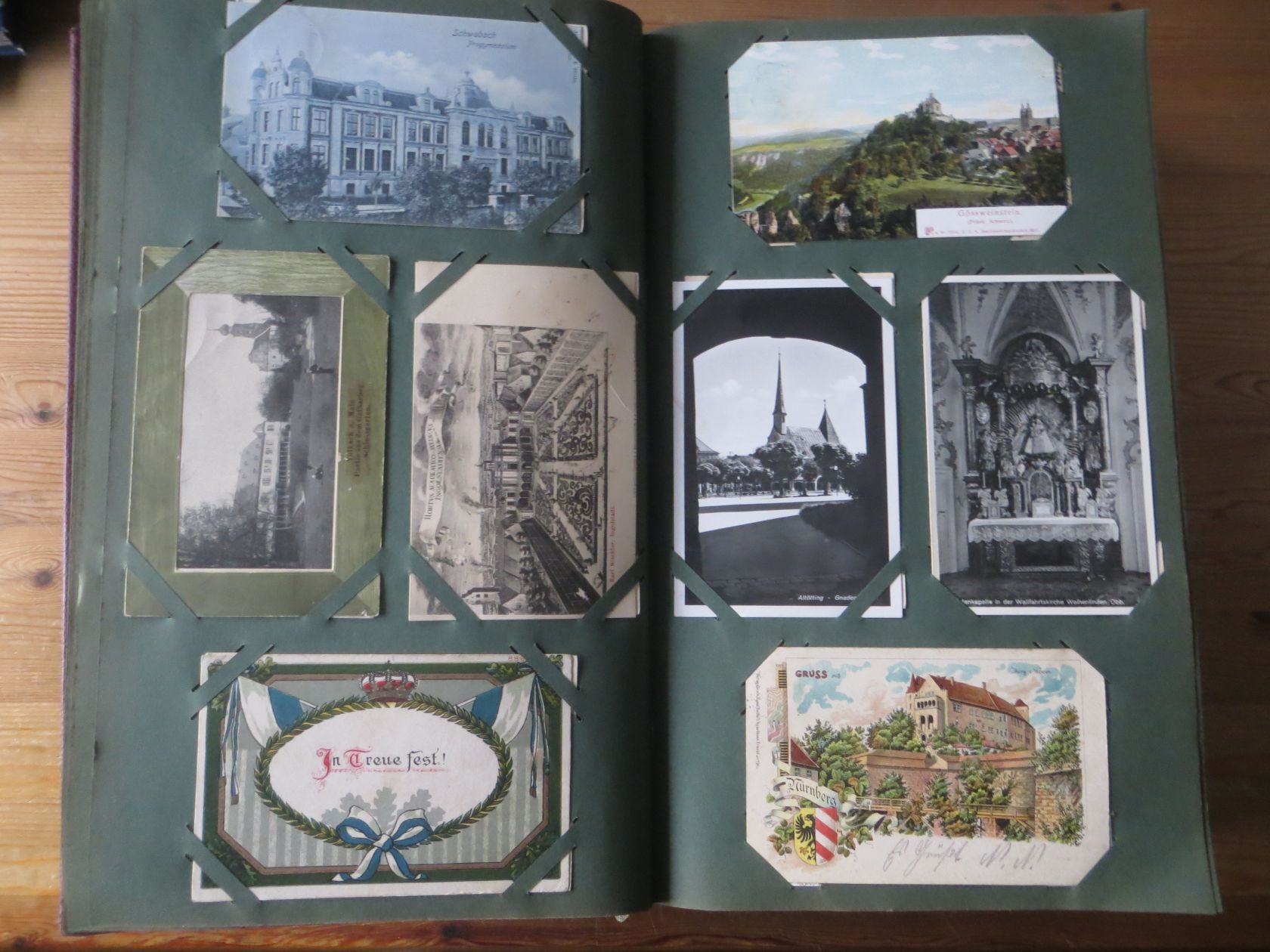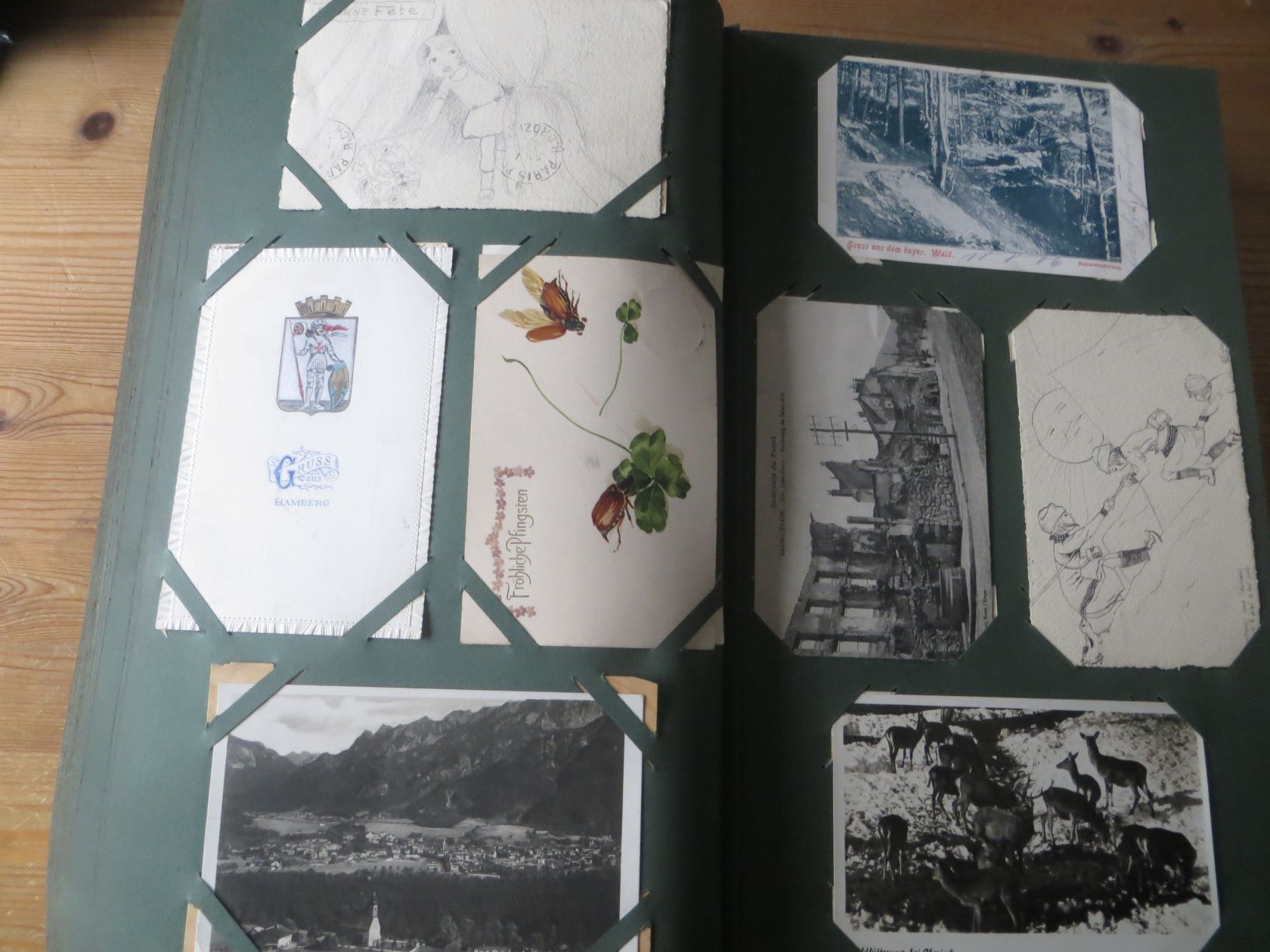 Ein sehr toller Querschnitt, meist aus den ersten 30 Jahren des vorrigen Jahrhunderts. Nur alte Karten aus großem Nachlass! Sehr gute Gesamterhaltung. Das alte Jugendstil - Album ist auch sehr gut erhalten. Das ist bei Alben dieser Schwere sehr ungewöhnlich. Sogar die uralten Laschen und die Bindung sind sehr gut! Hat wohl sein ganzes Leben im geschlossenen Bücherschrank verbracht. Ein sehr seltenes Album! Dünnere Alben aus dieser Zeit haben ja meist diverse Mängel. Ein tolles Ausnahmeobjekt, ideal auch als außergewöhliches Geschenk! Dabei eine ungeheure Vielfalt, mit sehr vielen Künstlerkarten, auch eine schöne Serie, Topographie wohl meist Deutschland. Ein Querschnitt durch Deutschland, und etwas Ausland, wie z.B. einige sehr gute Österreich - Patriotik - Karten, oder winzige Orte in Frankreich ! Einige Karten Weltkrieg Kriege, etc. Ein Album das man eigentlich nicht beschreiben kann, dass muß man sehen. Und so wir haben versucht, für Sie alles abzubilden. Ein klasse Album und in dieser Art sehr seltenes Objekt aus großer Nachlassauflösung! Das können wir in dieser tollen Ausführung in dieser Art nur sehr selten anbieten können. Wann hat man einmal so ein starkes Album, mit so vielen - 1008 - tollen Karten? Wenn man sich die Karten genau betrachtet, dann haben ein großer Teil davon etwas besonderes. Ein tolles Ausnahmeobjekt, pünktlich als Ostergeschenk! Die Karten sind in außergewöhnlich guter Gesamterhaltung! Wohl ohne Ausfall!