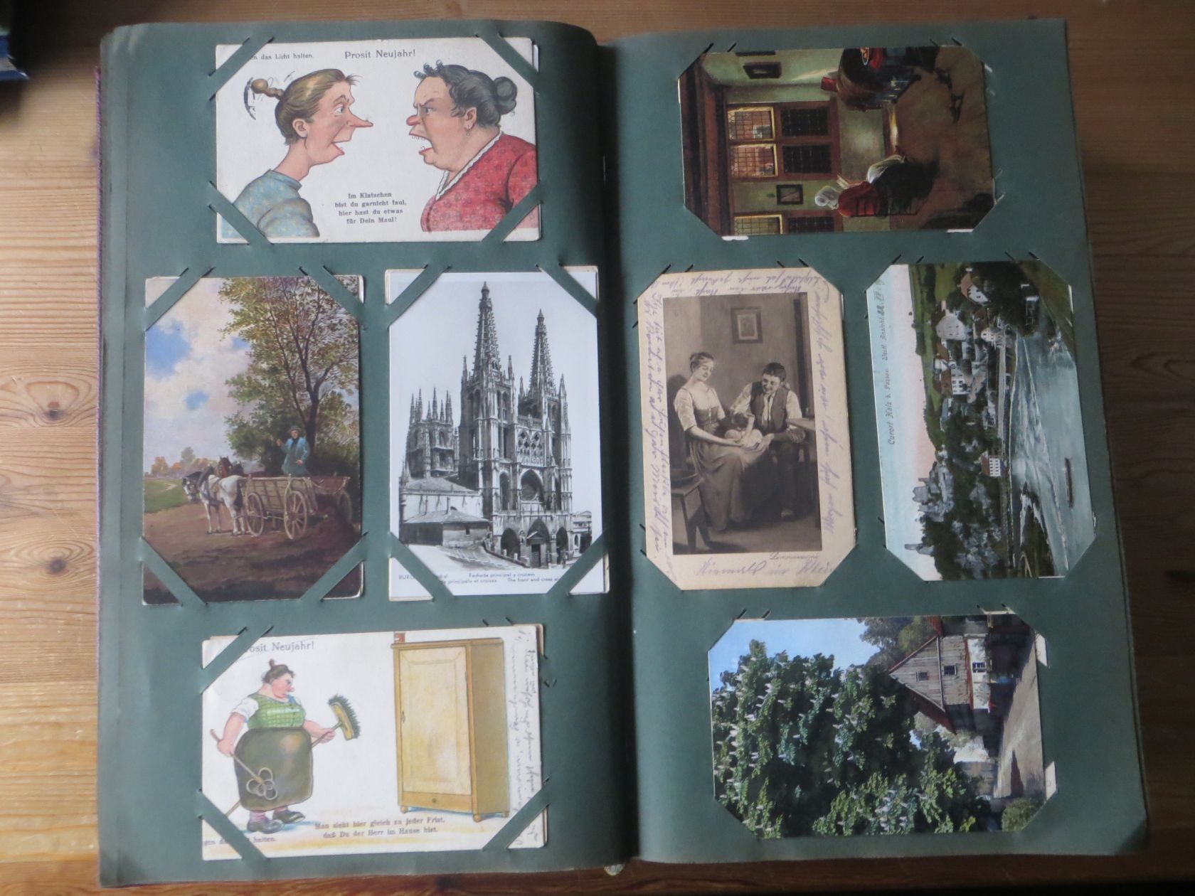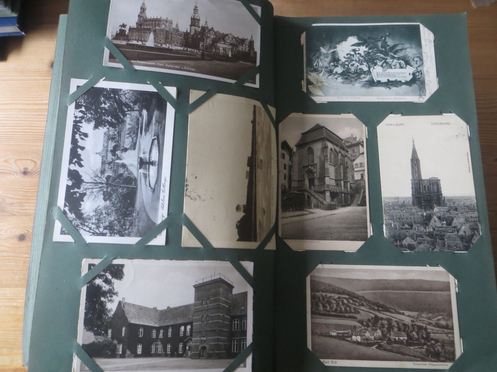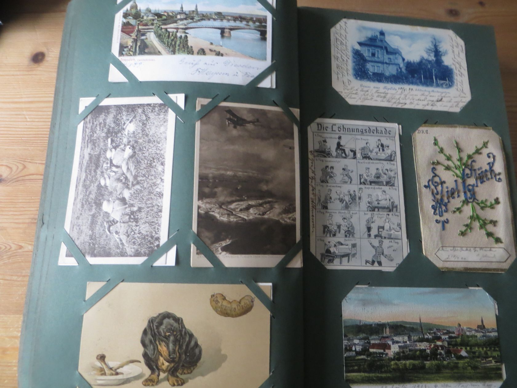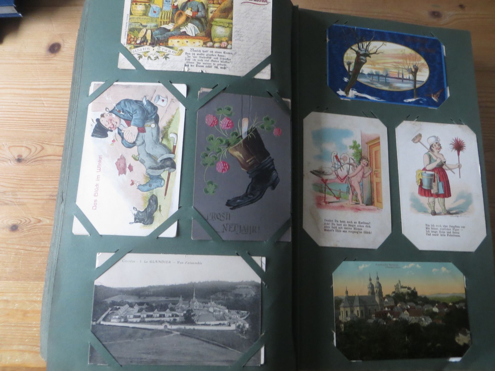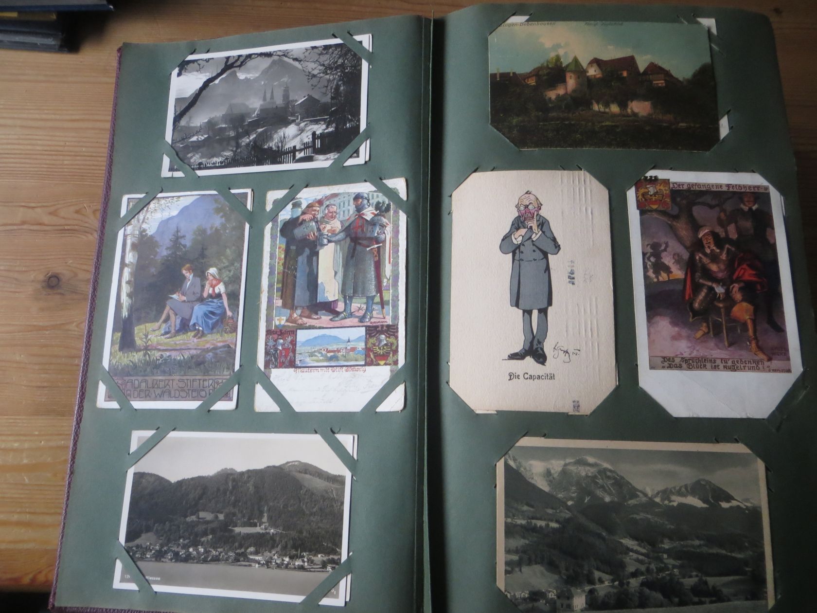 Ein sehr toller Querschnitt, meist aus den ersten 30 Jahren des vorrigen Jahrhunderts. Nur alte Karten aus großem Nachlass! Sehr gute Gesamterhaltung. Das alte Jugendstil - Album ist auch sehr gut erhalten. Das ist bei Alben dieser Schwere sehr ungewöhnlich. Sogar die uralten Laschen und die Bindung sind sehr gut! Hat wohl sein ganzes Leben im geschlossenen Bücherschrank verbracht. Ein sehr seltenes Album! Dünnere Alben aus dieser Zeit haben ja meist diverse Mängel. Ein tolles Ausnahmeobjekt, ideal auch als außergewöhliches Geschenk! Dabei eine ungeheure Vielfalt, mit sehr vielen Künstlerkarten, auch eine schöne Serie, Topographie wohl meist Deutschland. Ein Querschnitt durch Deutschland, und etwas Ausland, wie z.B. einige sehr gute Österreich - Patriotik - Karten, oder winzige Orte in Frankreich ! Einige Karten Weltkrieg Kriege, etc. Ein Album das man eigentlich nicht beschreiben kann, dass muß man sehen. Und so wir haben versucht, für Sie alles abzubilden. Ein klasse Album und in dieser Art sehr seltenes Objekt aus großer Nachlassauflösung! Das können wir in dieser tollen Ausführung in dieser Art nur sehr selten anbieten können. Wann hat man einmal so ein starkes Album, mit so vielen - 1008 - tollen Karten? Wenn man sich die Karten genau betrachtet, dann haben ein großer Teil davon etwas besonderes. Ein tolles Ausnahmeobjekt, pünktlich als Ostergeschenk! Die Karten sind in außergewöhnlich guter Gesamterhaltung! Wohl ohne Ausfall!