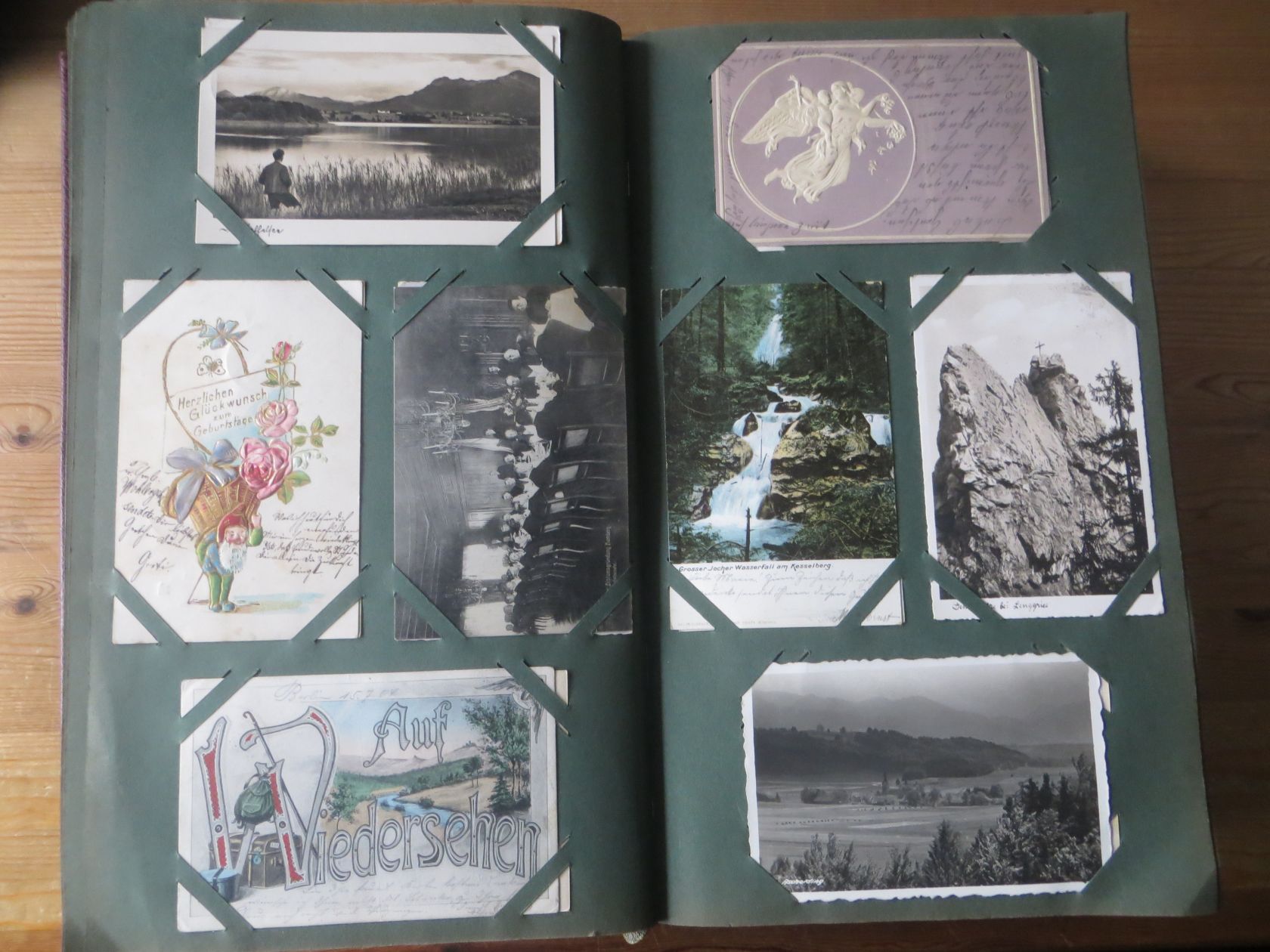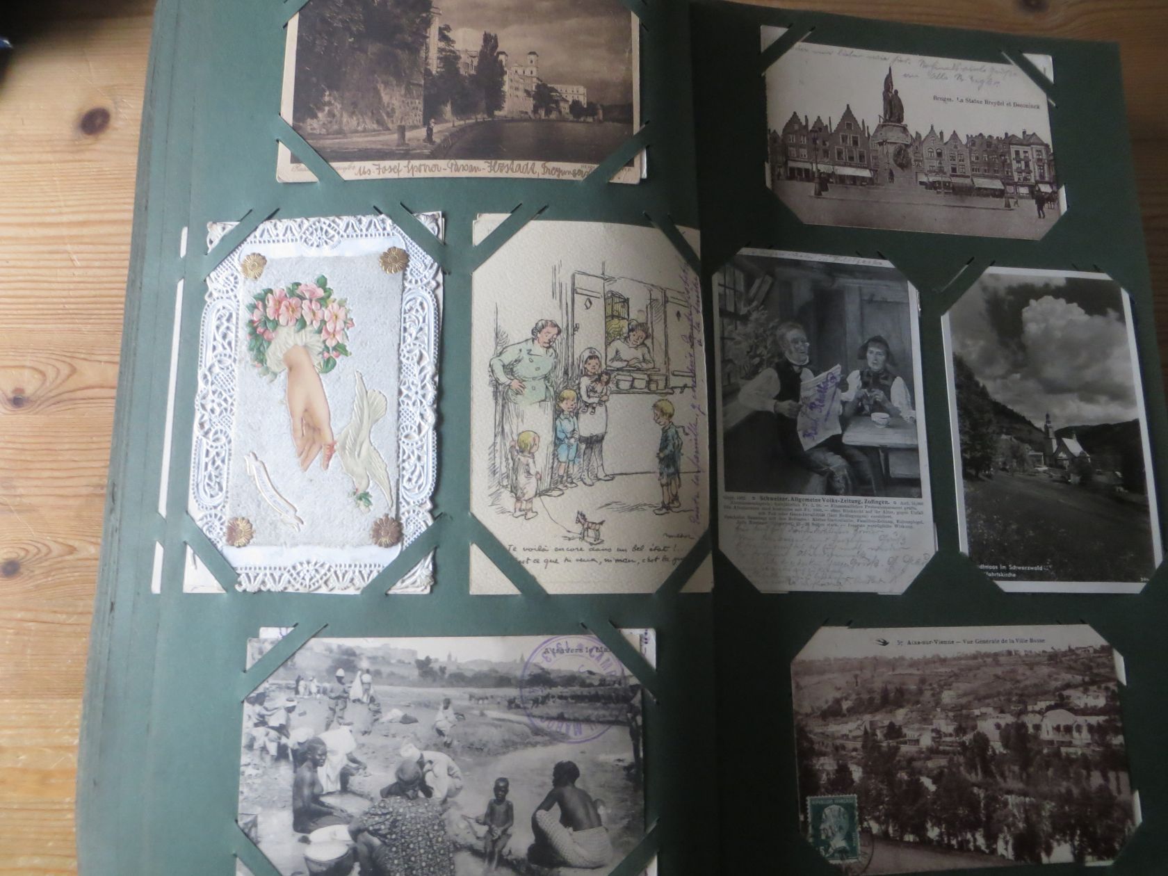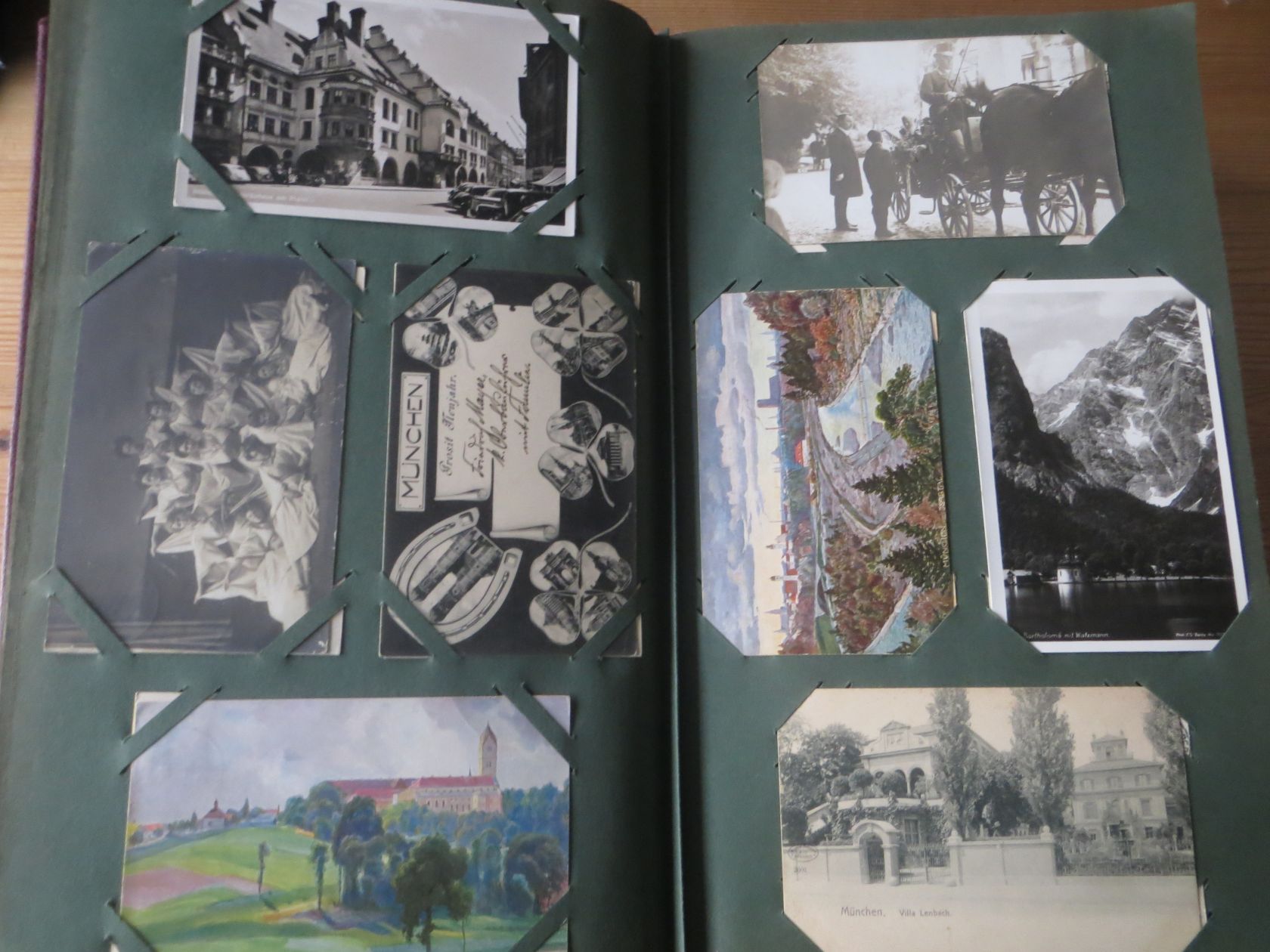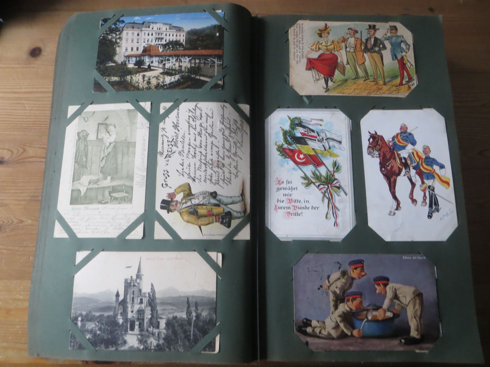 Ein sehr toller Querschnitt, meist aus den ersten 30 Jahren des vorrigen Jahrhunderts. Nur alte Karten aus großem Nachlass! Sehr gute Gesamterhaltung. Das alte Jugendstil - Album ist auch sehr gut erhalten. Das ist bei Alben dieser Schwere sehr ungewöhnlich. Sogar die uralten Laschen und die Bindung sind sehr gut! Hat wohl sein ganzes Leben im geschlossenen Bücherschrank verbracht. Ein sehr seltenes Album! Dünnere Alben aus dieser Zeit haben ja meist diverse Mängel. Ein tolles Ausnahmeobjekt, ideal auch als außergewöhliches Geschenk! Dabei eine ungeheure Vielfalt, mit sehr vielen Künstlerkarten, auch eine schöne Serie, Topographie wohl meist Deutschland. Ein Querschnitt durch Deutschland, und etwas Ausland, wie z.B. einige sehr gute Österreich - Patriotik - Karten, oder winzige Orte in Frankreich ! Einige Karten Weltkrieg Kriege, etc. Ein Album das man eigentlich nicht beschreiben kann, dass muß man sehen. Und so wir haben versucht, für Sie alles abzubilden. Ein klasse Album und in dieser Art sehr seltenes Objekt aus großer Nachlassauflösung! Das können wir in dieser tollen Ausführung in dieser Art nur sehr selten anbieten können. Wann hat man einmal so ein starkes Album, mit so vielen - 1008 - tollen Karten? Wenn man sich die Karten genau betrachtet, dann haben ein großer Teil davon etwas besonderes. Ein tolles Ausnahmeobjekt, pünktlich als Ostergeschenk! Die Karten sind in außergewöhnlich guter Gesamterhaltung! Wohl ohne Ausfall!
