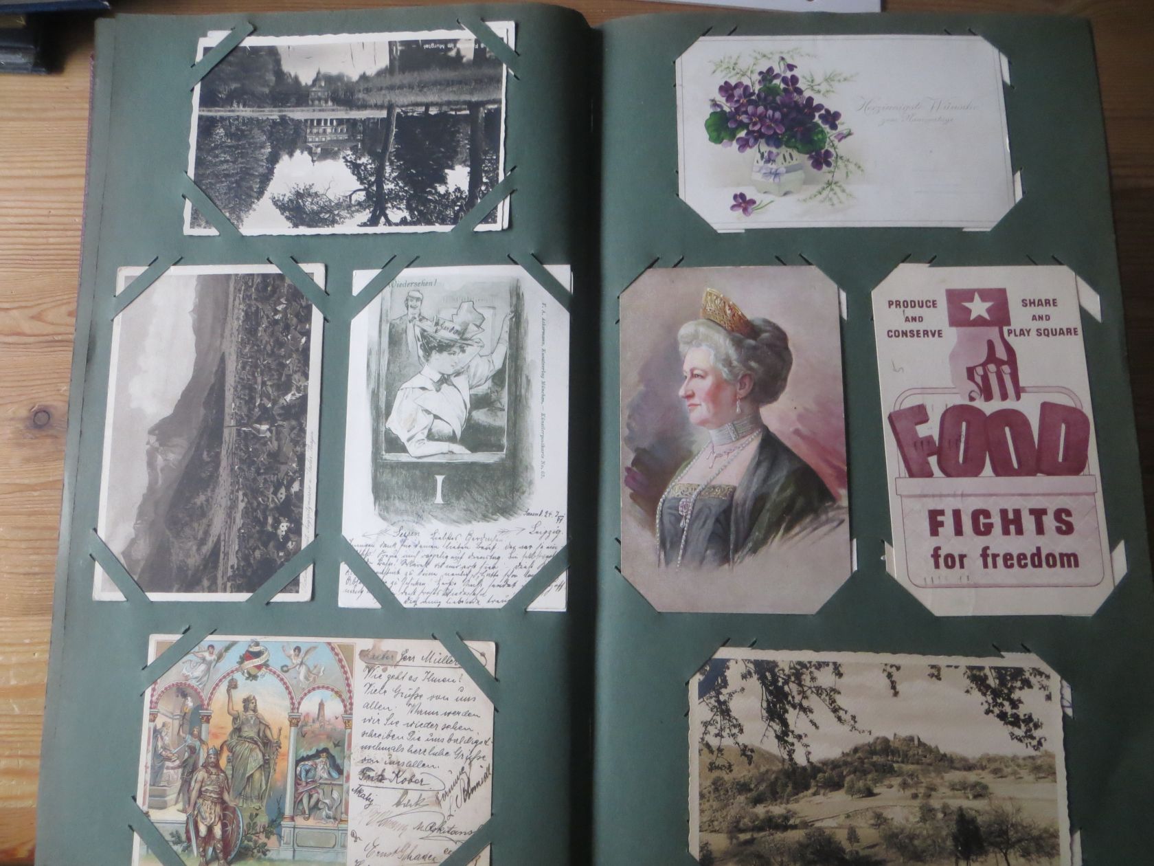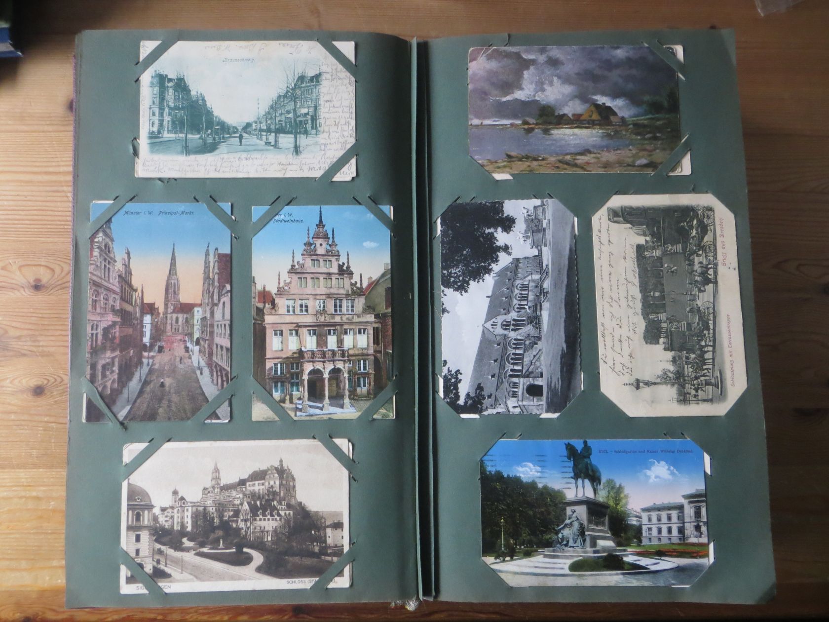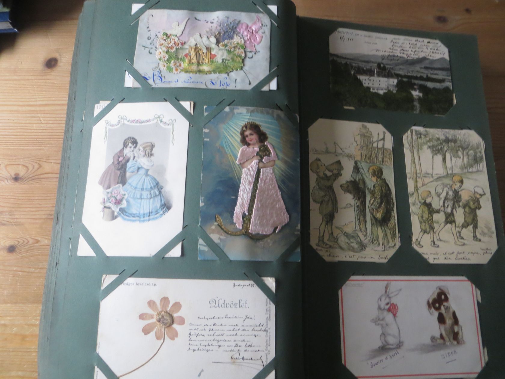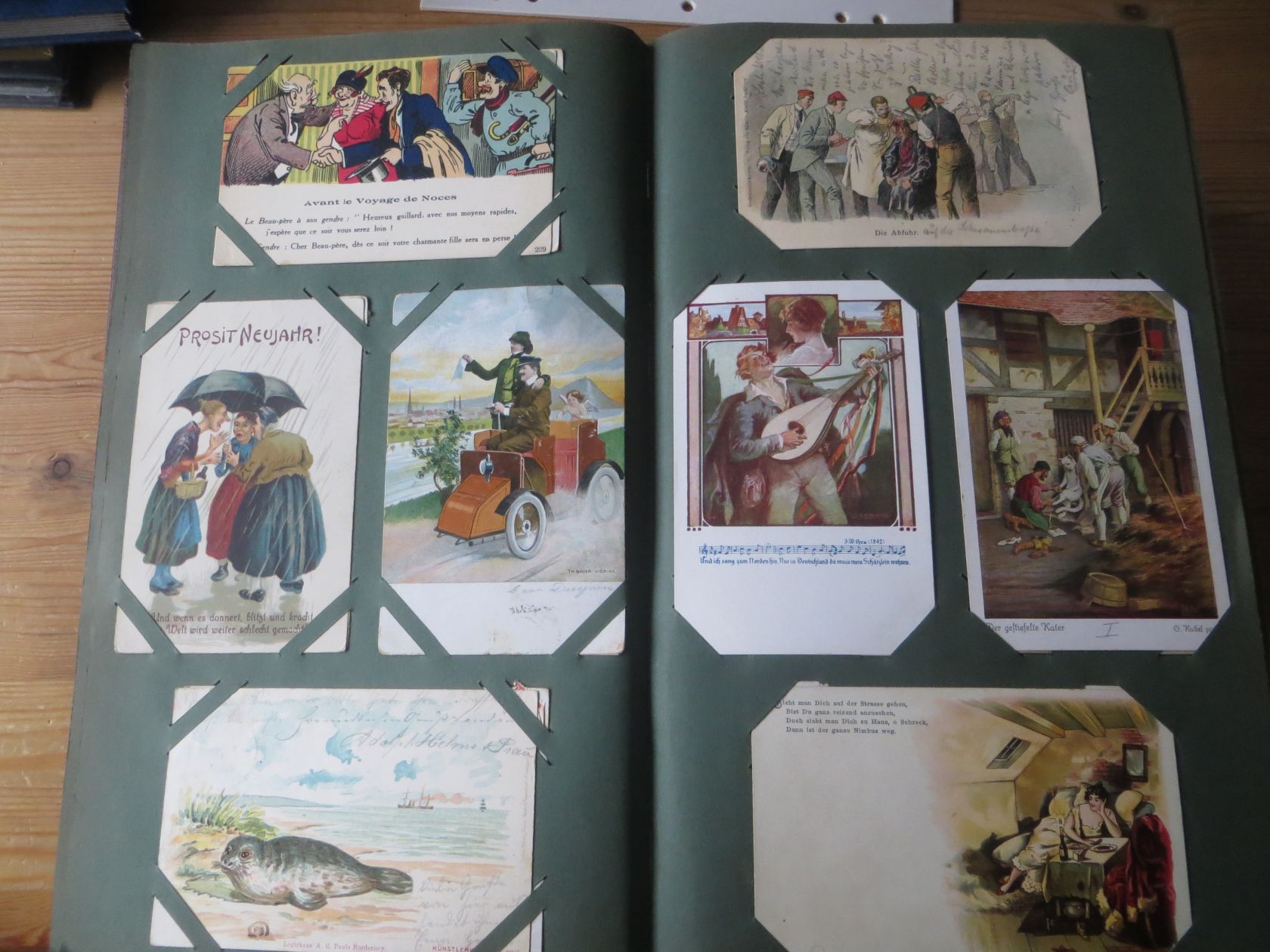 Ein sehr toller Querschnitt, meist aus den ersten 30 Jahren des vorrigen Jahrhunderts. Nur alte Karten aus großem Nachlass! Sehr gute Gesamterhaltung. Das alte Jugendstil - Album ist auch sehr gut erhalten. Das ist bei Alben dieser Schwere sehr ungewöhnlich. Sogar die uralten Laschen und die Bindung sind sehr gut! Hat wohl sein ganzes Leben im geschlossenen Bücherschrank verbracht. Ein sehr seltenes Album! Dünnere Alben aus dieser Zeit haben ja meist diverse Mängel. Ein tolles Ausnahmeobjekt, ideal auch als außergewöhliches Geschenk! Dabei eine ungeheure Vielfalt, mit sehr vielen Künstlerkarten, auch eine schöne Serie, Topographie wohl meist Deutschland. Ein Querschnitt durch Deutschland, und etwas Ausland, wie z.B. einige sehr gute Österreich - Patriotik - Karten, oder winzige Orte in Frankreich ! Einige Karten Weltkrieg Kriege, etc. Ein Album das man eigentlich nicht beschreiben kann, dass muß man sehen. Und so wir haben versucht, für Sie alles abzubilden. Ein klasse Album und in dieser Art sehr seltenes Objekt aus großer Nachlassauflösung! Das können wir in dieser tollen Ausführung in dieser Art nur sehr selten anbieten können. Wann hat man einmal so ein starkes Album, mit so vielen - 1008 - tollen Karten? Wenn man sich die Karten genau betrachtet, dann haben ein großer Teil davon etwas besonderes. Ein tolles Ausnahmeobjekt, pünktlich als Ostergeschenk! Die Karten sind in außergewöhnlich guter Gesamterhaltung! Wohl ohne Ausfall!