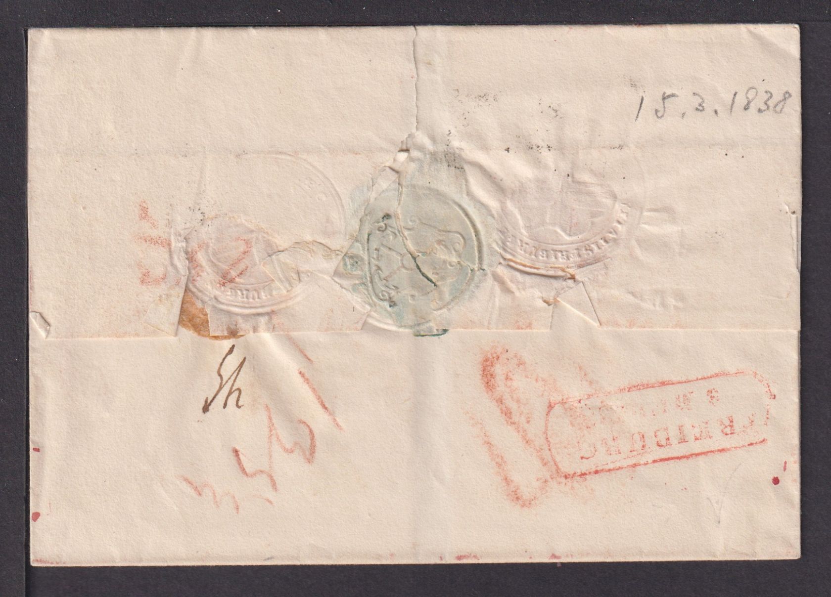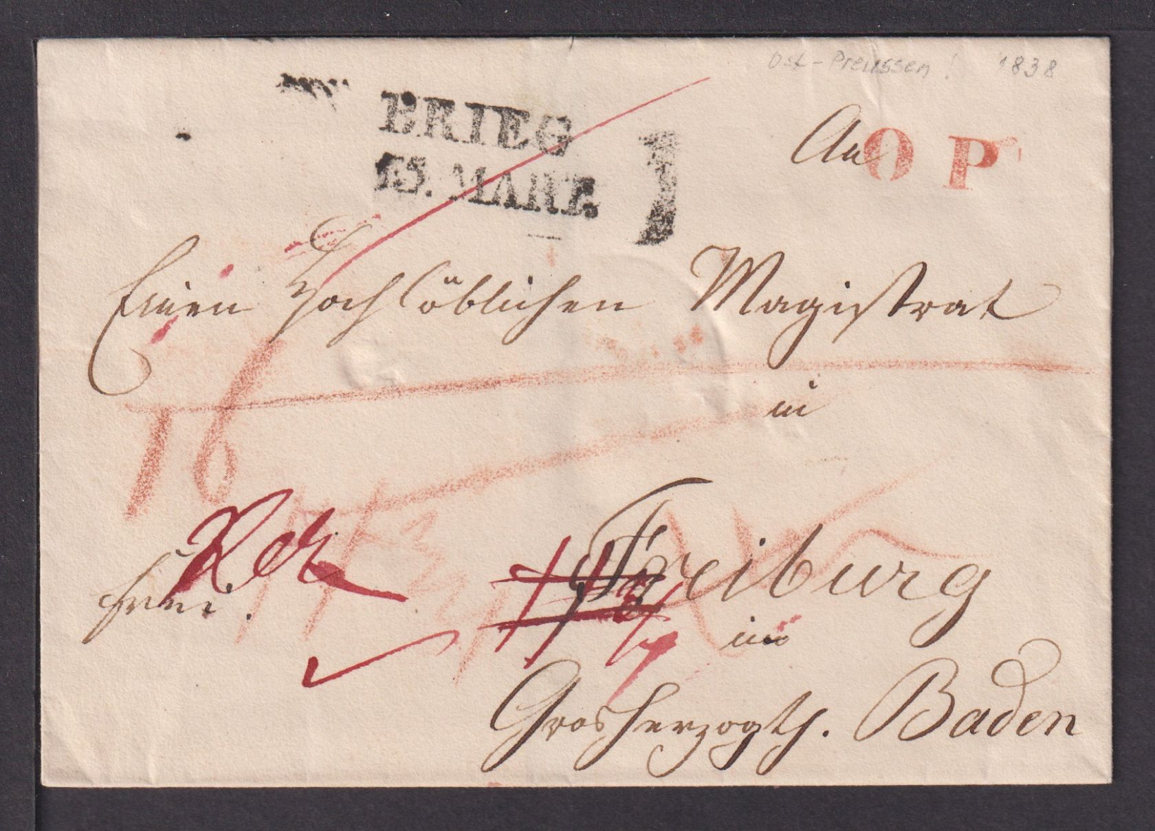 Preussen + rs. roter R2 Freiburg Großherzogtum Baden 1838.