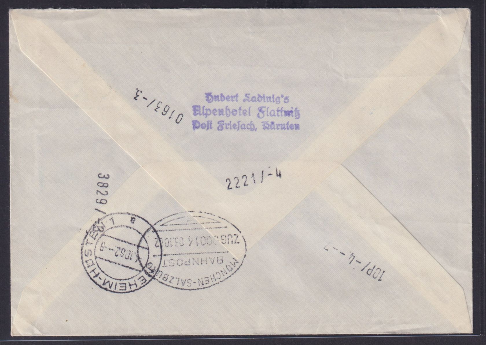 Bahnpoststempel Münchensalzburg Zug 00014 nach Neheim Hüsten 2.10.1962