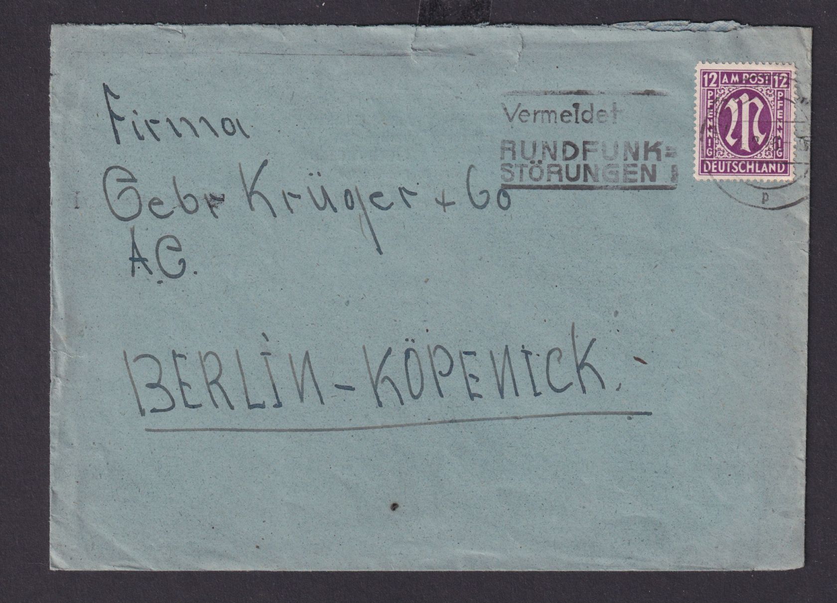 Bizone AM-Post Brief EF 12 Pfg. Post Reklame Wuppertal Elberfeld Berlin Köpenick