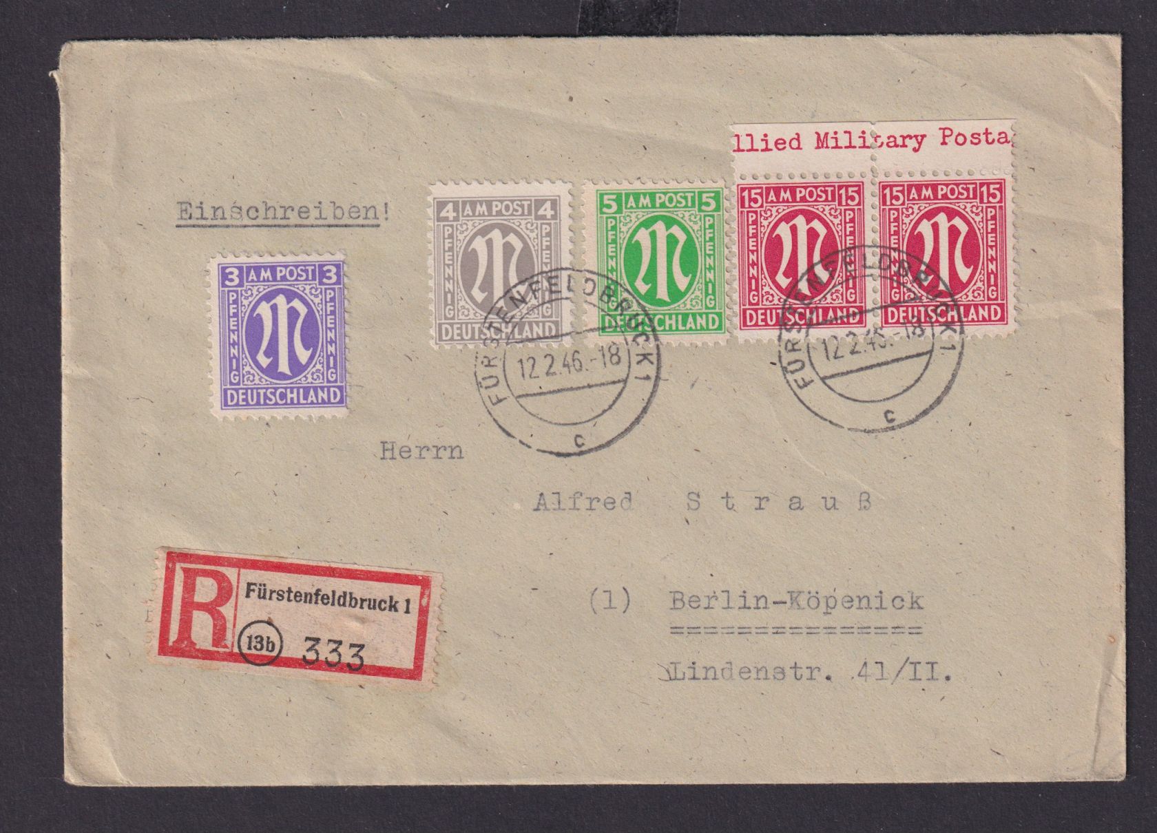 Bizone AM-Post R Brief MIF Oberrand Paar Fürstenfeldbruck Berlin Köpenick
