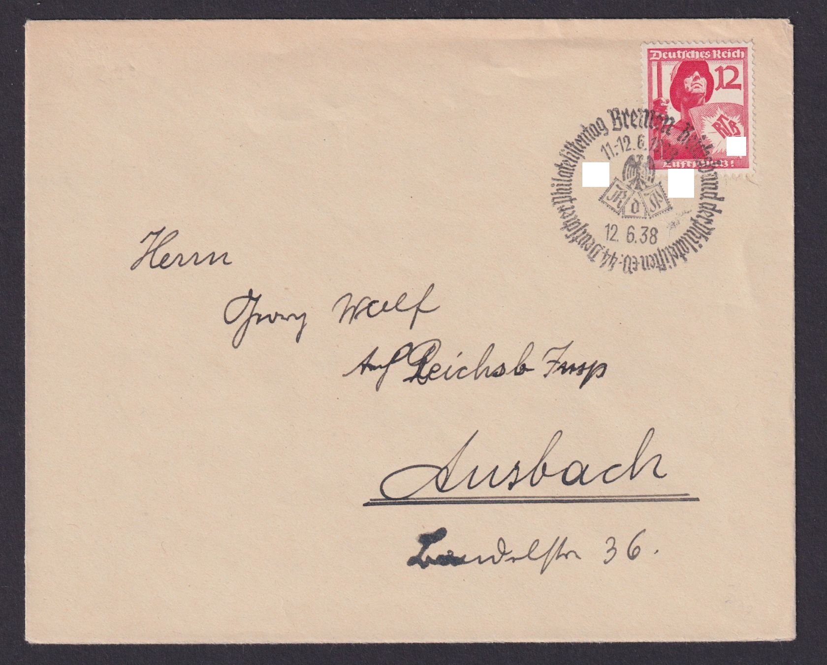 44. Deutscher Philatelistentag n. Ansbach Bayern 12.06.1938