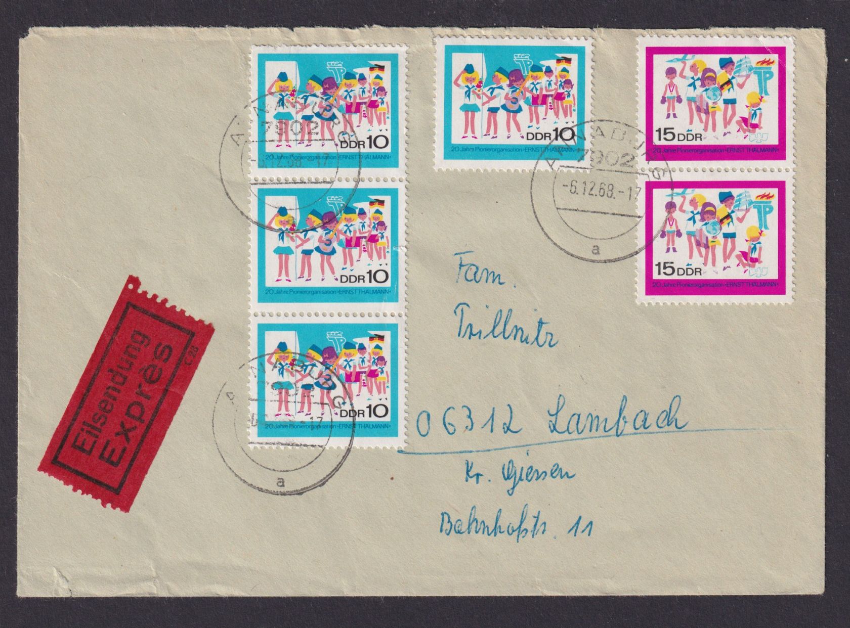 Briefmarken DDR Eilboten Brief MIF 1432-1433 Pioniere Thälmann Annaburg via